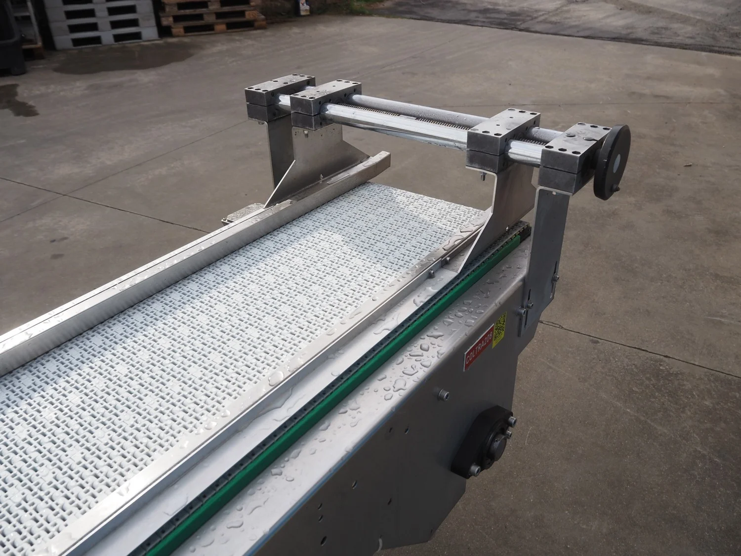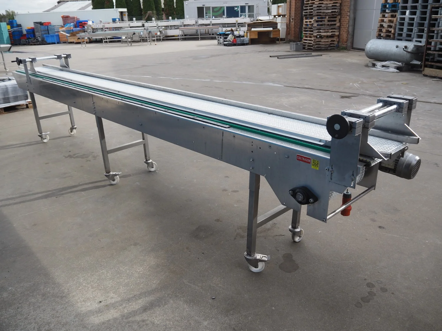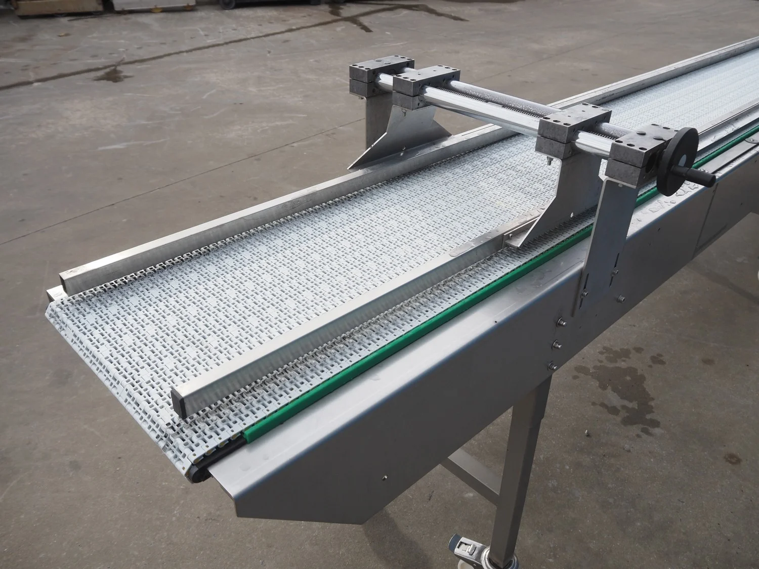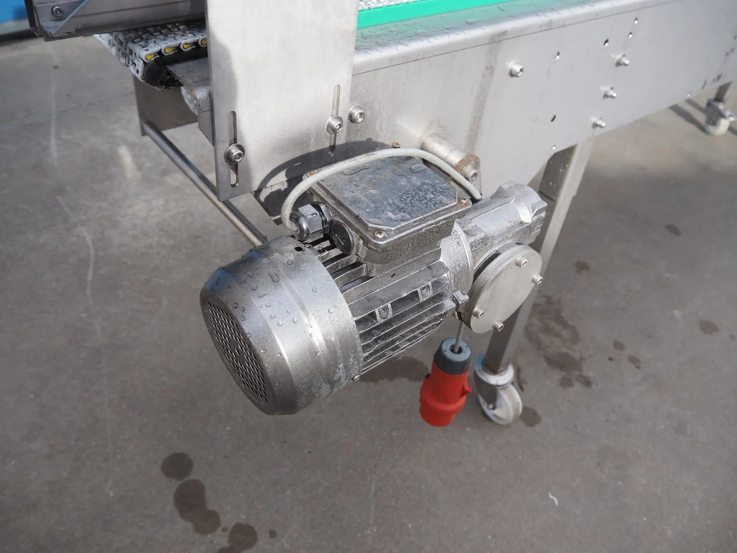 S/s mobile transport belt, plastic mesh belt, belt width: 380 mm, total dimensions: 5100 mm x 700 mm x 1120 mm.