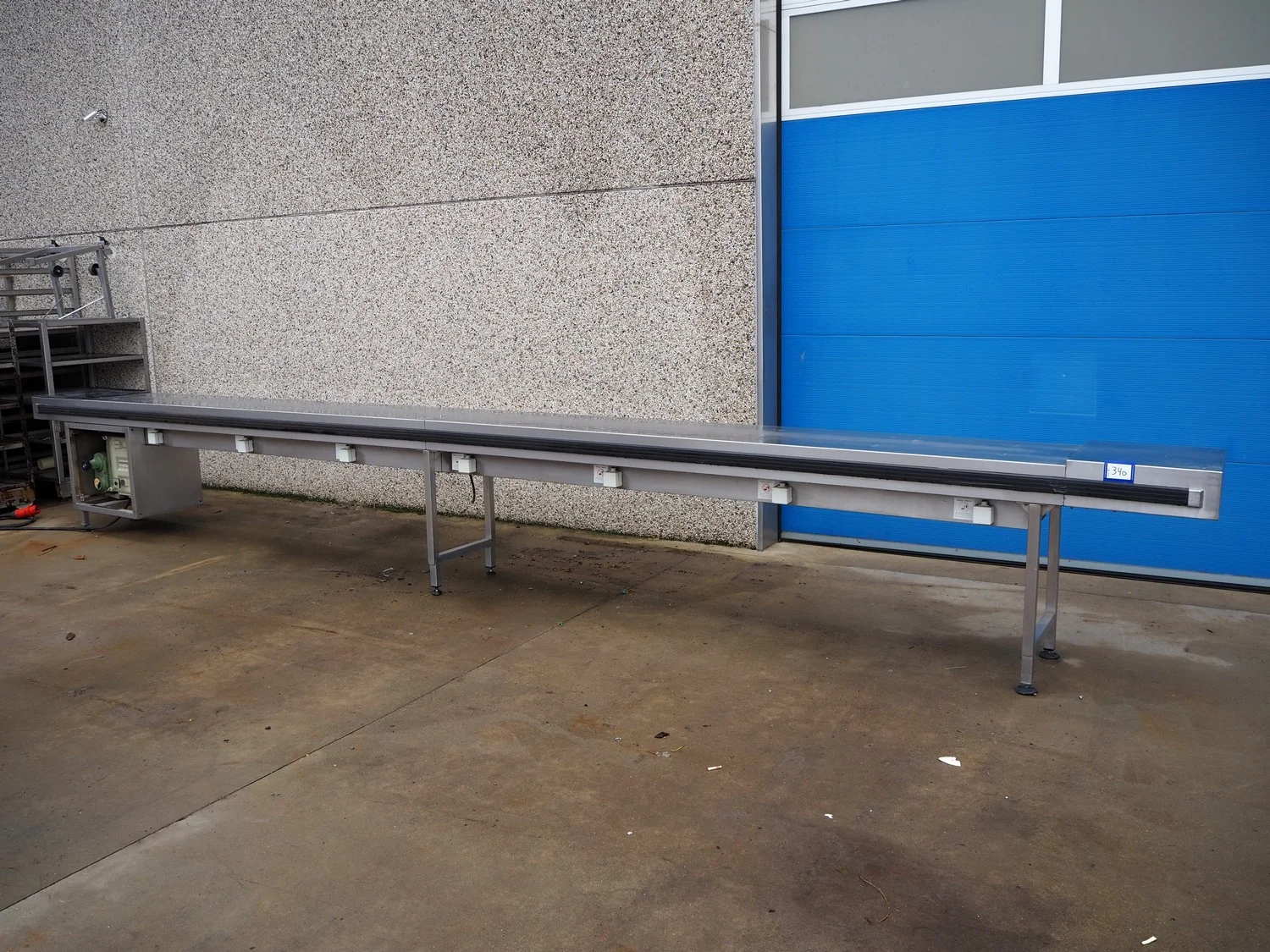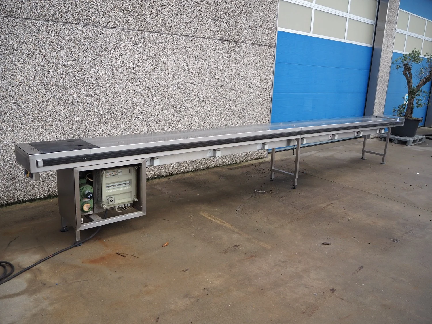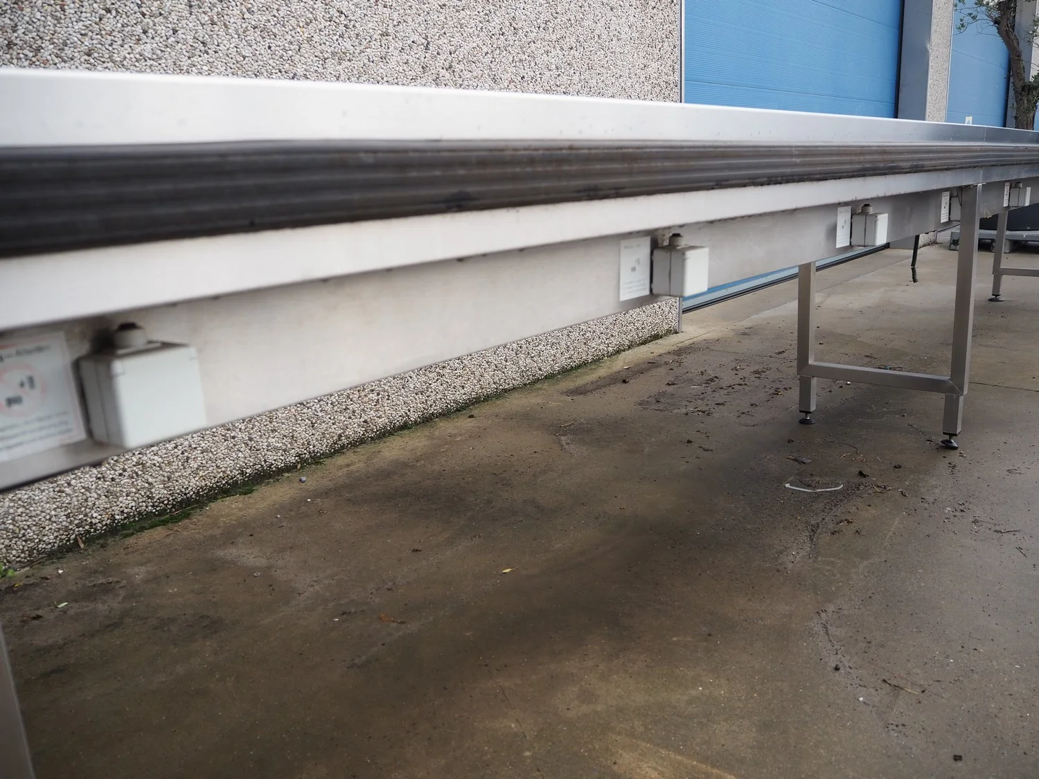 Temp-rite conveyor, 400 V, dimensions: 7100 mm x 630 mm x 920 mm. Missing string belt.