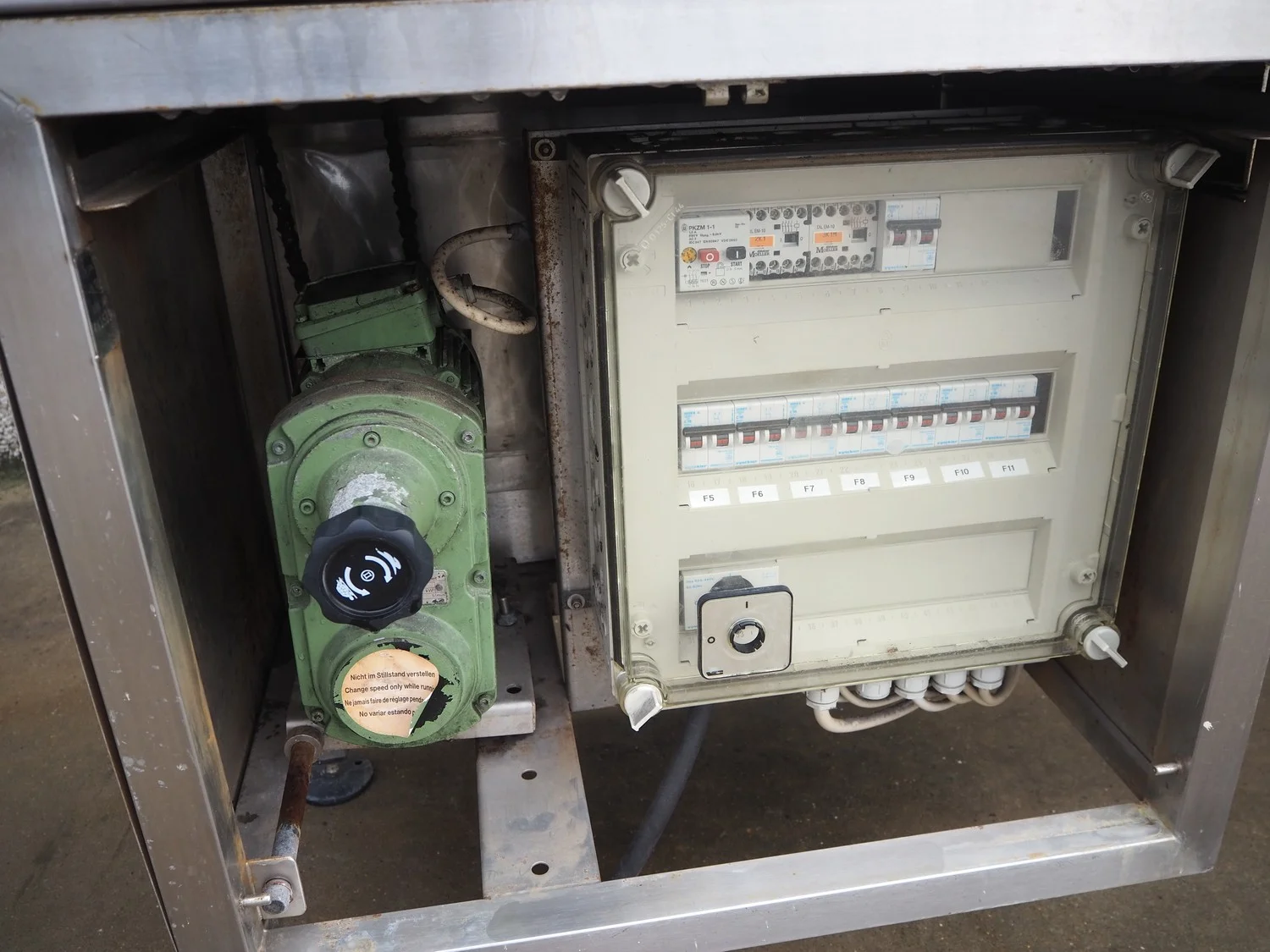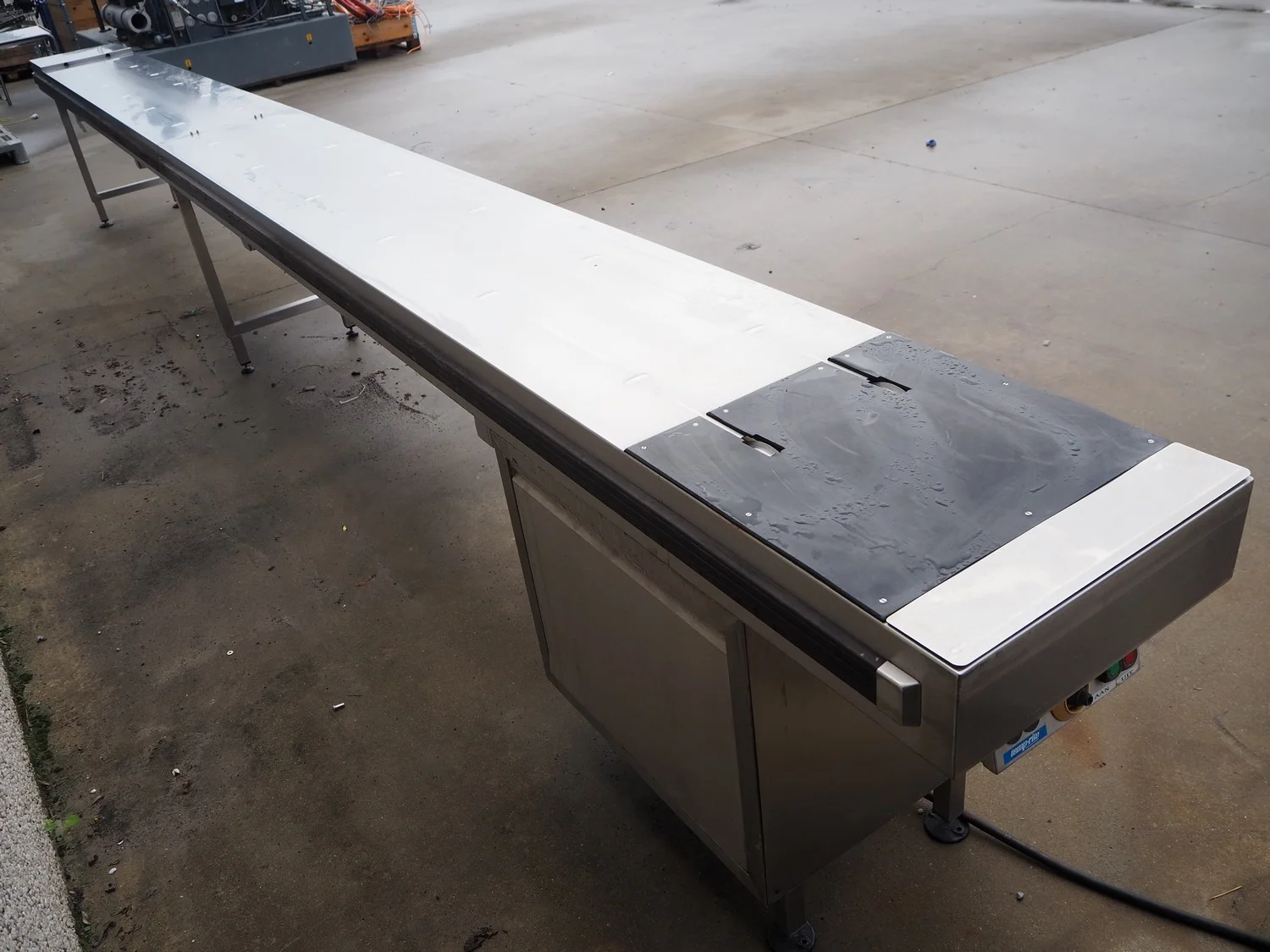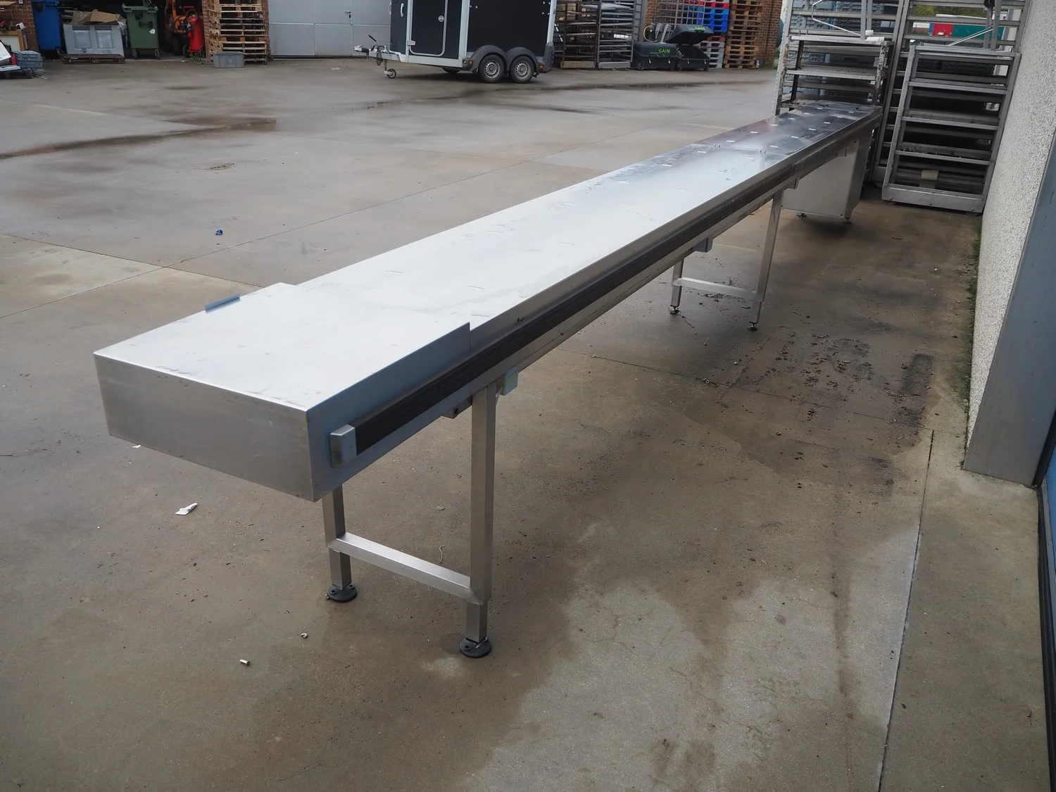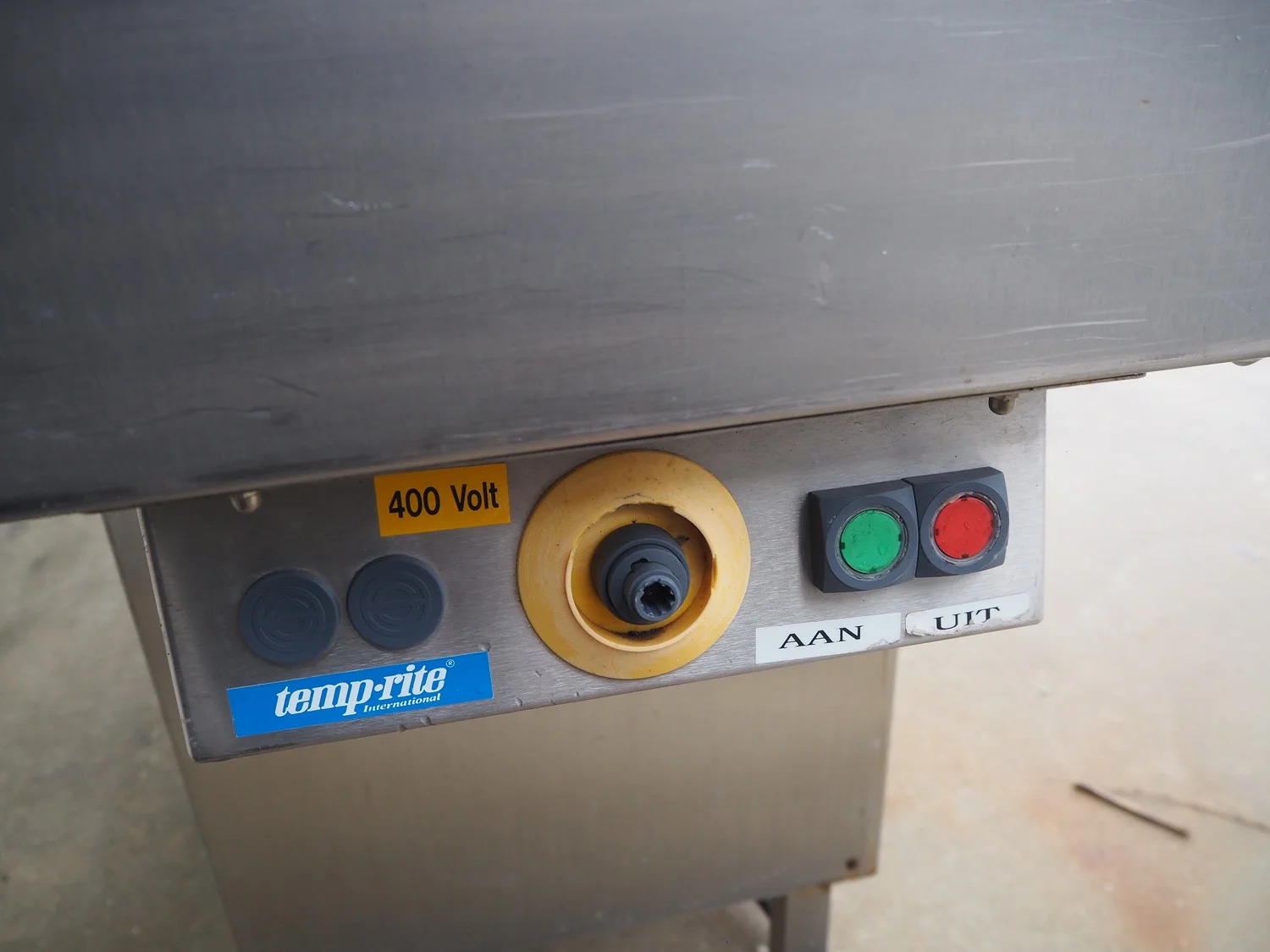 Temp-rite conveyor, 400 V, dimensions: 7100 mm x 630 mm x 920 mm. Missing string belt.