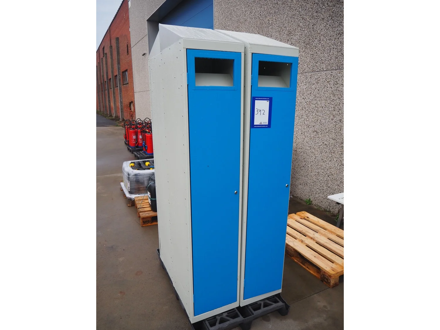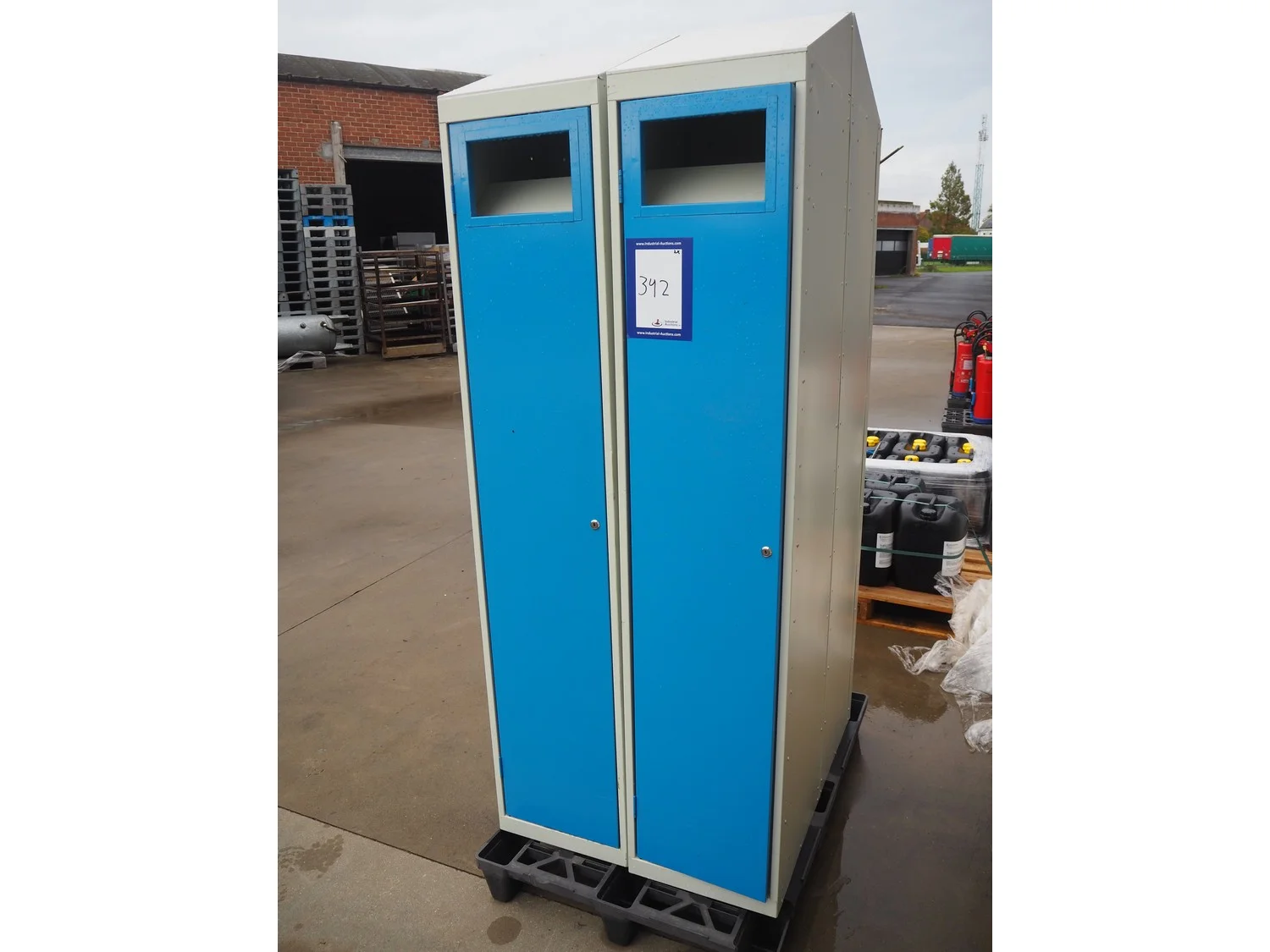 2 steel lockers, inside dimensions (2x): 430 mm x 330 mm x 1450 mm, total dimensions (2x): 455 mm x 380 mm x 2000 mm. Missing keys.