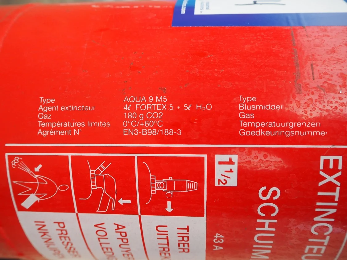 10 Sicli fire extinguishers, foam extinguishers, type: AQUA 9 M5, volume 9 liter, total dimensions (10x): 230 mm x 200 mm x 750 mm.