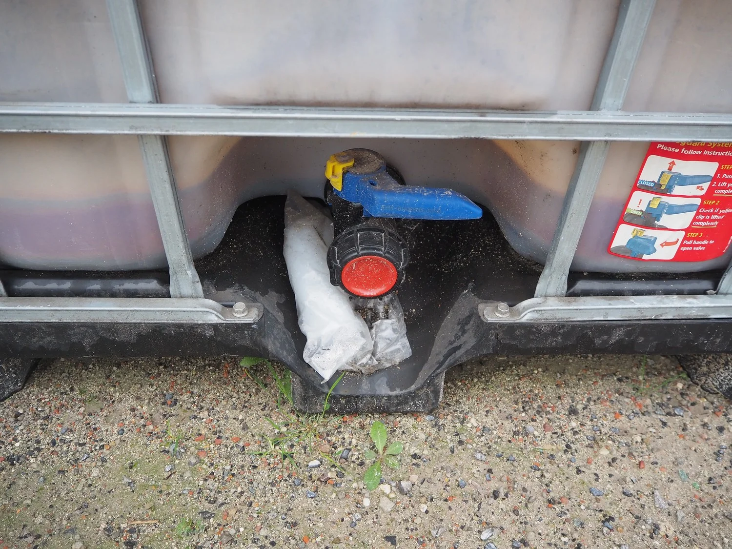 2 Schütz Intermediate Bulk Containers / IBC tanks, dimensions (2x): 1200 mm x 1000 mm x 1150 mm.