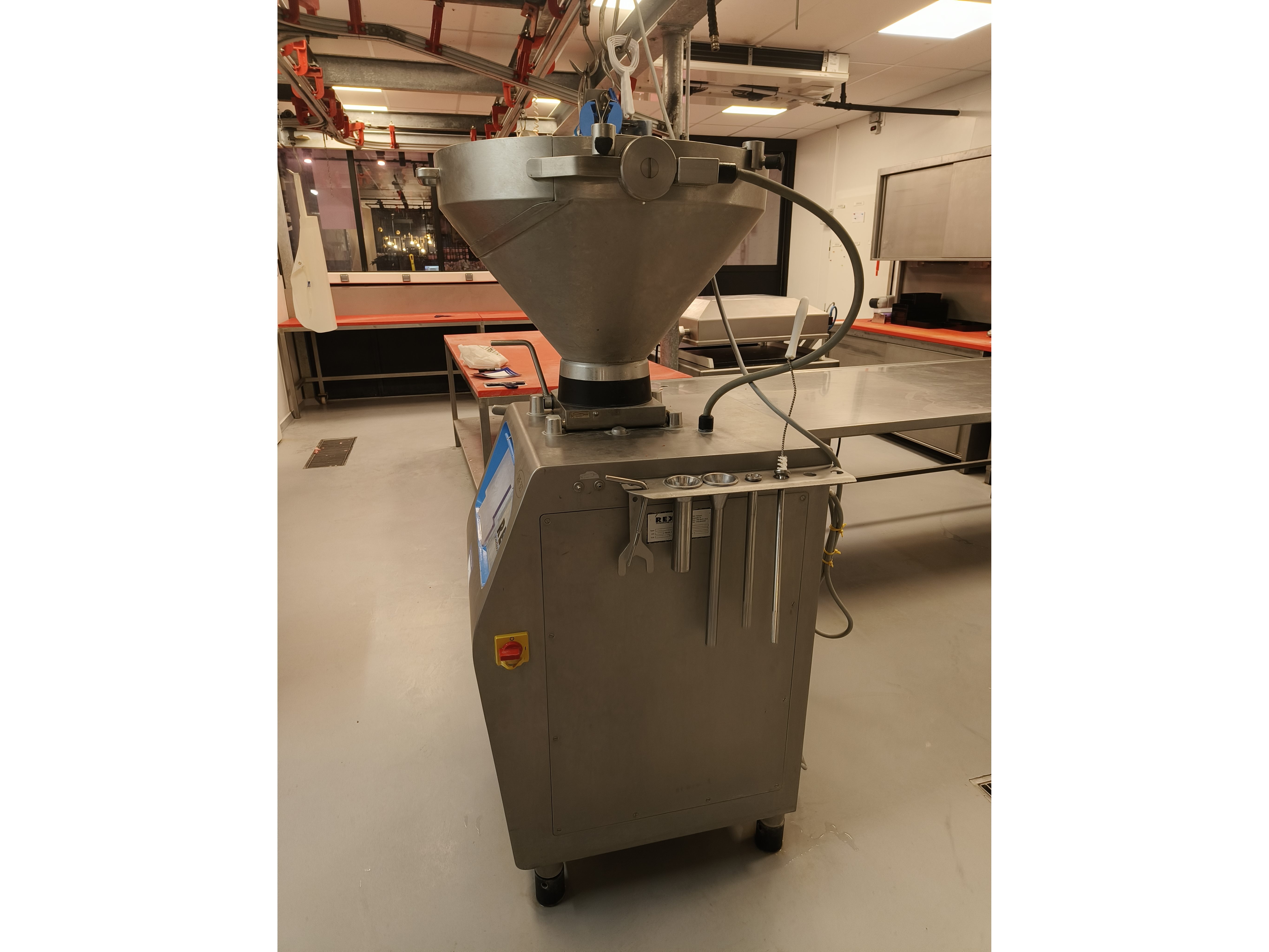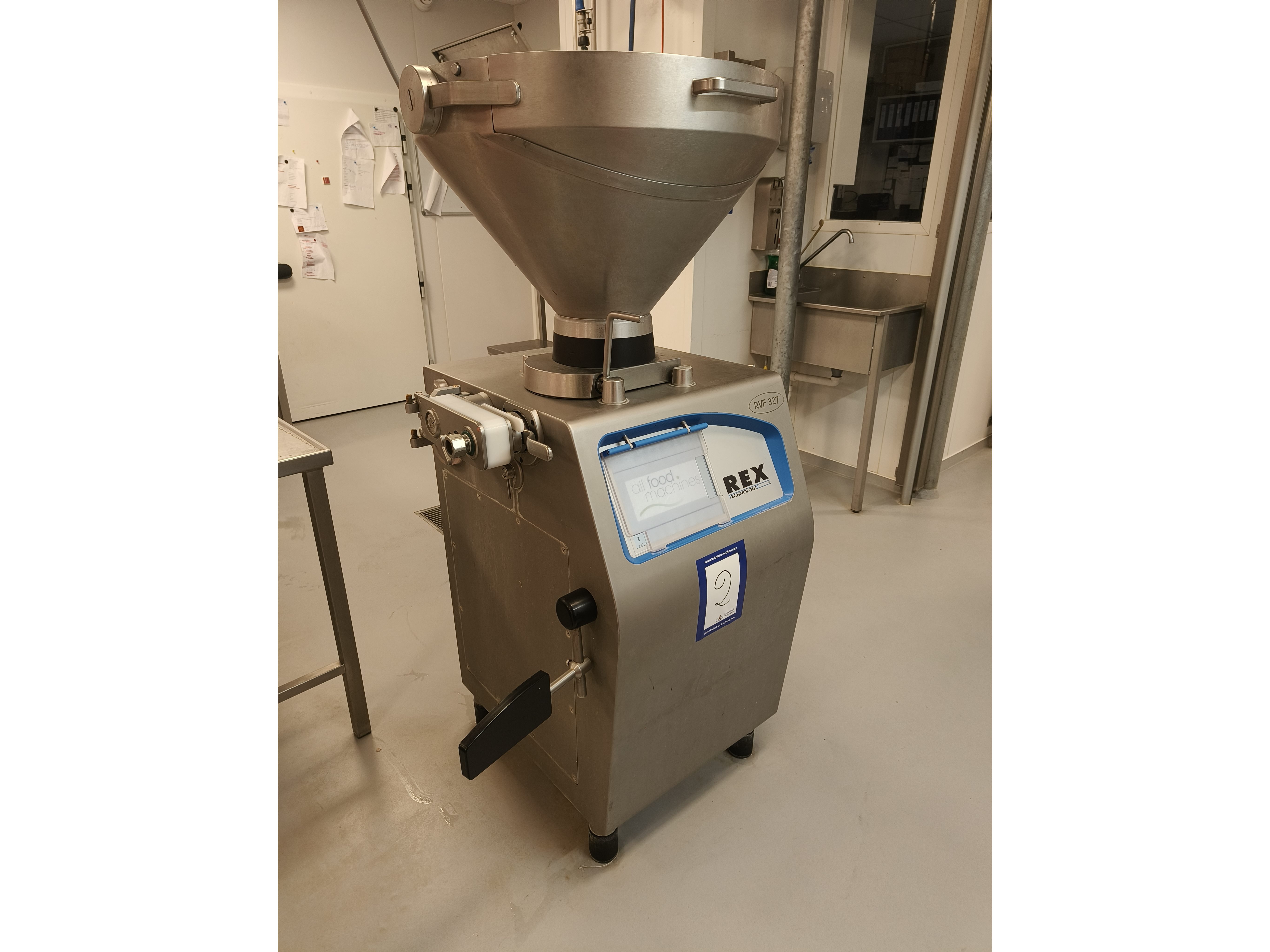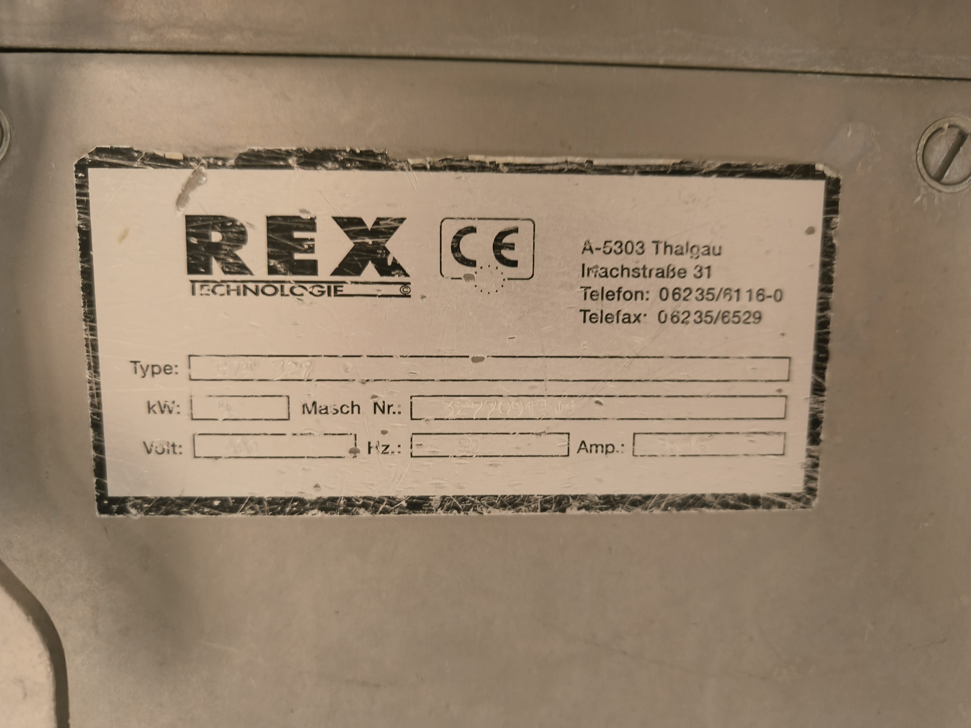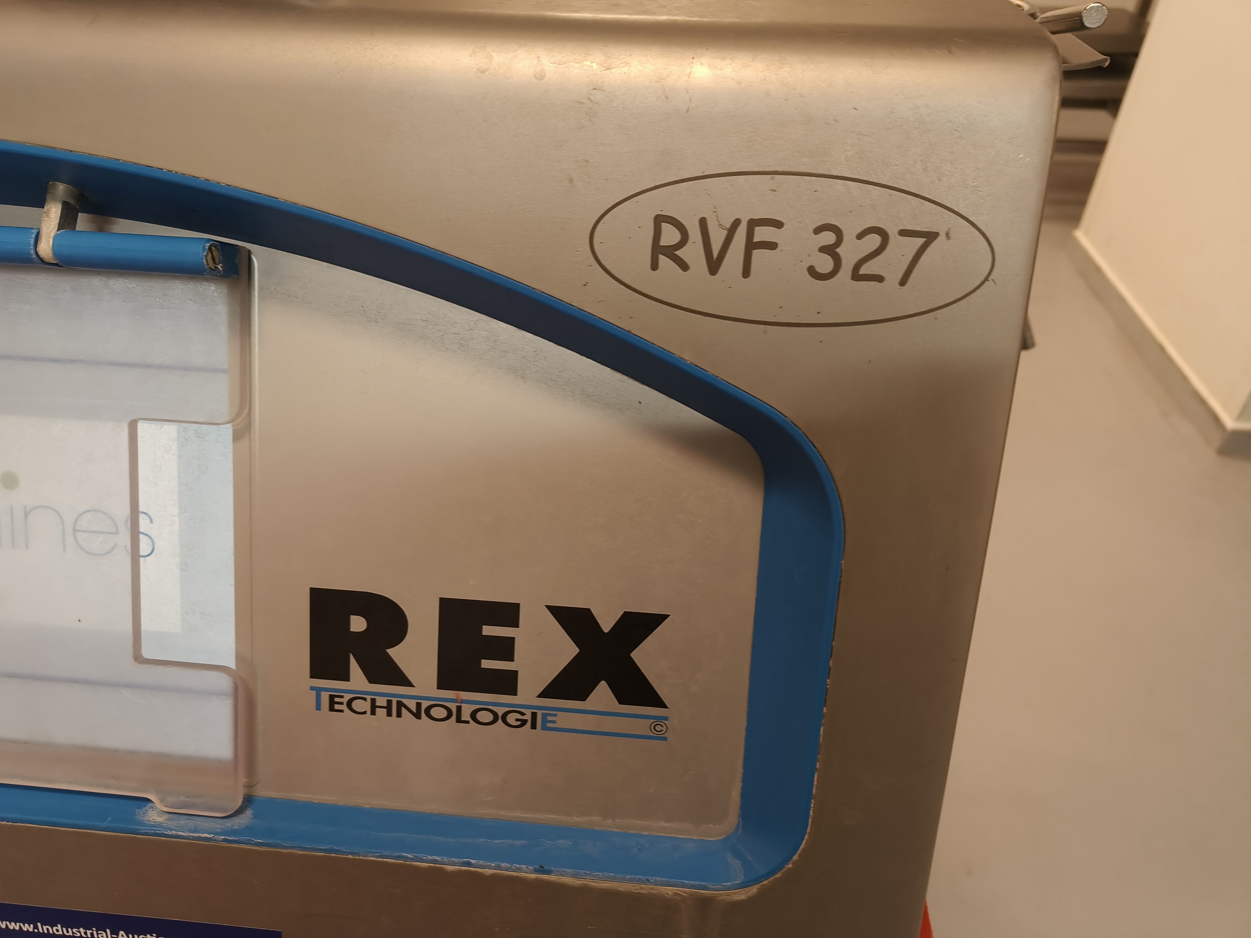 Rex vacuum filling machine, type: RVF 327, machine number: 3277091311, 400 V, 3 Ph, 50 Hz, 16 A, 3 kW, dimenions: 1000 mm x 800 mm x 1680 mm.