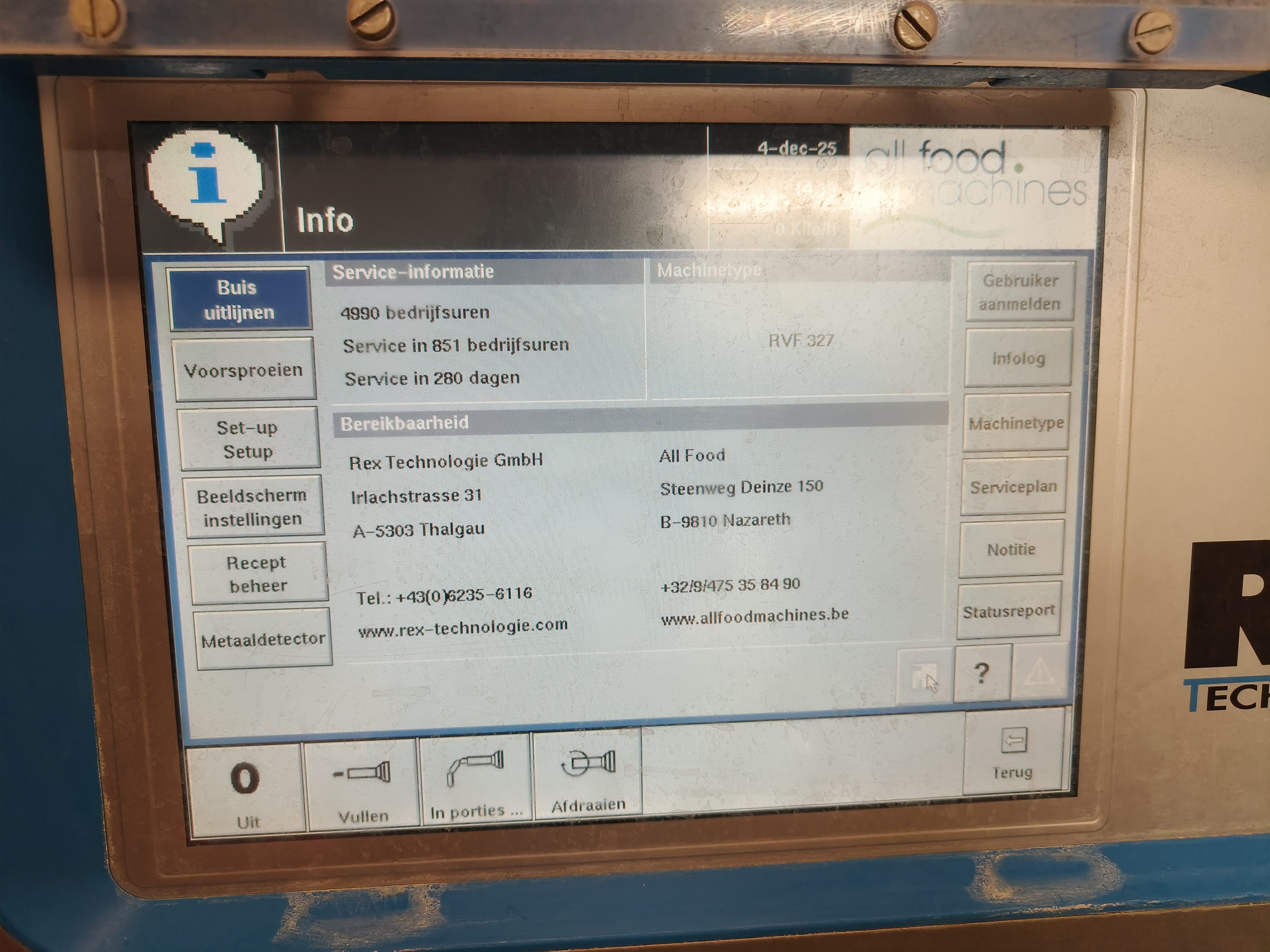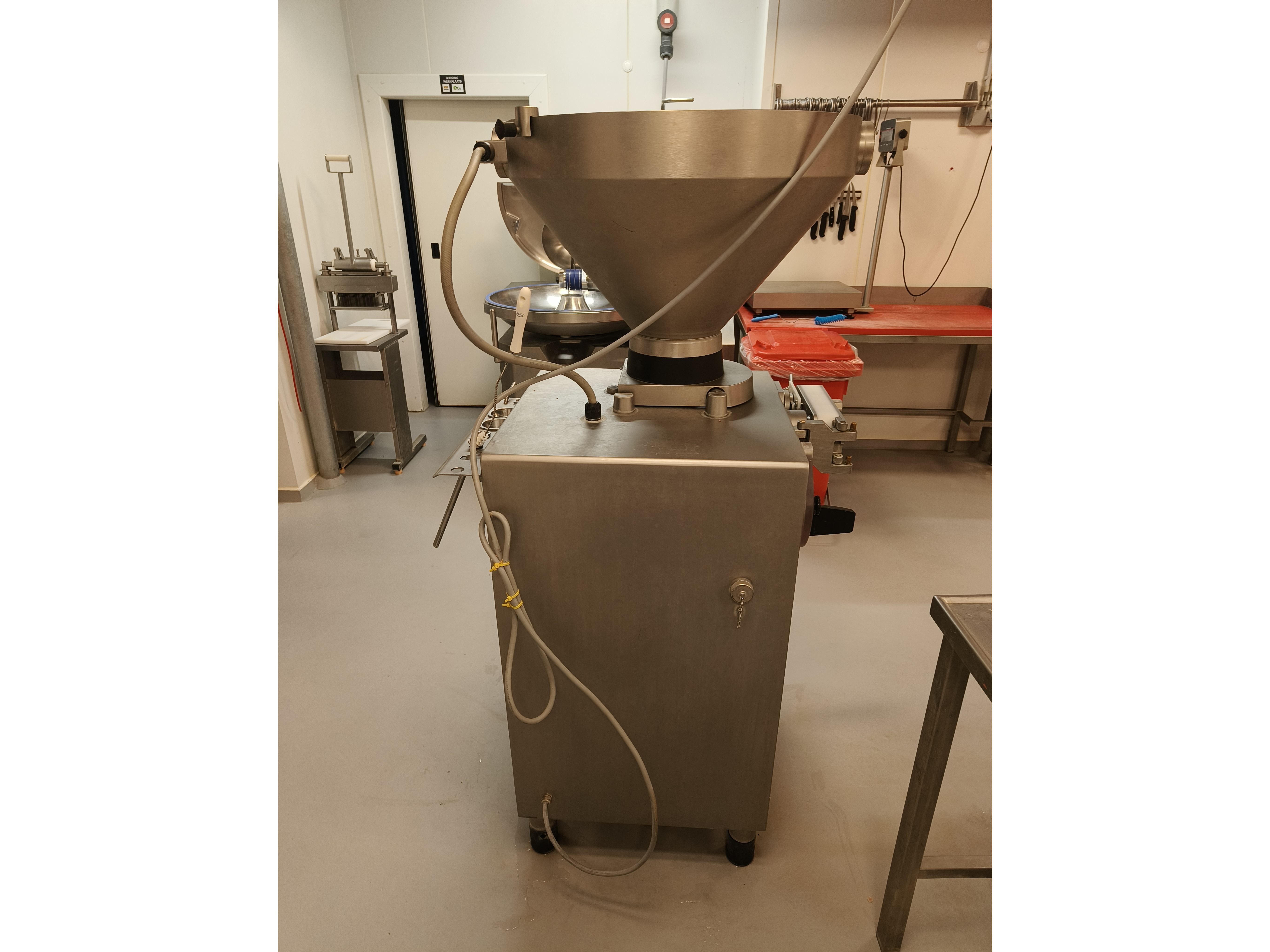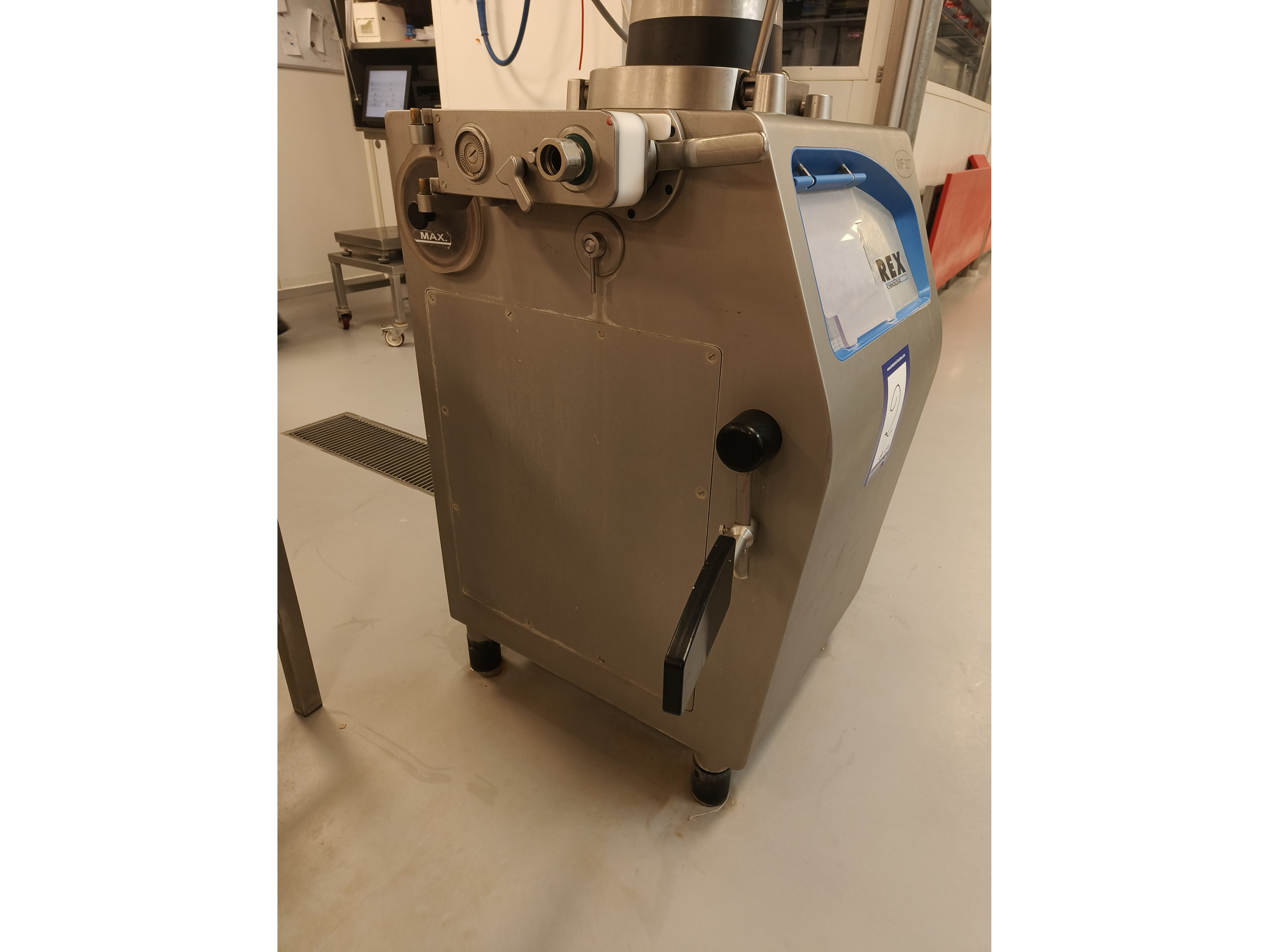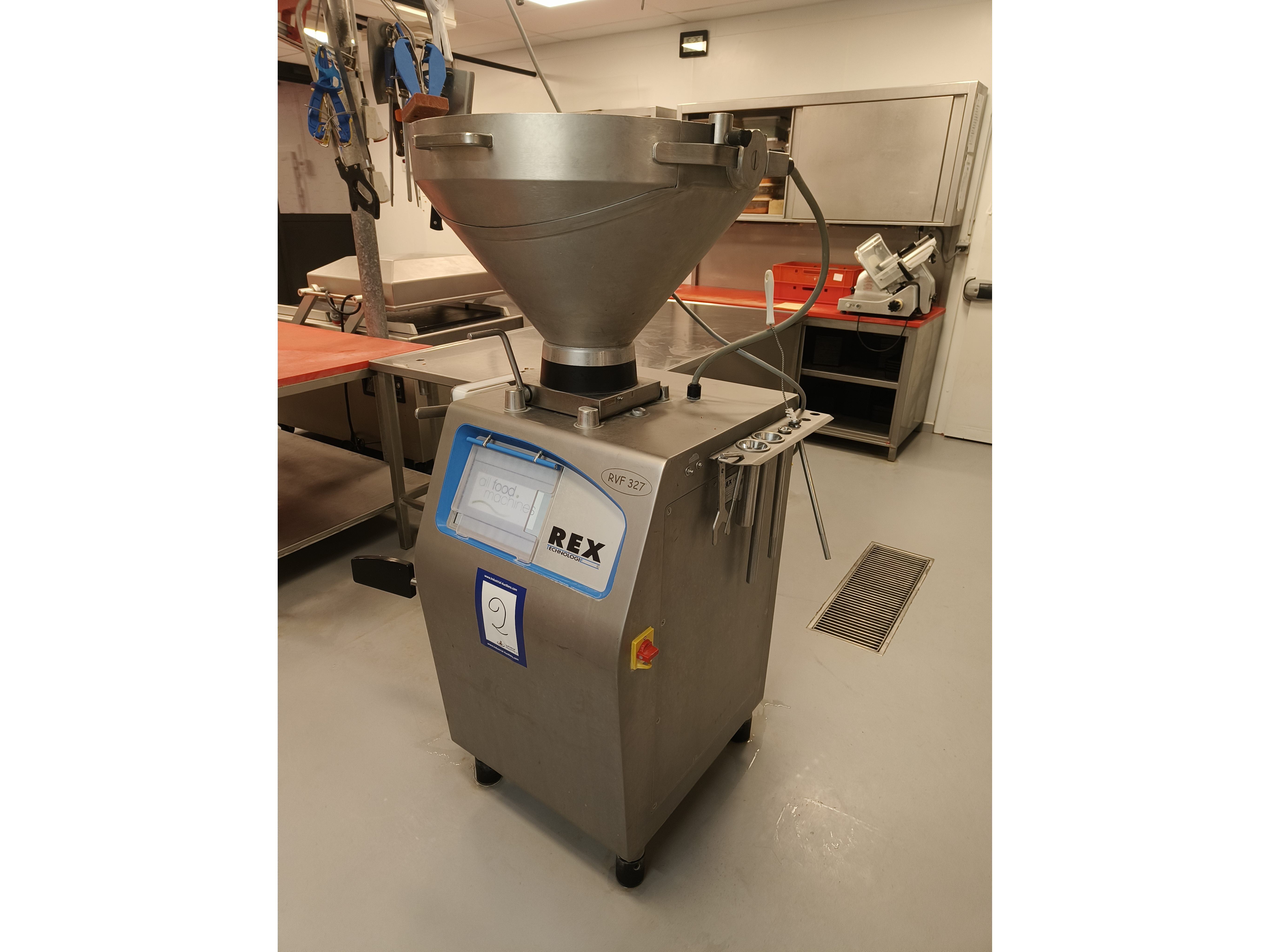 Rex vacuum filling machine, type: RVF 327, machine number: 3277091311, 400 V, 3 Ph, 50 Hz, 16 A, 3 kW, dimenions: 1000 mm x 800 mm x 1680 mm.