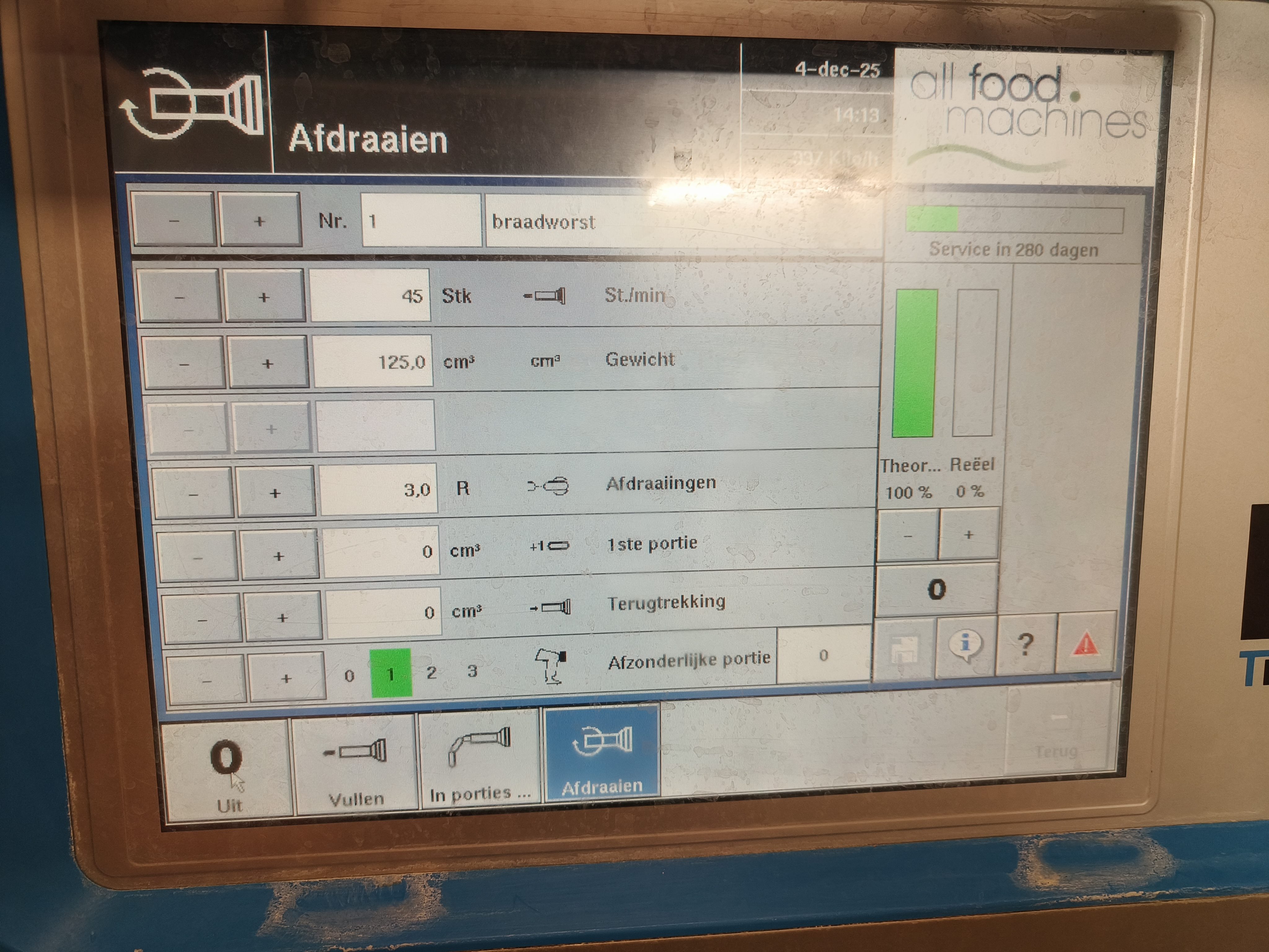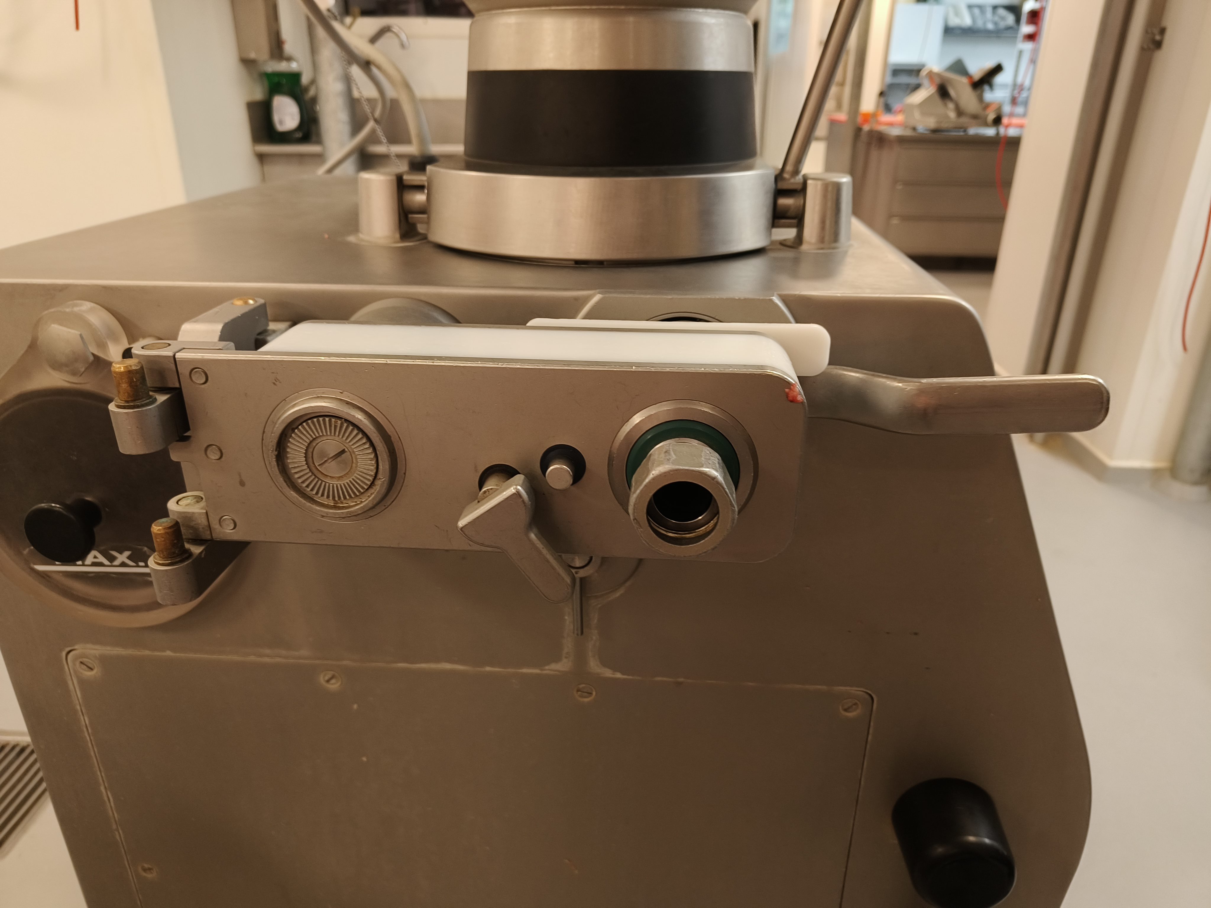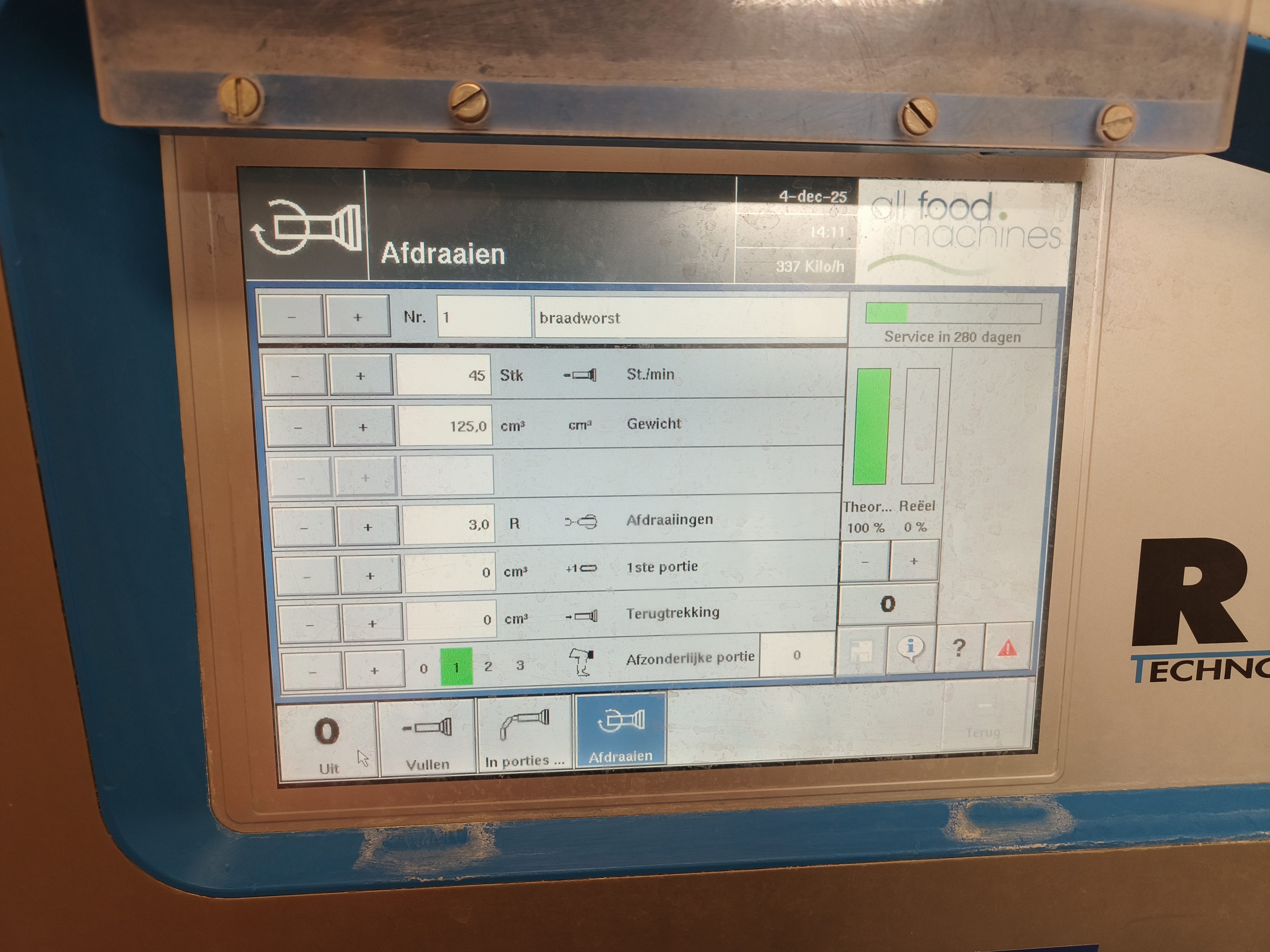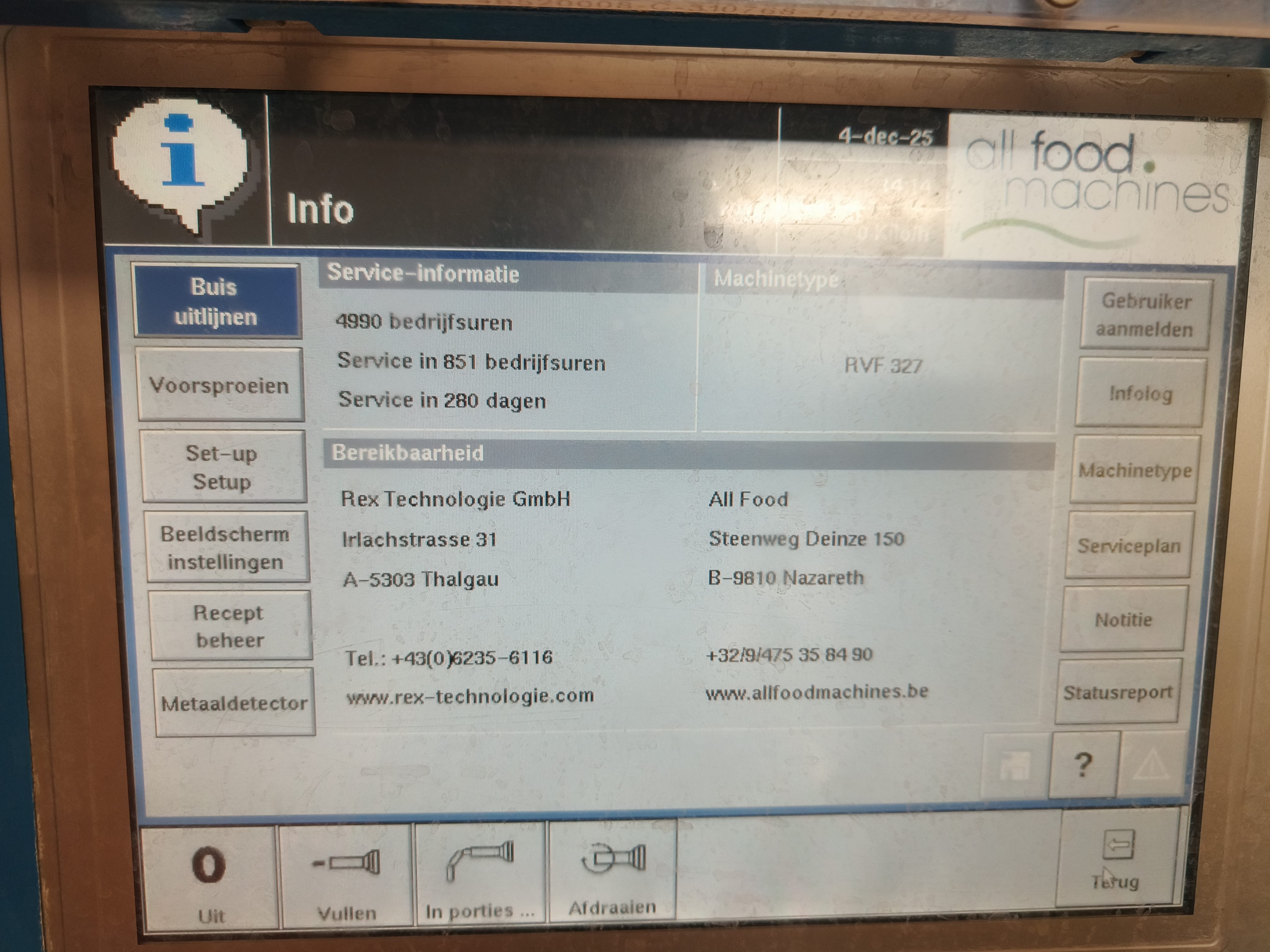 Rex vacuum filling machine, type: RVF 327, machine number: 3277091311, 400 V, 3 Ph, 50 Hz, 16 A, 3 kW, dimenions: 1000 mm x 800 mm x 1680 mm.