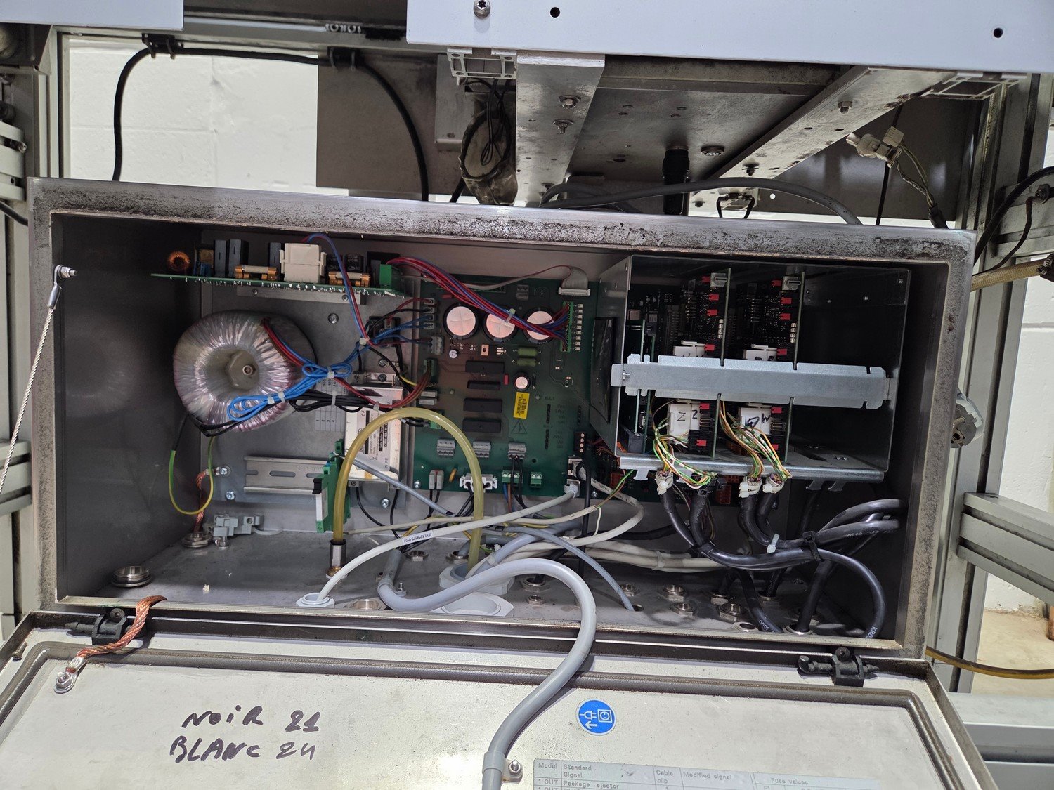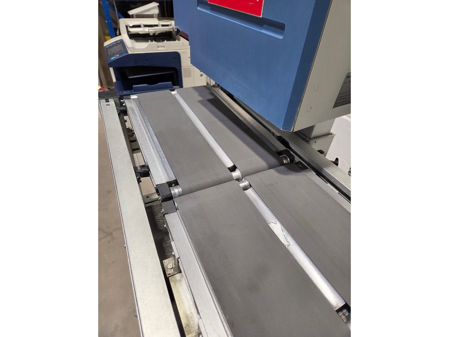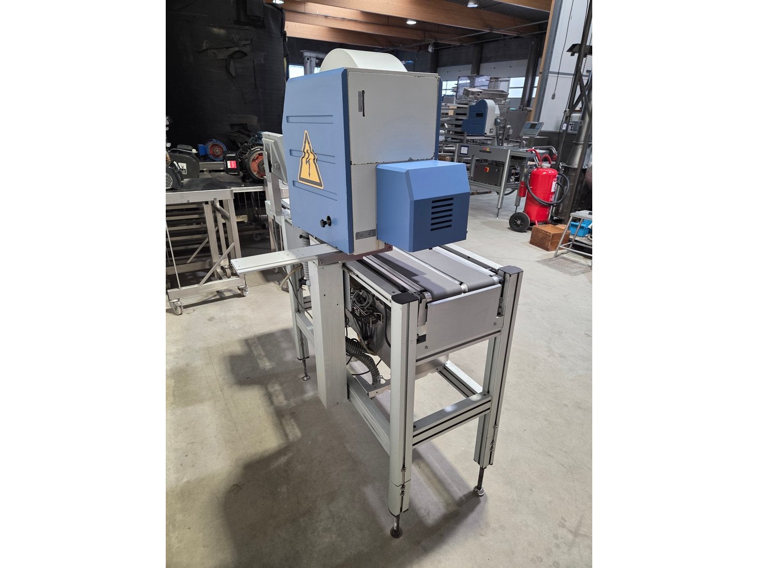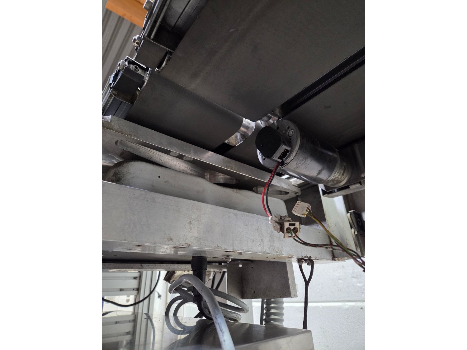 Bizerba checkweigher with labeller, model: GLM-E, number: 10636681, plastic belt, belt width: 296 mm and (2x) 135 mm, model labeller: GLE, number: 10636735, max: 6 kg, min: 20 gram, e=1 gram, total dimensions: 1630 mm x 650 mm x 1700 mm.