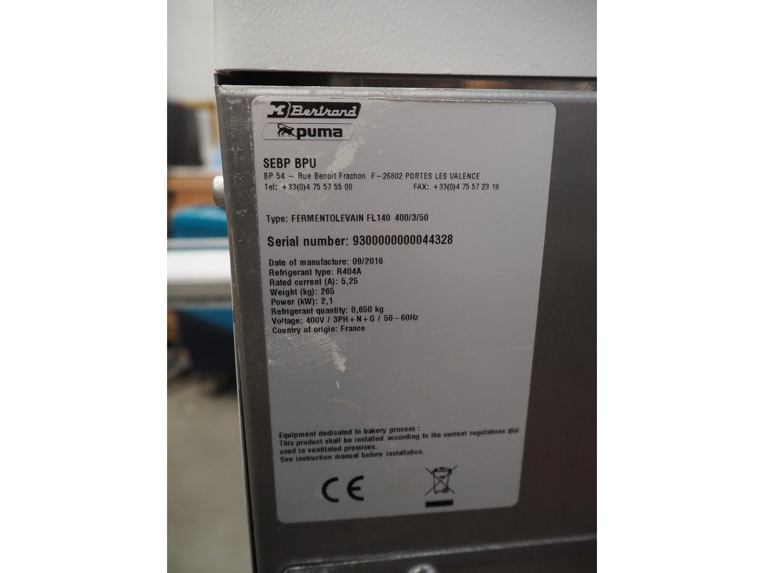 Bertrand mobile liquid sourdough fermentation tank, model: SEBP BPU, type: FERMENTOLEVAIN FL140, serial number: 9300000000044328, year of construction: 09/2016, 400 V, 3 Ph, 50 Hz, 5.25 A, 2.1 kW, fluid: R404A, machine weight: 265 kg, tank: Ø 600 mm x 750 mm, total dimensions: 1150 mm x 800 mm x 1500 mm. Fully functional, but the control panel is not working.