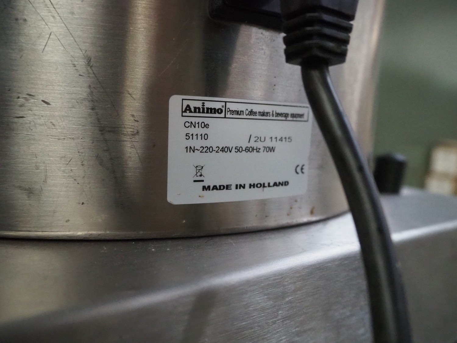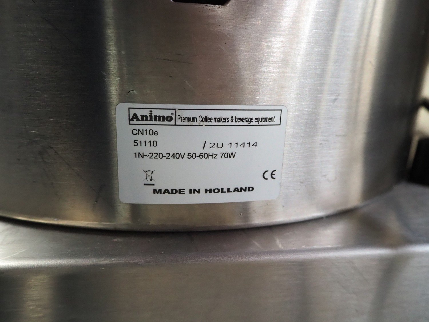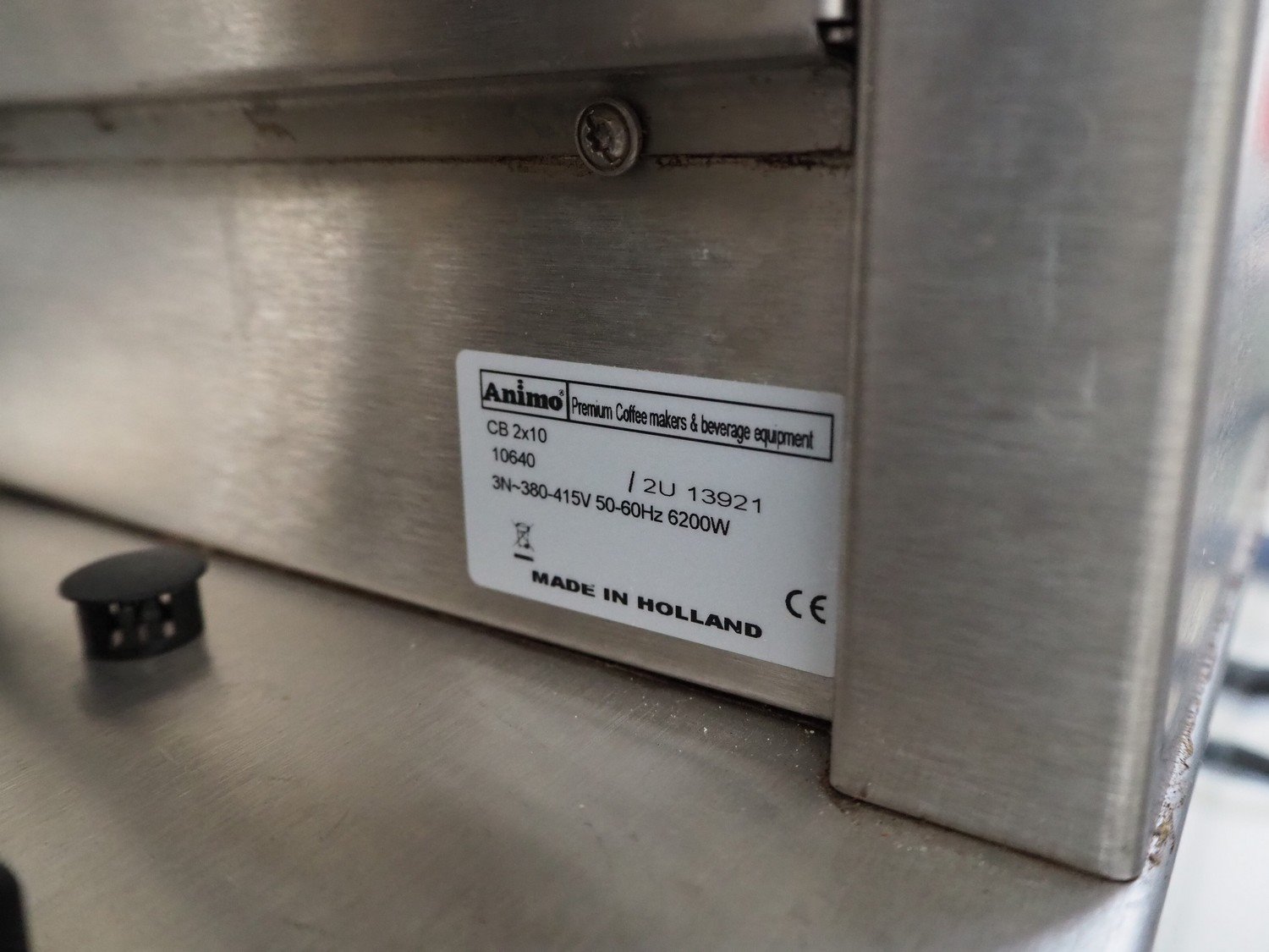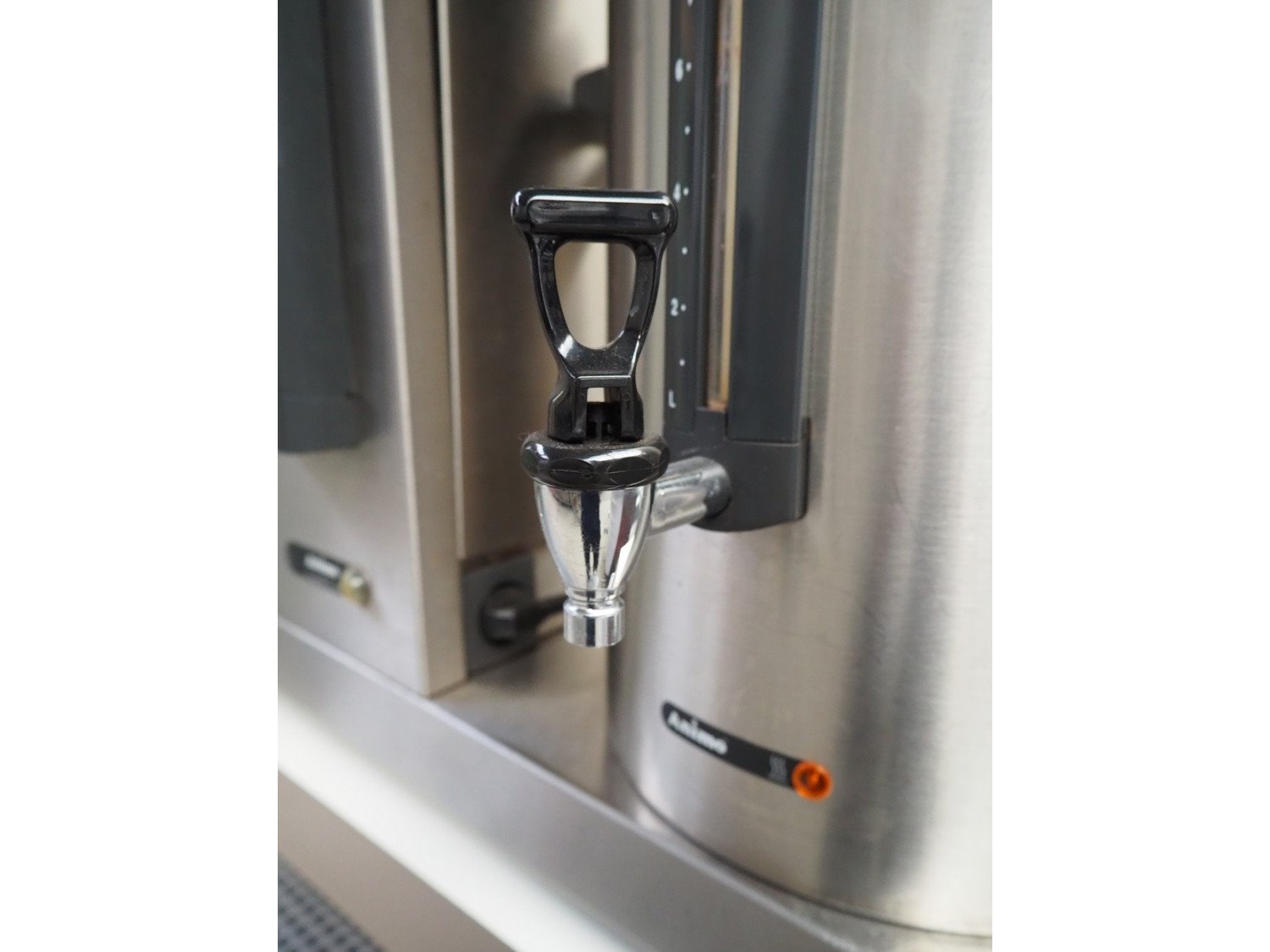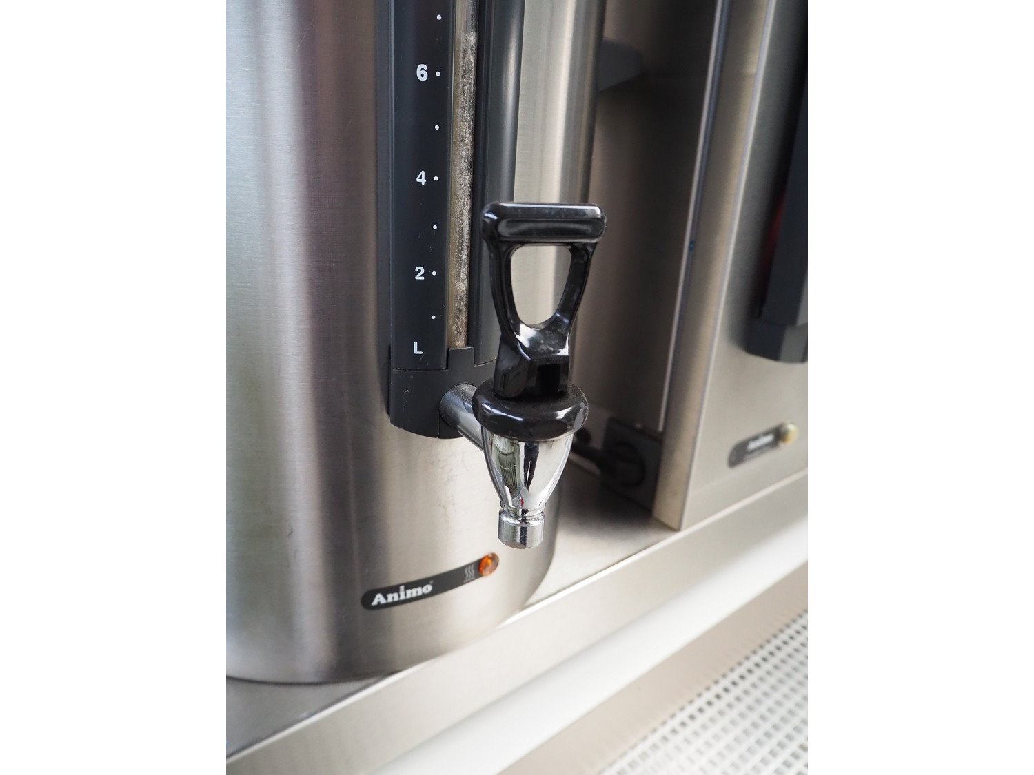 Animo double coffee machine, model: number: 10640/ 2U 13921, volume: (2x) 10 liter, total dimensions: 910 mm x 580 mm x 1700 mm.