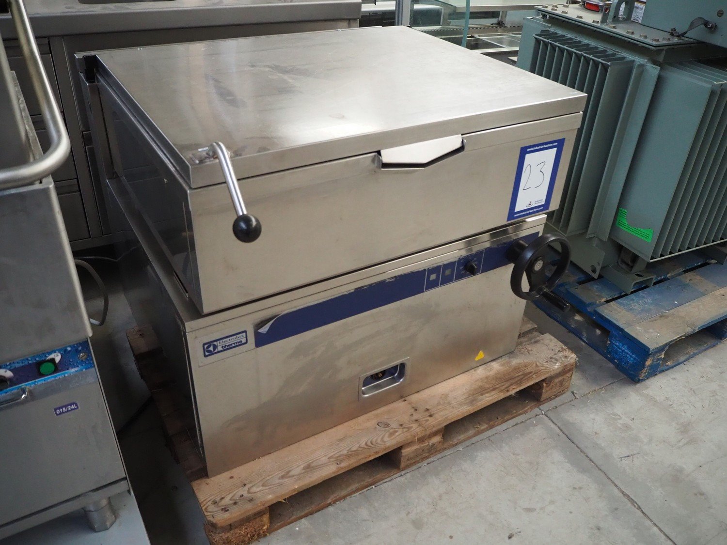Electrolux braising pan, inside dimensions: 860 mm x 650 mm x 200 mm, total dimensions: 1080 mm x 1000 mm x 900 mm.