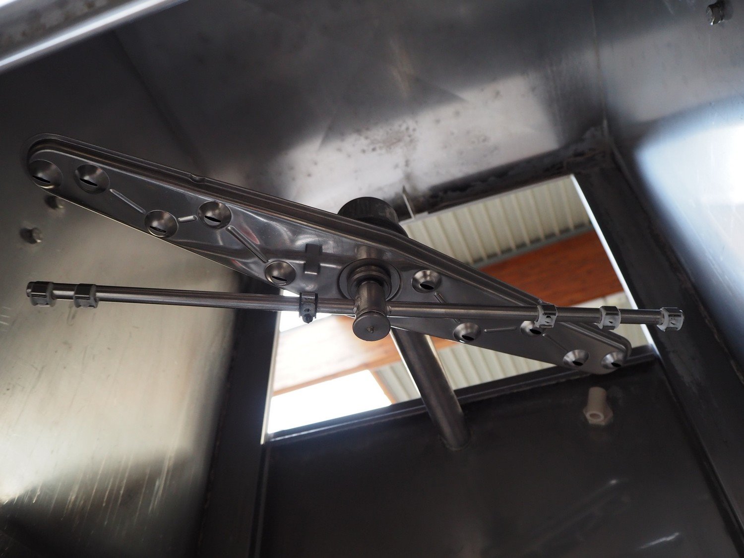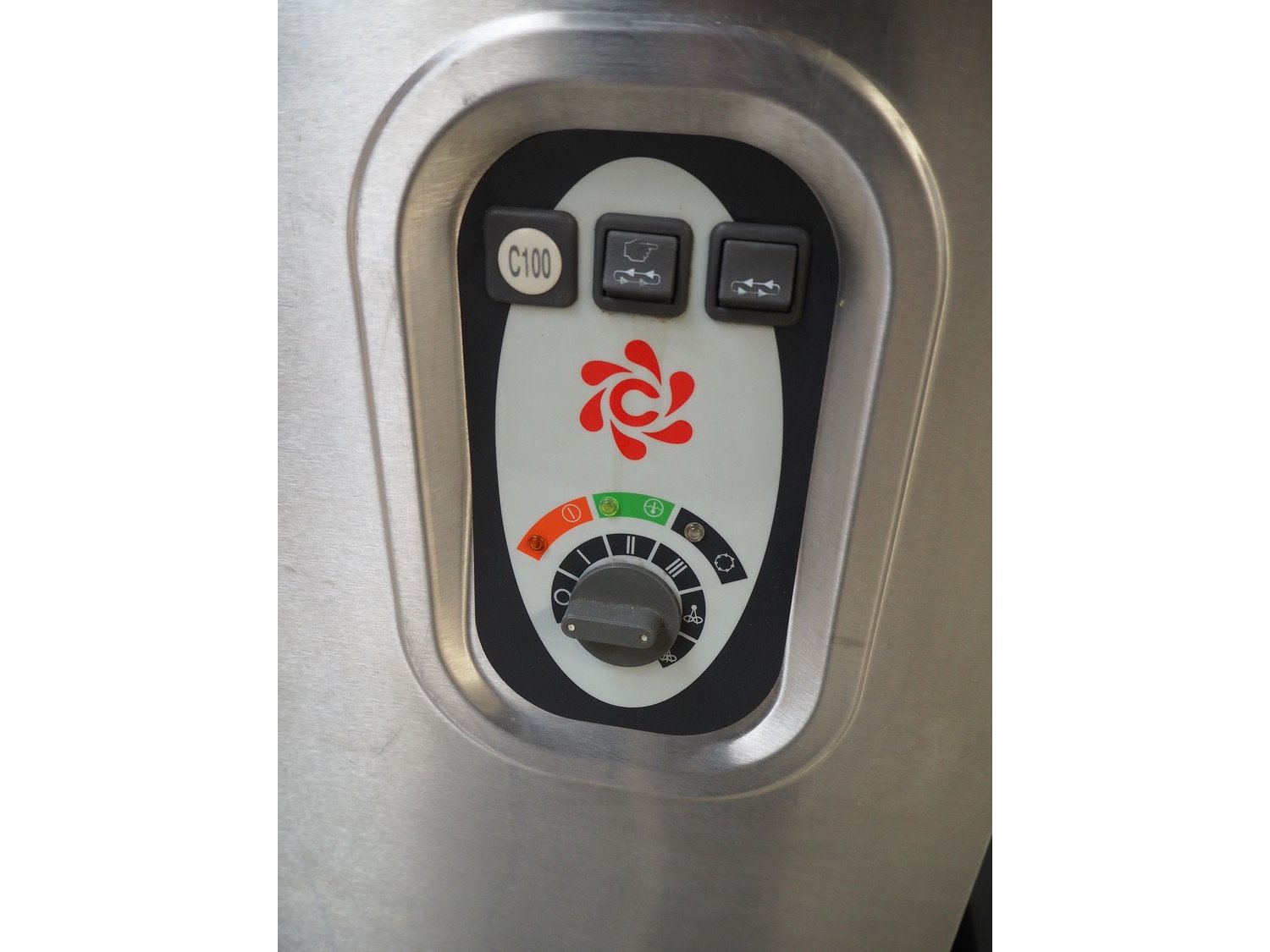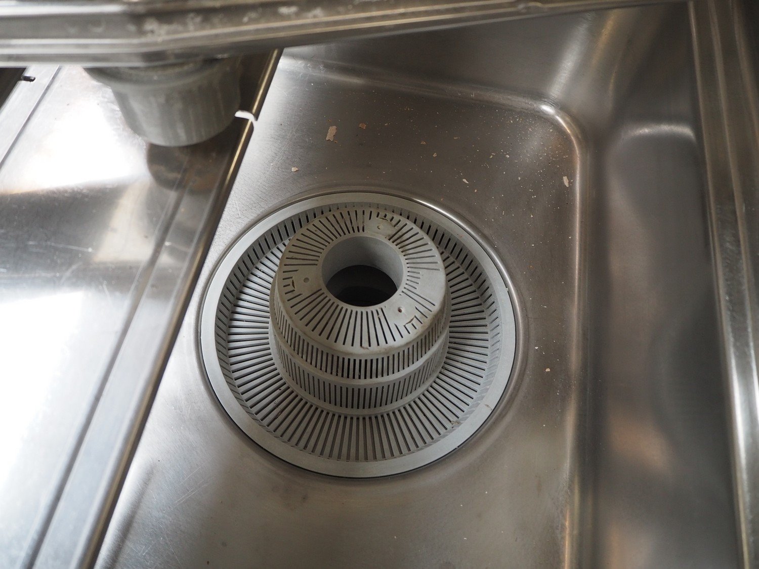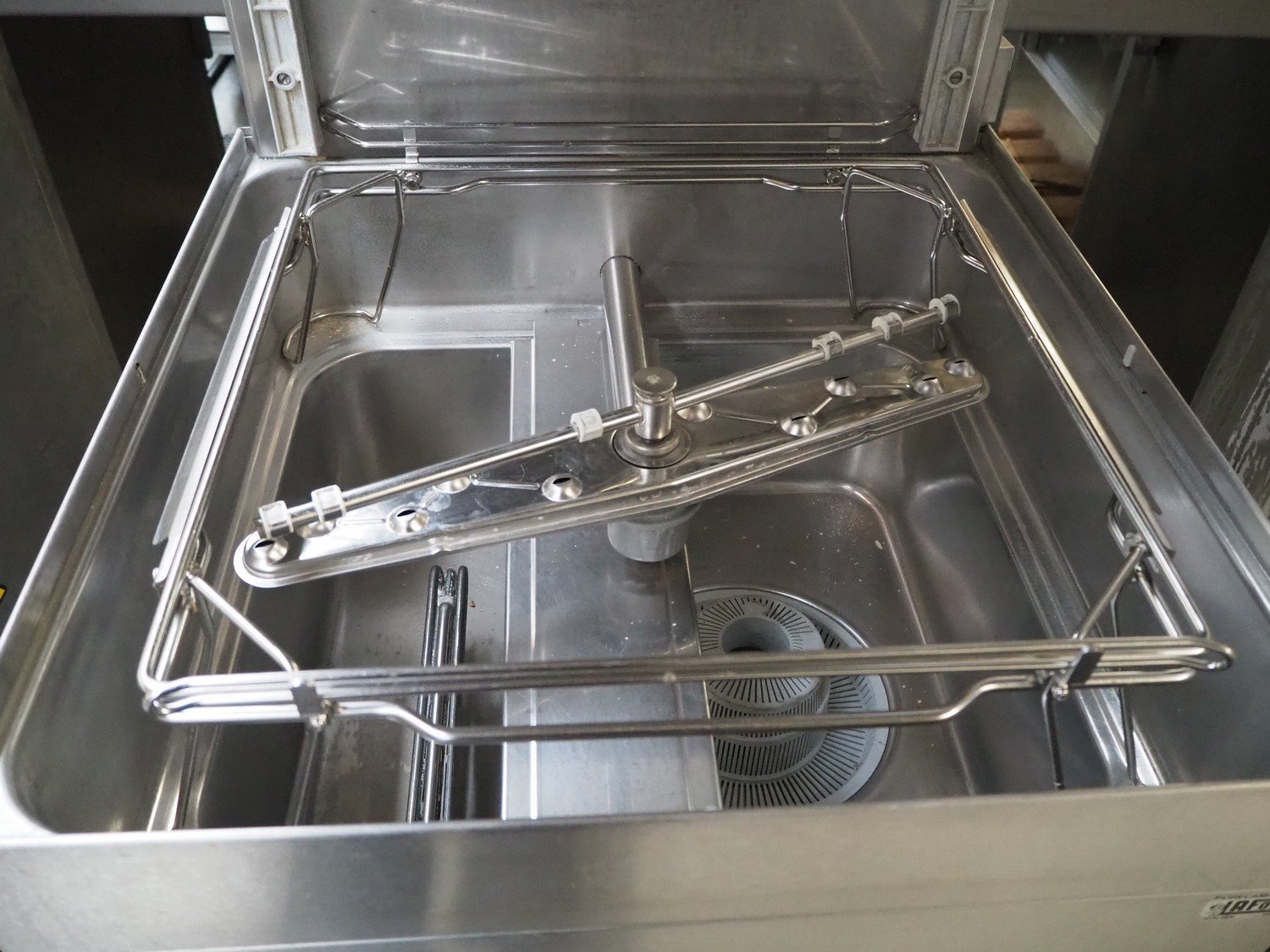 Comenda dishwasher, model: C100, number: DB013593/12/04, 380/400 V, 3 Ph, 50 Hz, 14 A, 8/9.1 kW, dimensions inside: 500 mm x 500 mm, total dimensions: 830 mm x 730 mm x 1530 mm.