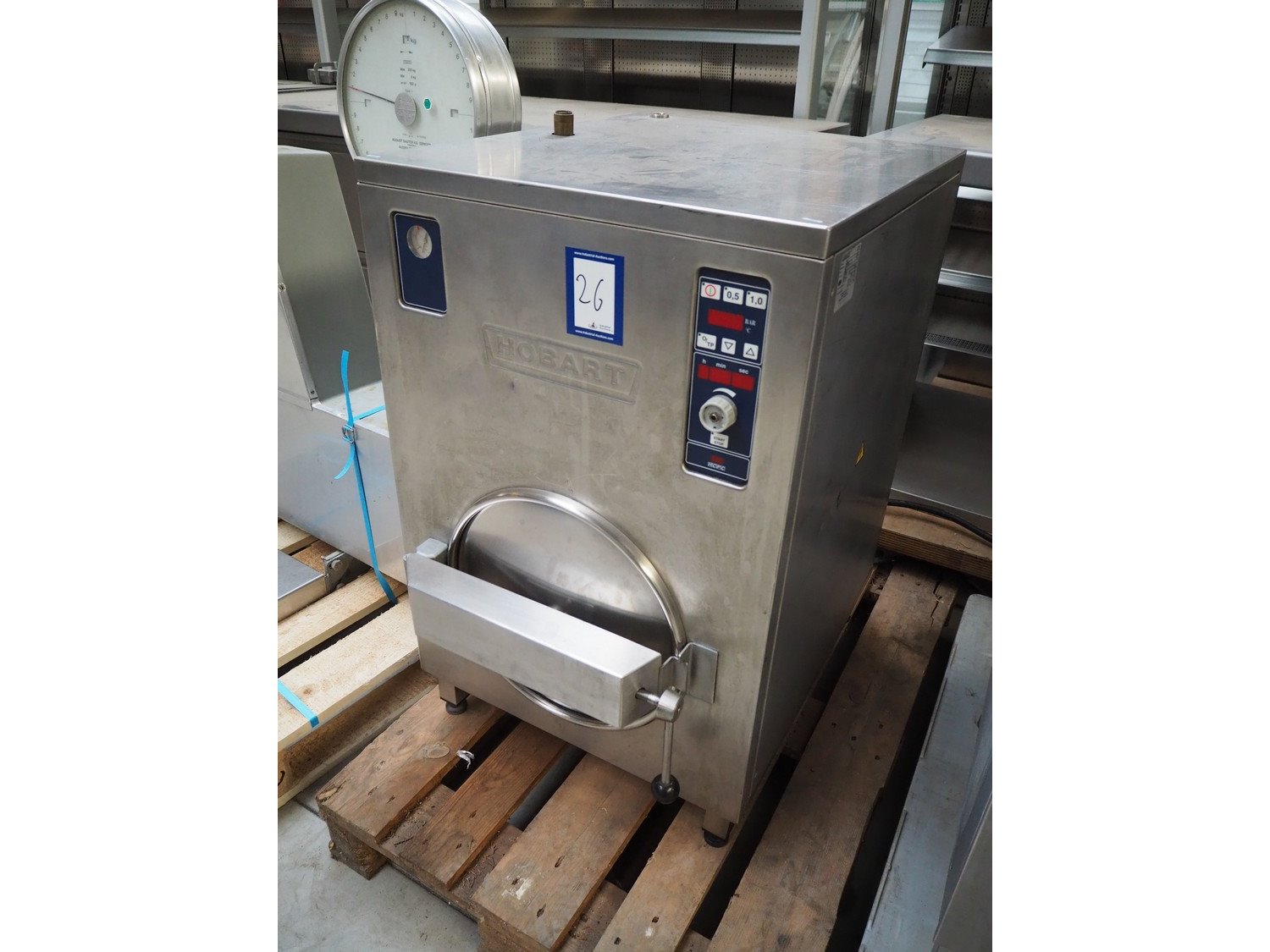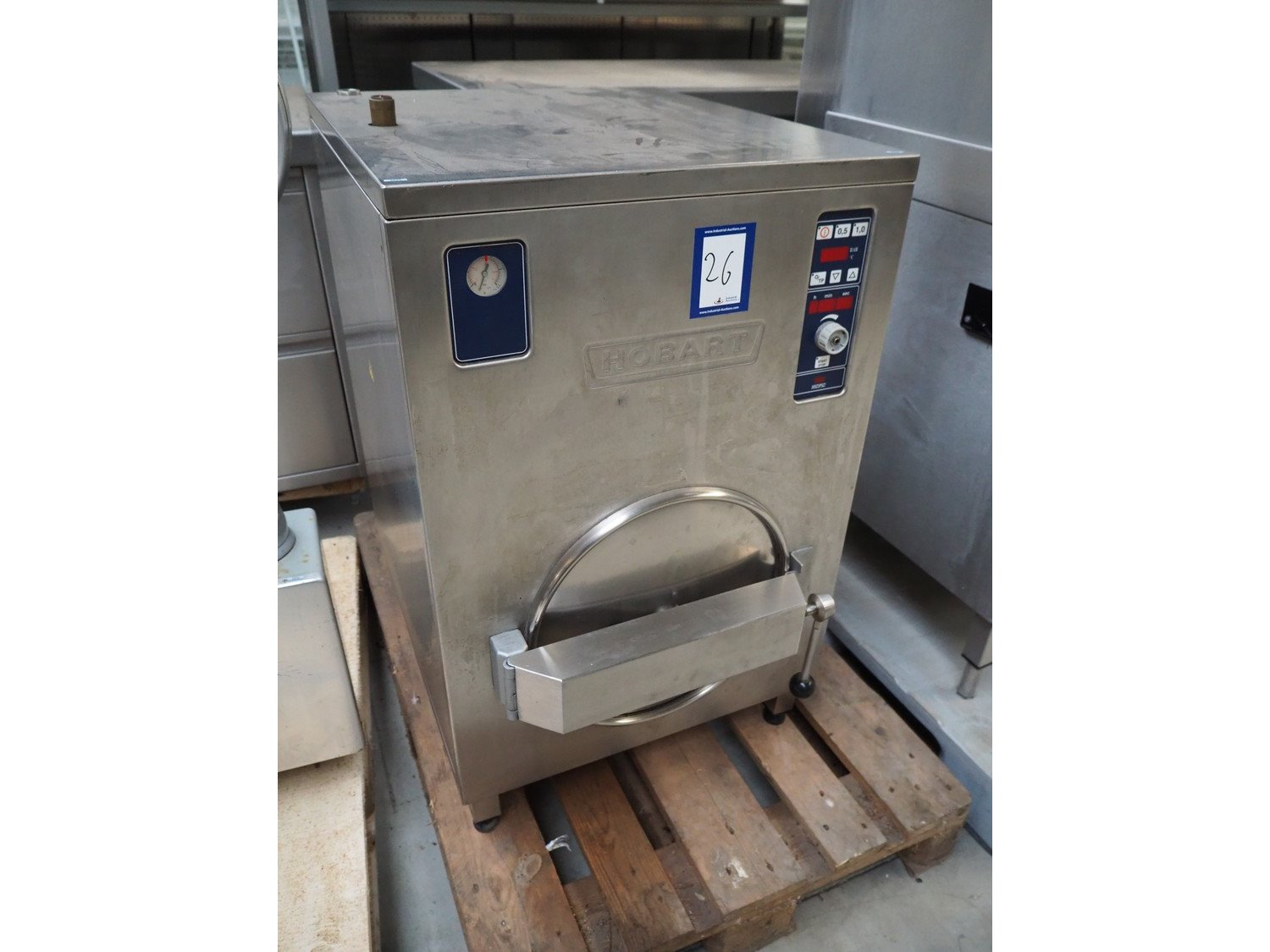 Hobart high speed steam cooker, model: 304G, serial number: 97-0164-366, year of construction: 2002, 400 V, 3 Ph, 50 Hz, 39.2 A, 27.9 W, inside dimensions: 520 mm x 300 mm, total dimensions: 800 mm x 600 mm x 950 mm.
