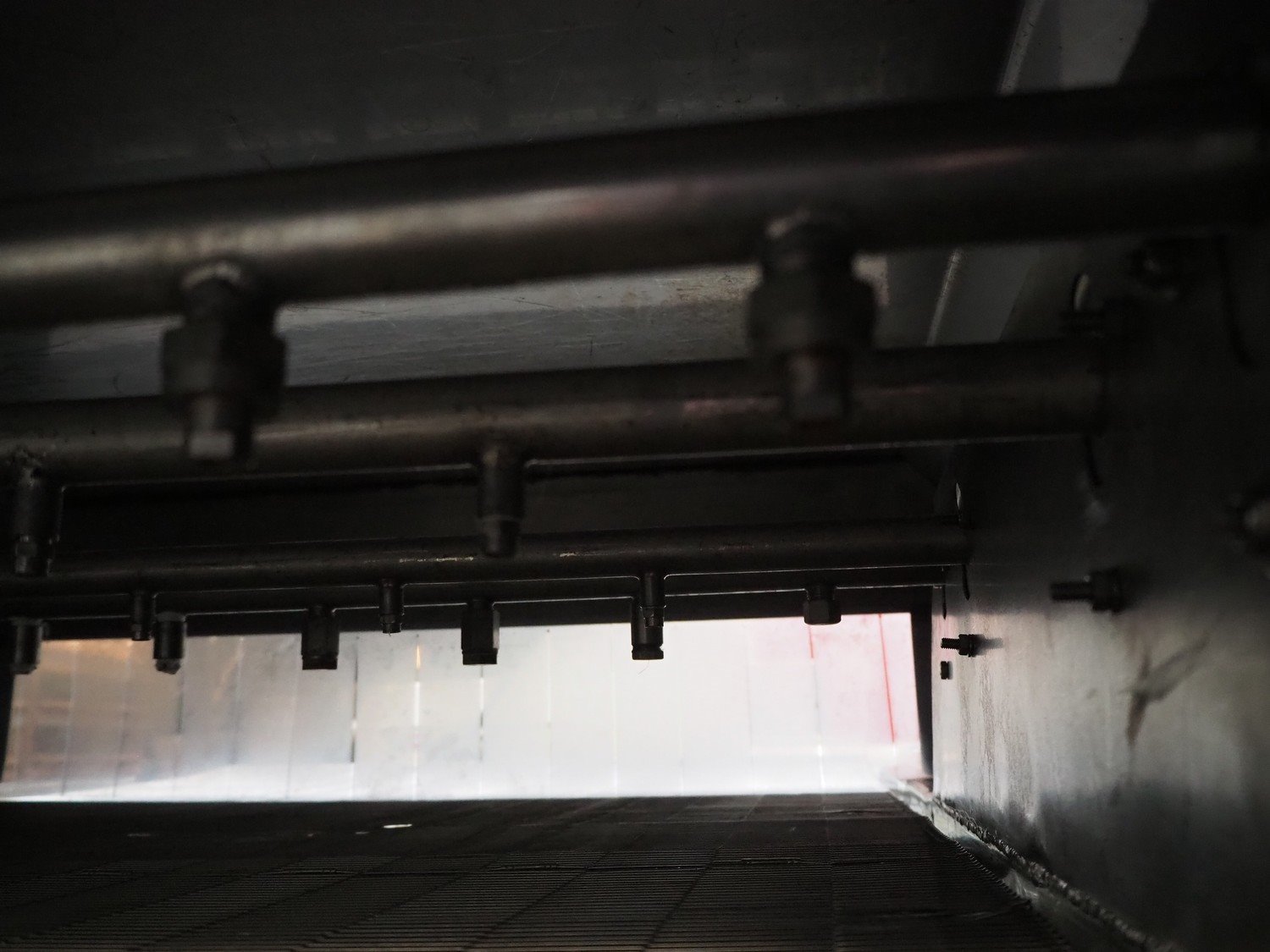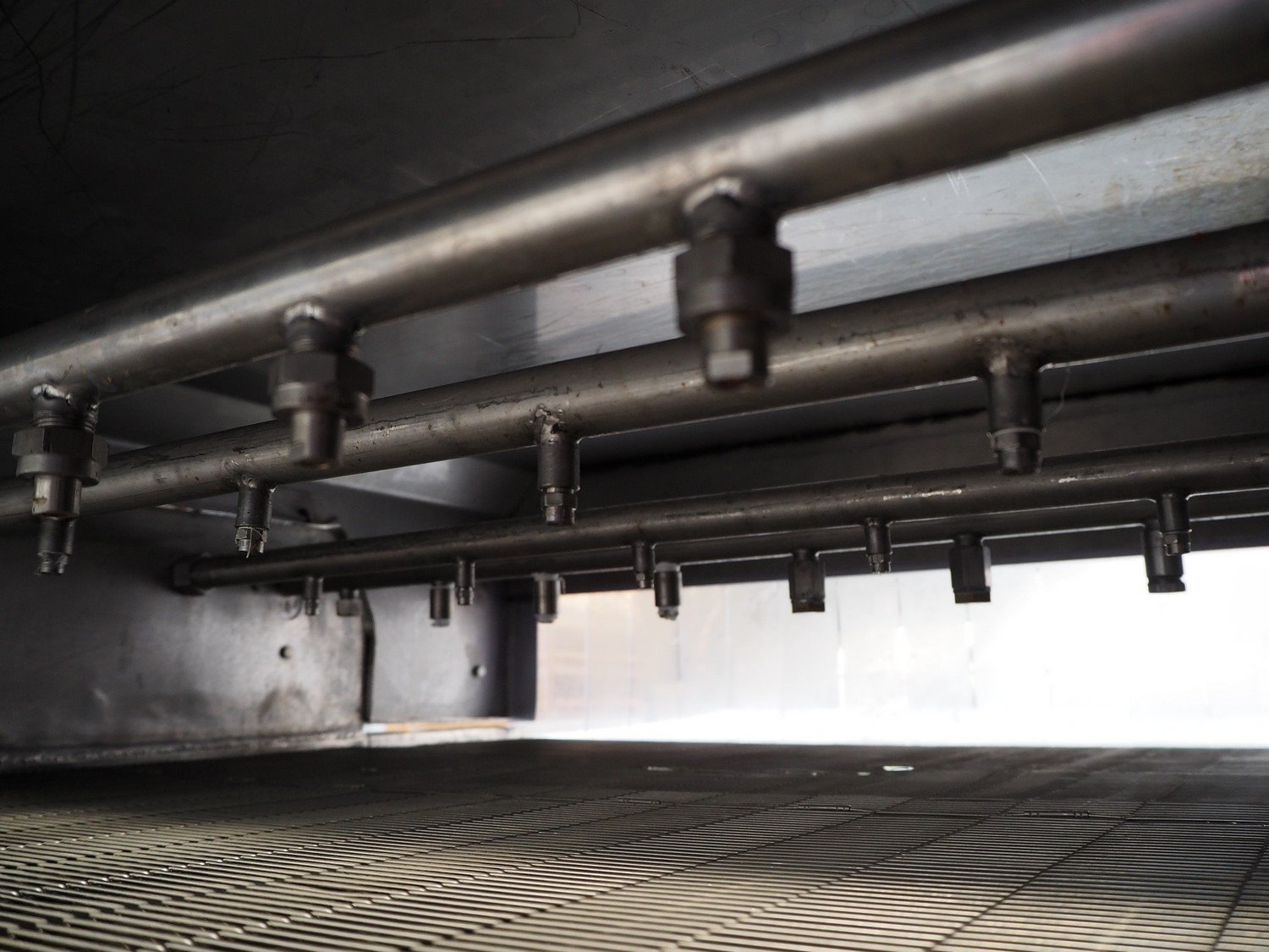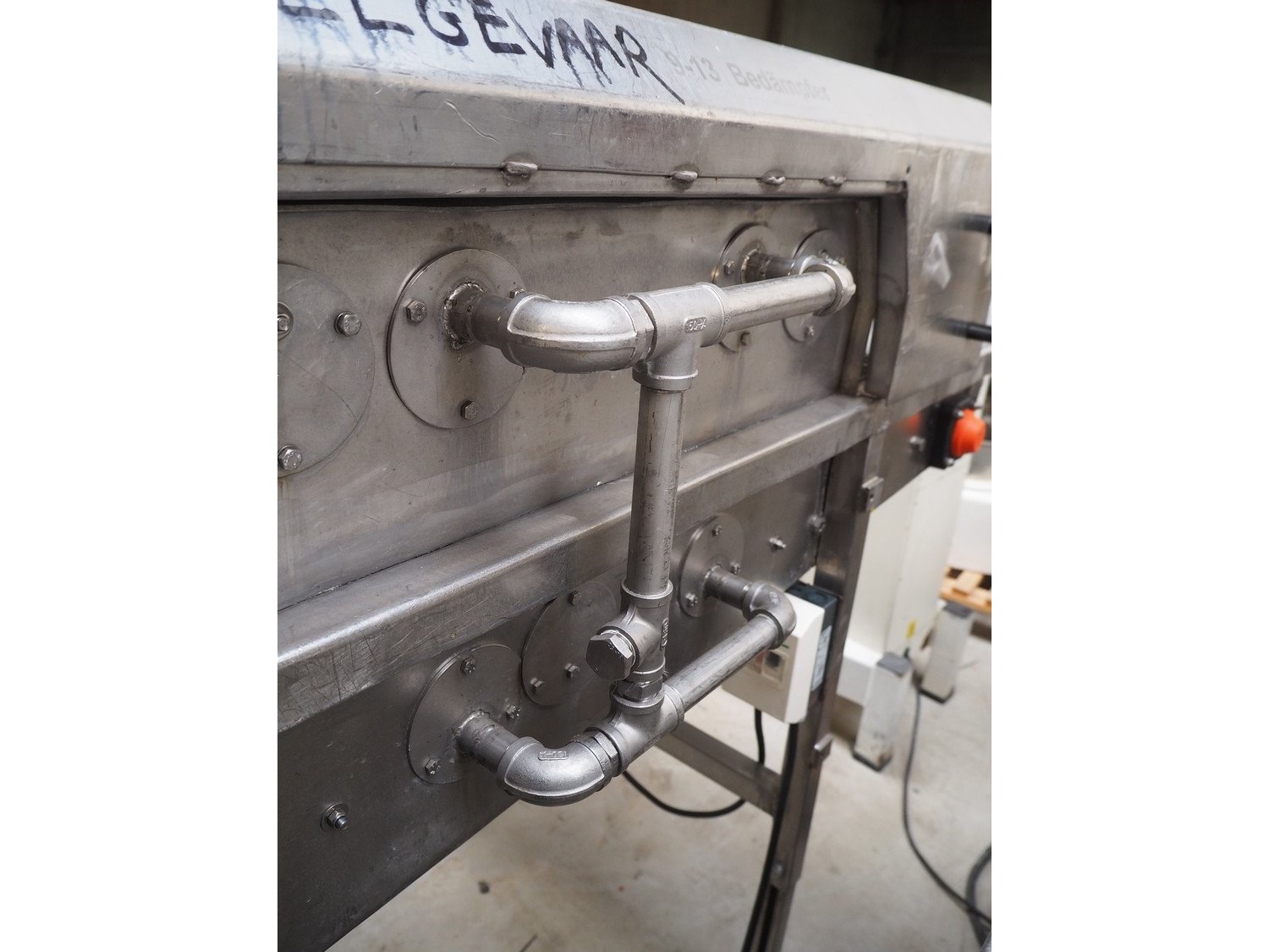 S/s mobile glazing machine, s/s mesh belt, belt width: 900 mm, clearance: 910 mm x 455 mm, total dimensions: 1700 mm x 1150 mm x 1650 mm.