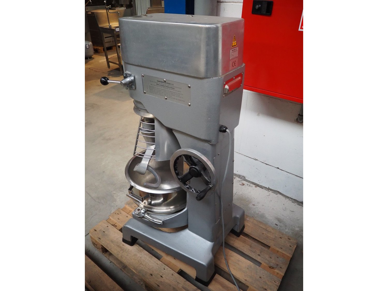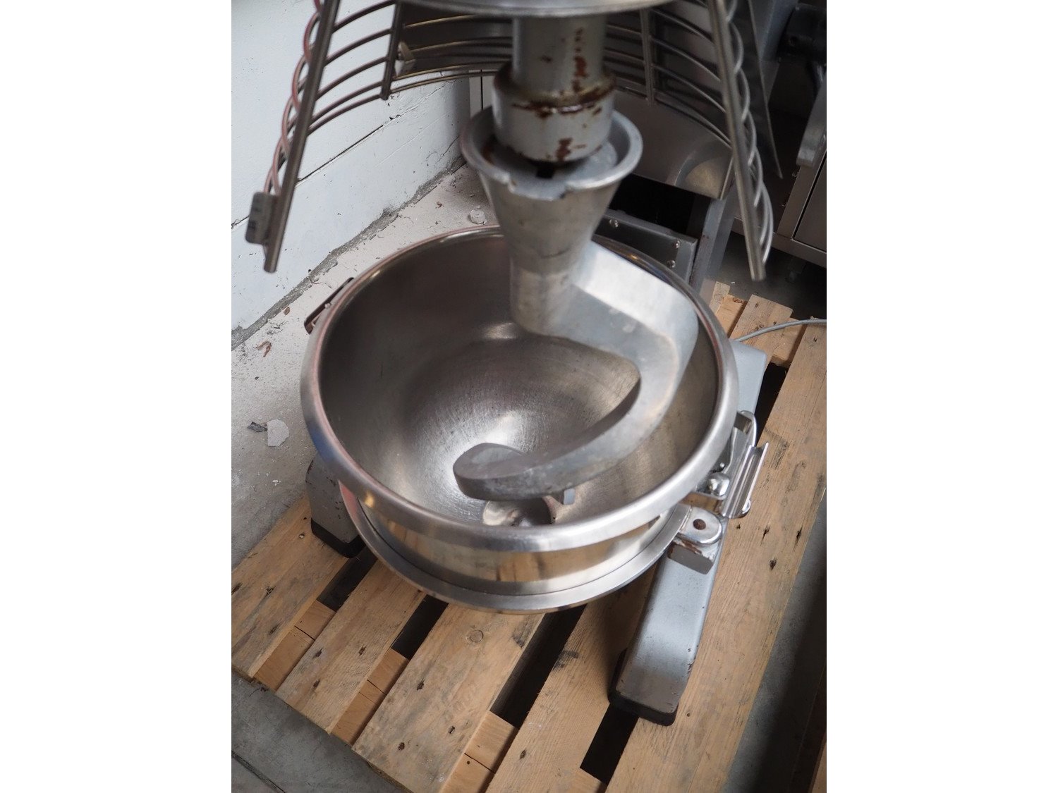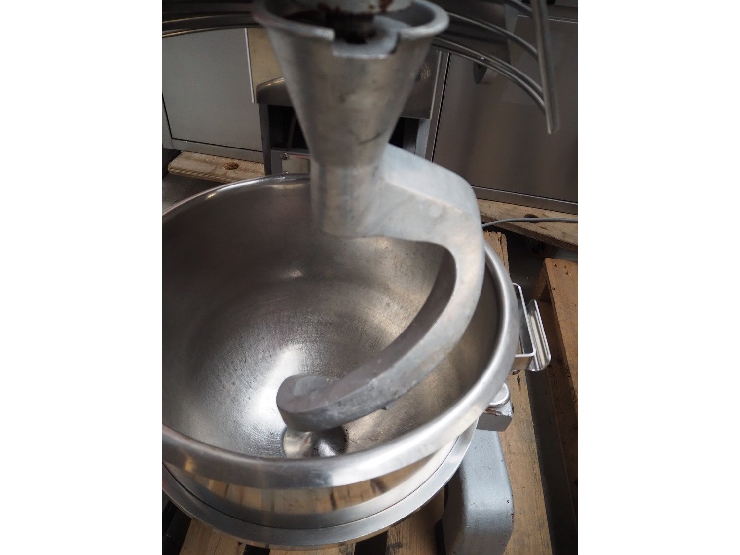 Robot Coupe mixer, model: Robot-Chef 40, serial number: T12701153 11, 400 V, 3 Ph, 50 Hz, 3.4 A, 1500 W, s/s bowl, volume: 40 liter, dimensions: 800 mm x 700 mm x 1320 mm. With whisk, hook and flat beater.