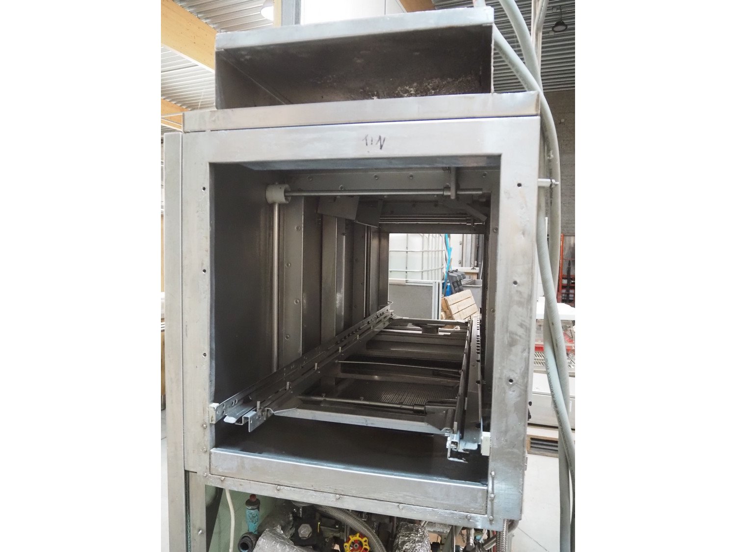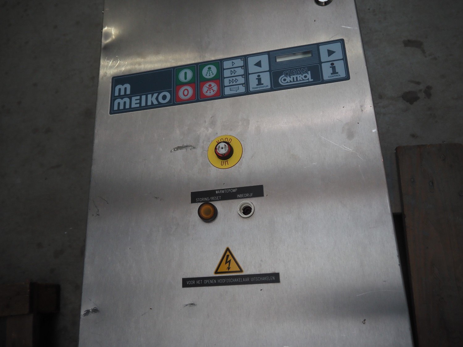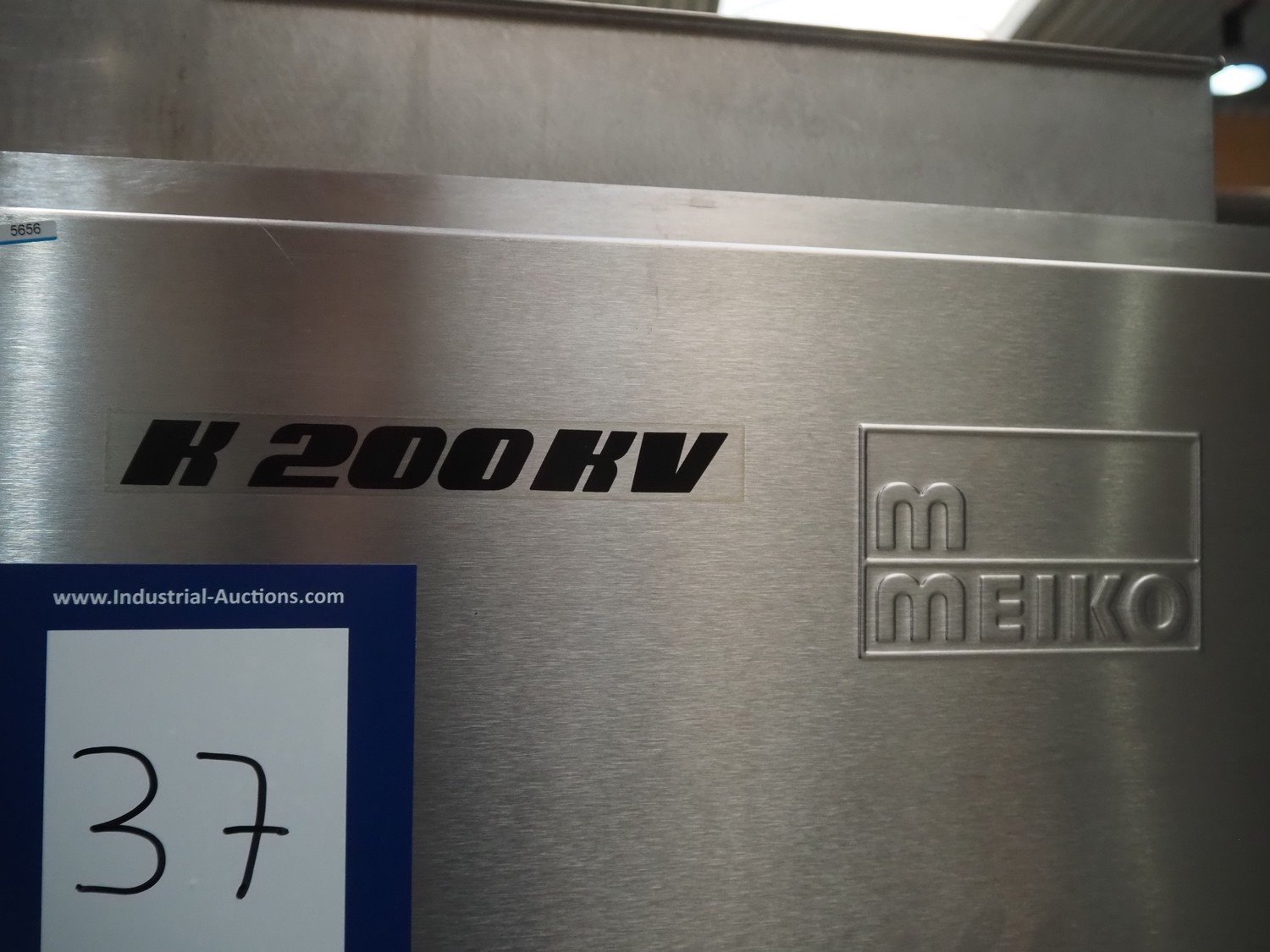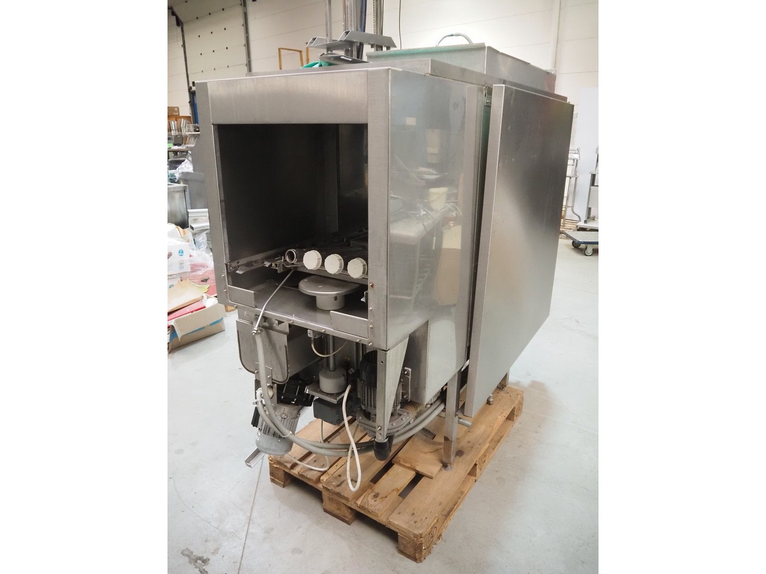 Meiko crate washer, model: K 200KV, serial number: 0005005, year of construction: 03.2001, 400 V, 3 Ph, 50 Hz, 19 A, 9 kW, clearance: 510 mm x 510 mm, total dimensions: 1910 mm x 780 mm x 1950 mm. Incomplete. Including pallet with switch cabinet, dimensions: 1730 mm x 600 mm x 300 mm and pallet with dryer, dimensions: 1190 mm x 870 mm x 1000 mm.