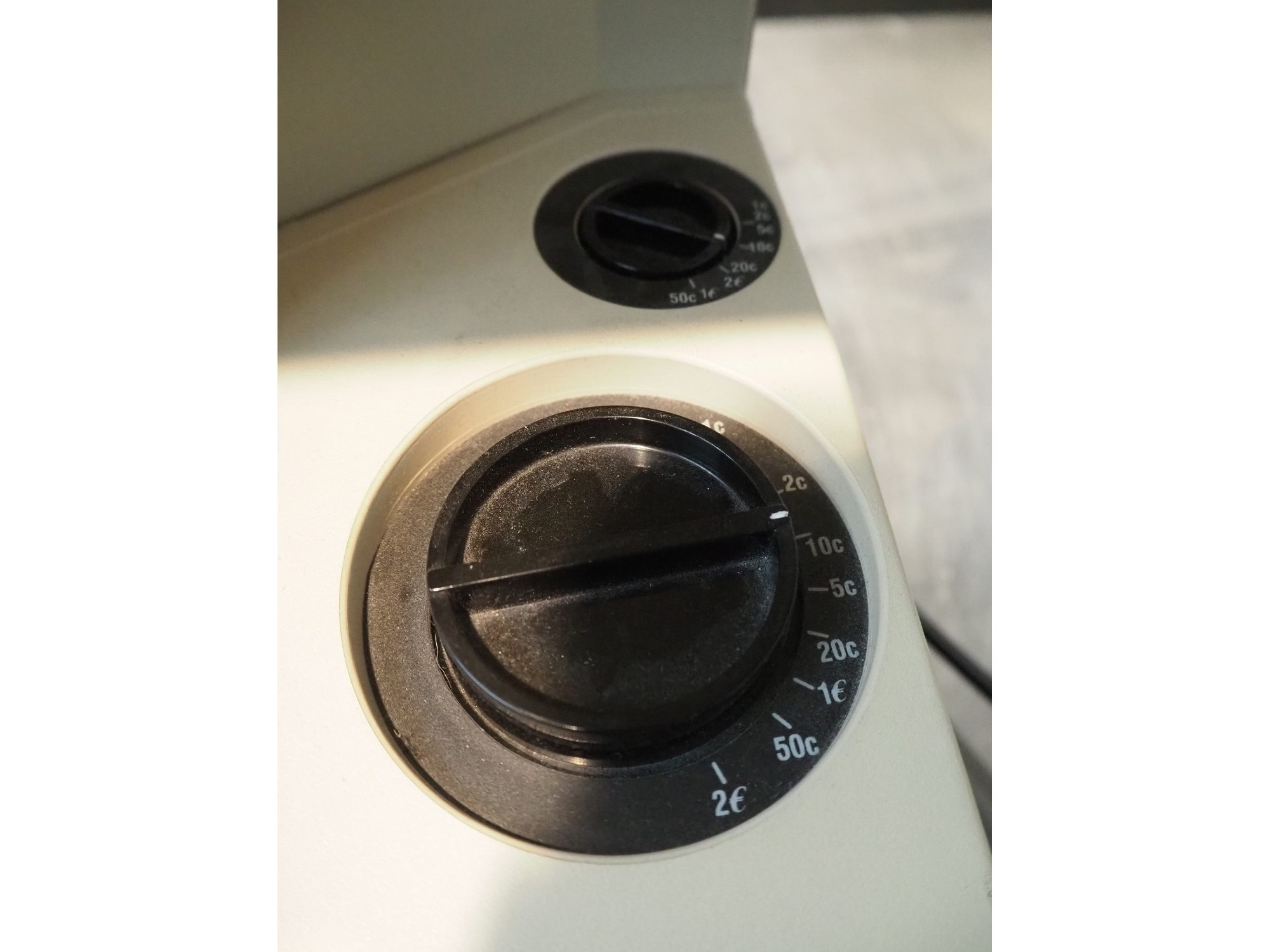 JMC coin ace coin counter, model: CS-30-14, serial number: 0109116865, 220 V, 50 Hz, 0.3 A, dimensions: 390 mm x 230 mm x 350 mm.
