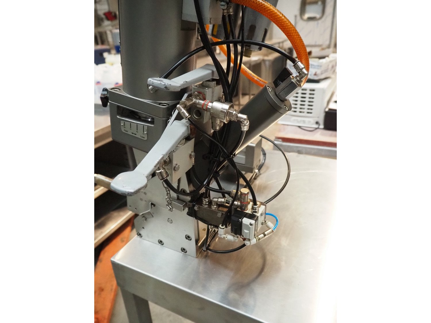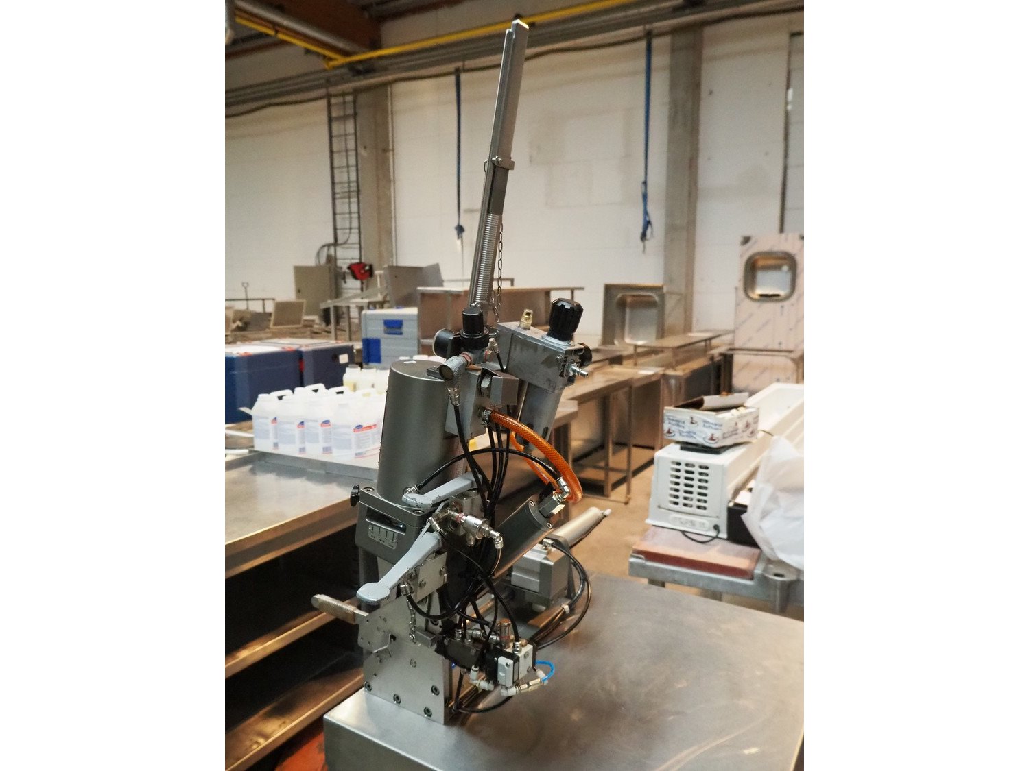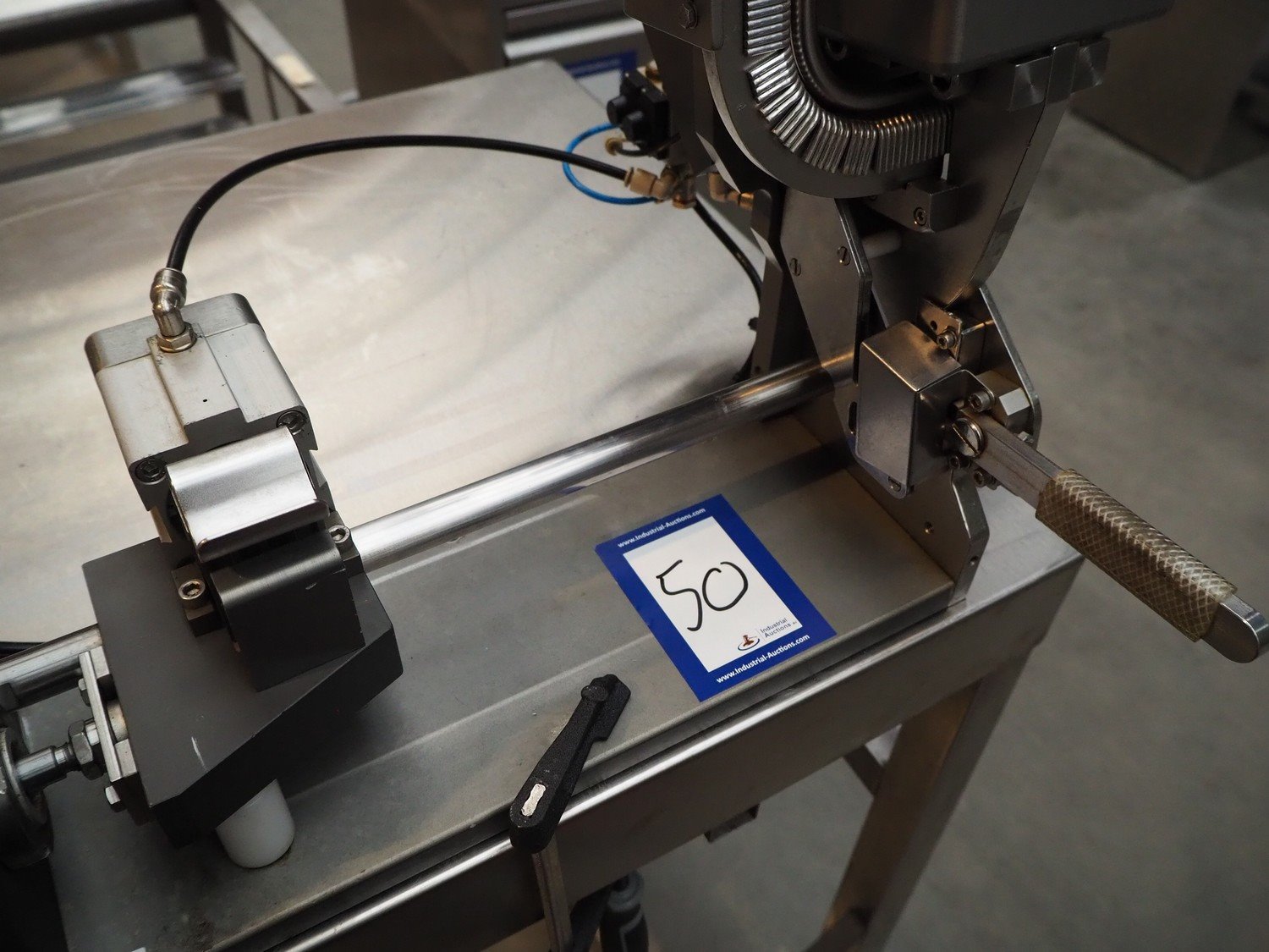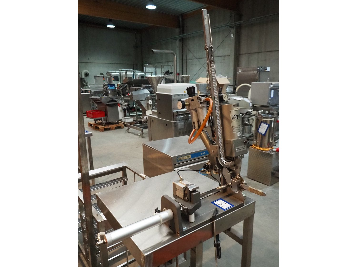 Poly-clip System GmbH & Co. KG clipper, type: PCD 8026, number: 1091, year of construction: 08, 6-8 bar, dimensions: 930 mm x 450 mm x 980 mm. Including clips. Table not included.