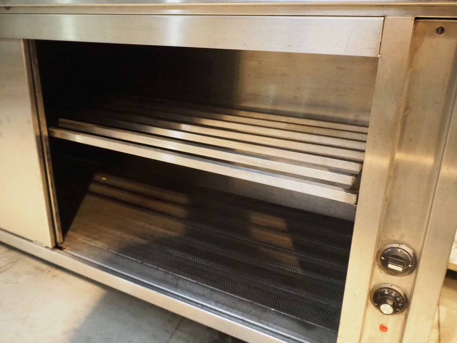 S/s heated counter, dimensions: 1900 mm x 700 mm x 1580 mm.