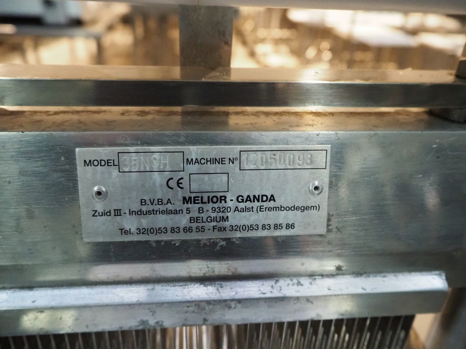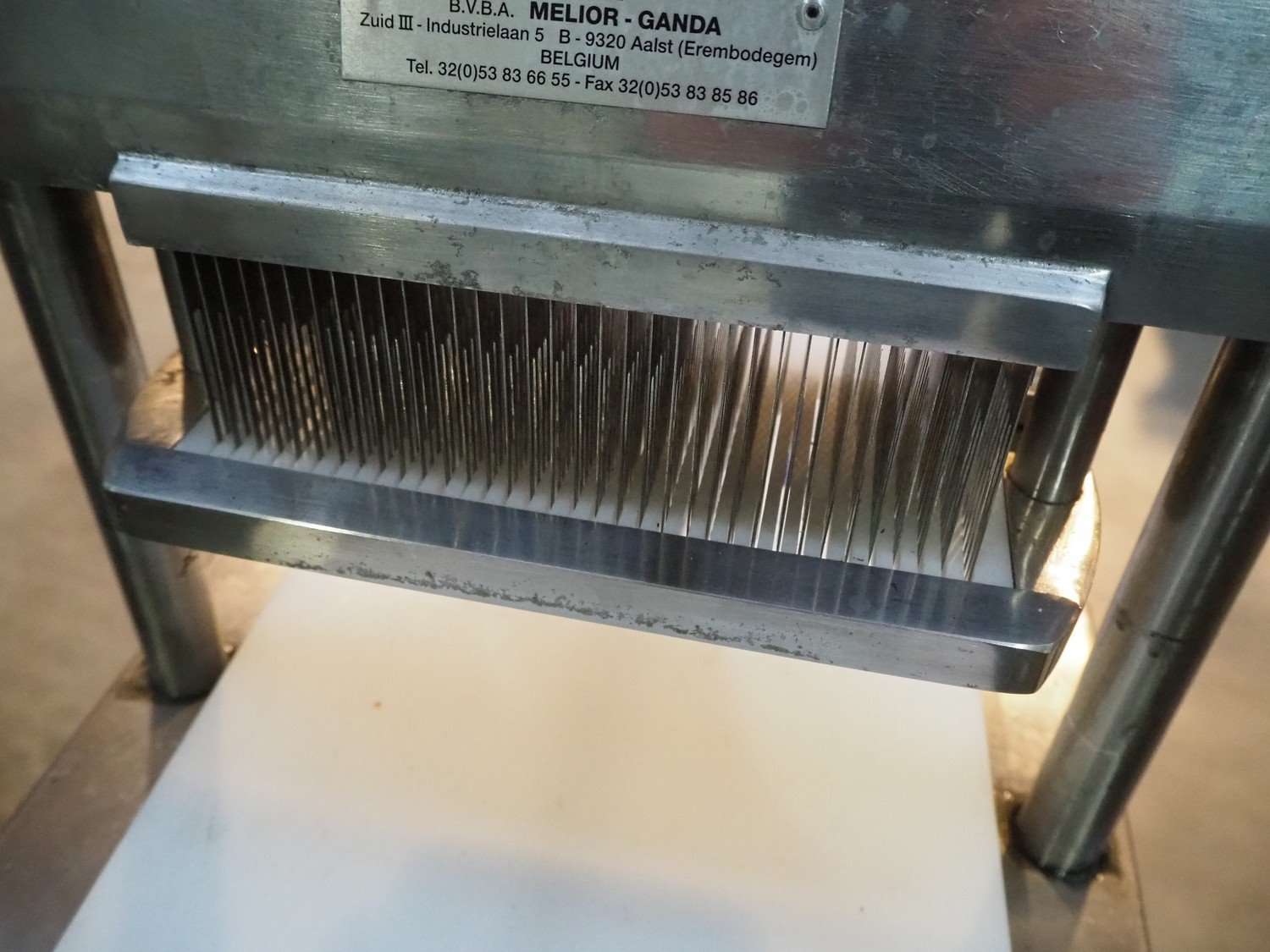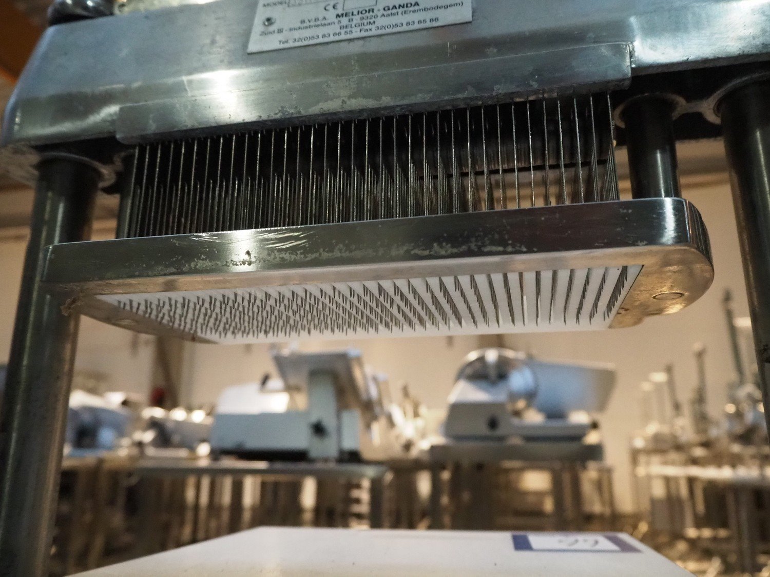 Melior-Ganda tenderizer, model: 35NSH, number: 12050098, clearance: 290 mm x 100 mm, dimensions: 440 mm x 400 mm x 1670 mm.