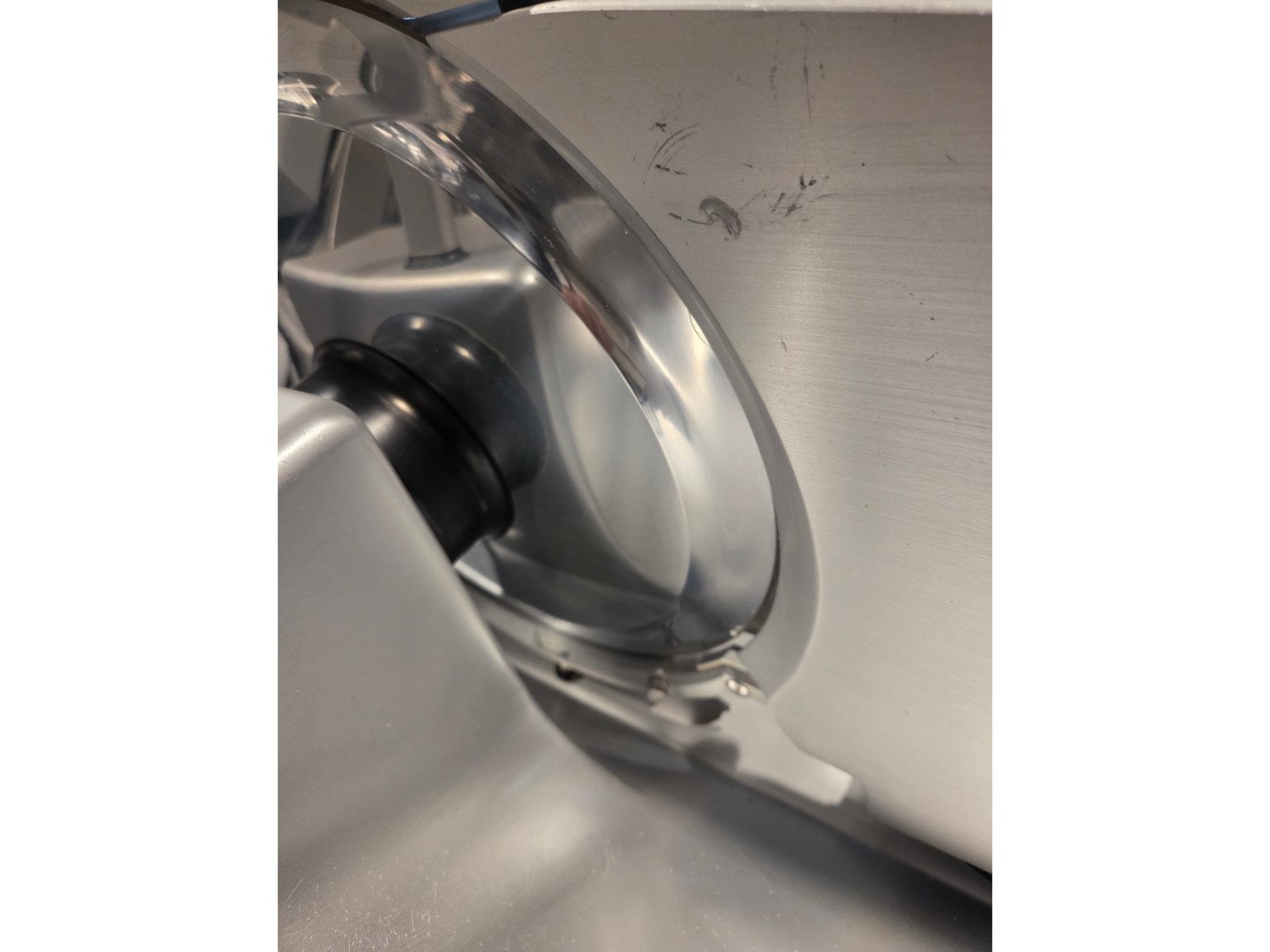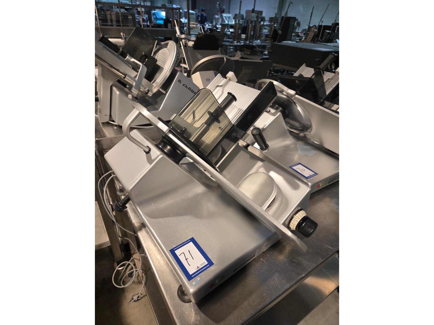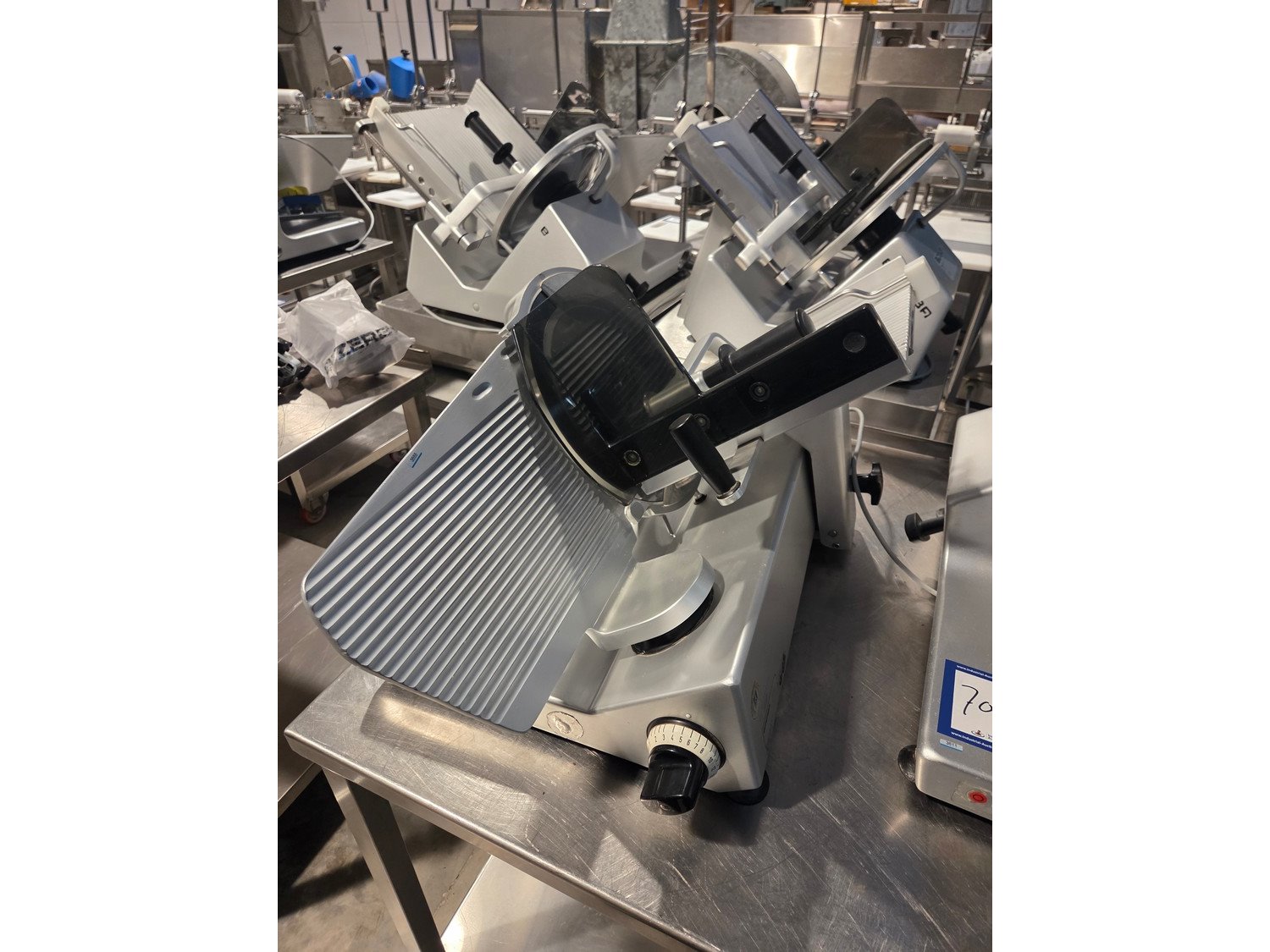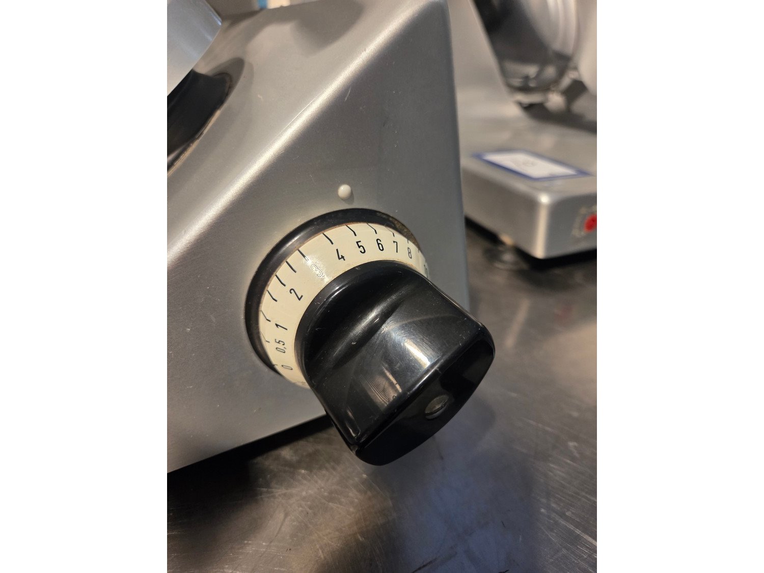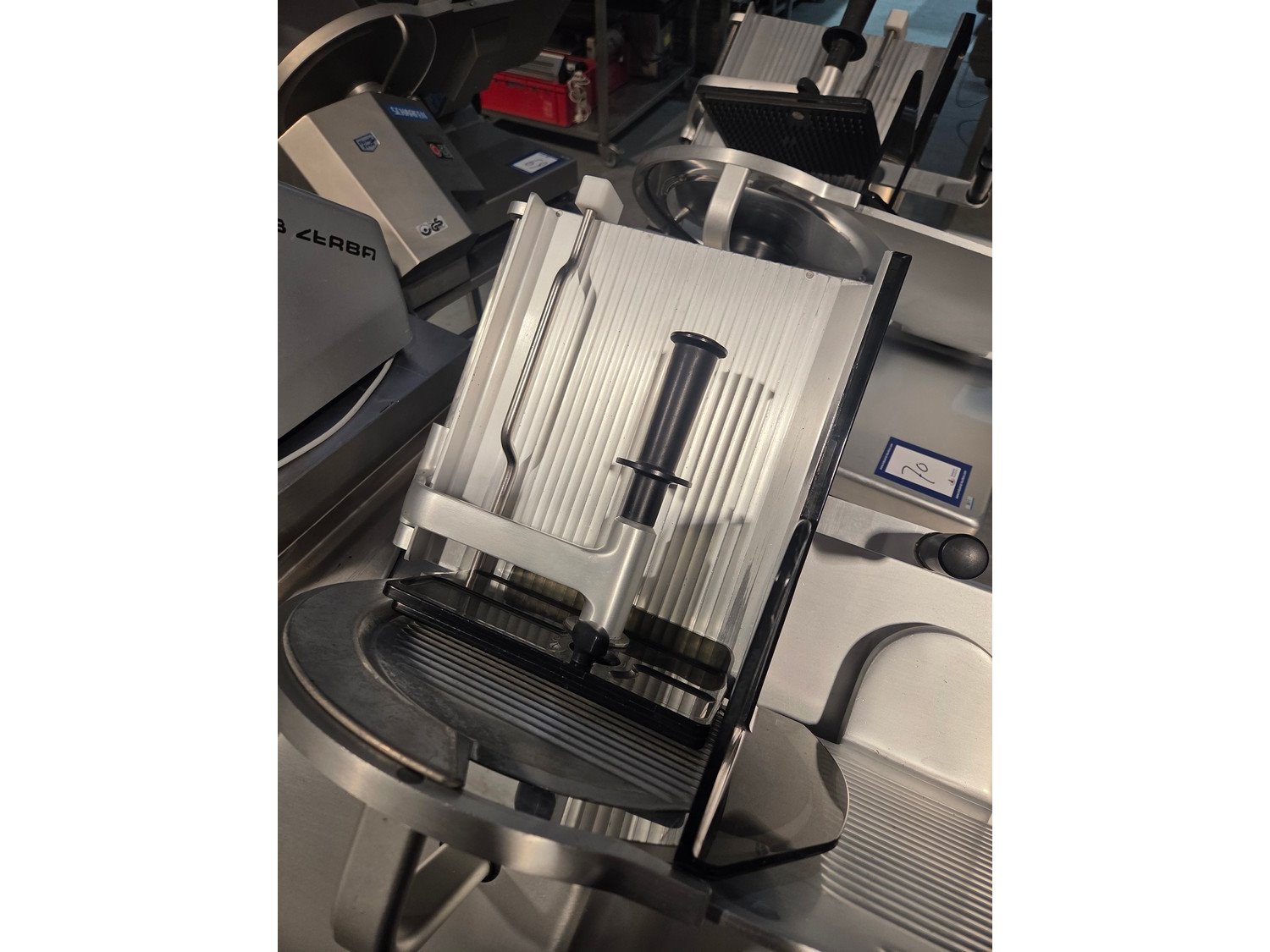 Bizerba slicer, model: SE12, serial number: 00316522001, year of construction: 2001, 230 V, 50 Hz, 1.79 A, dimensions: 700 mm x 600 mm x 450 mm.