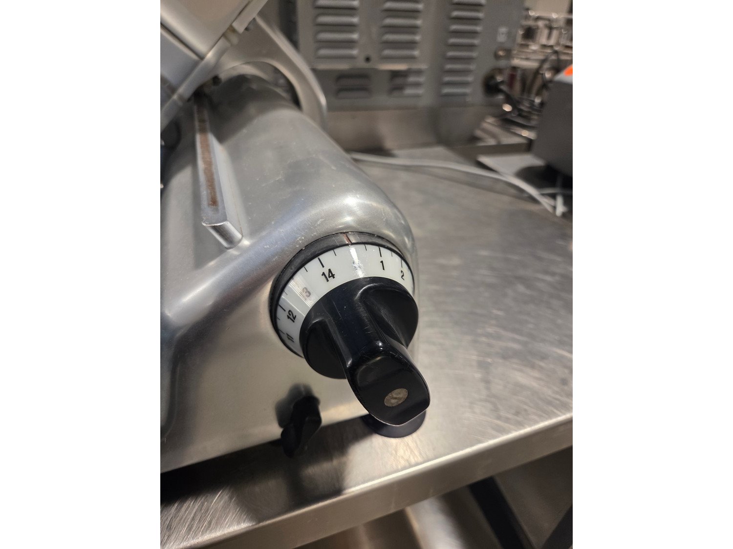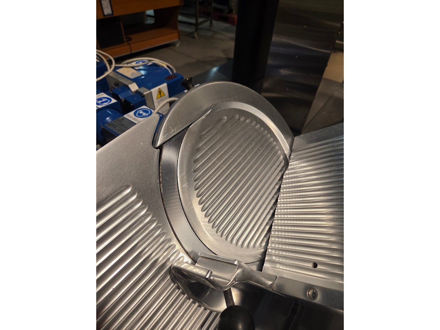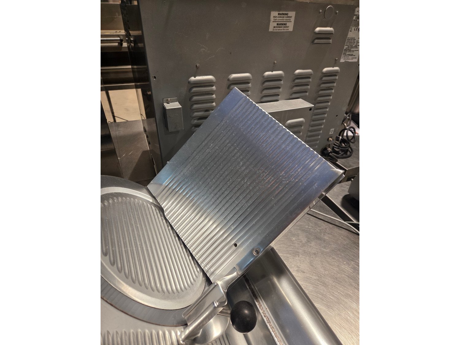 Bizerba slicer, type: SE 3, machine number: 402494, 220 V, 50 Hz, 1.3 A, 0.280 kW, dimensions: 730 mm x 450 mm x 450 mm.