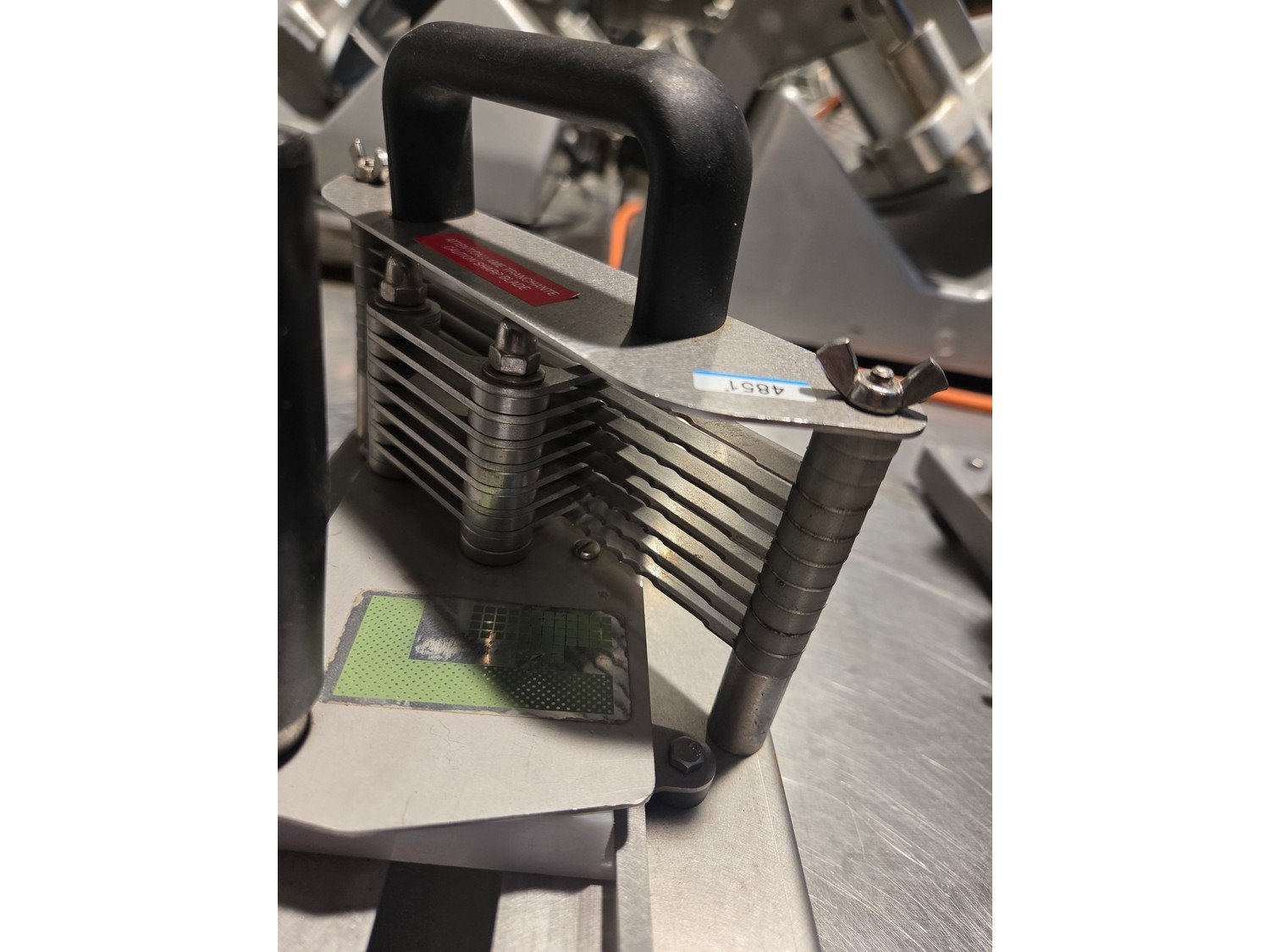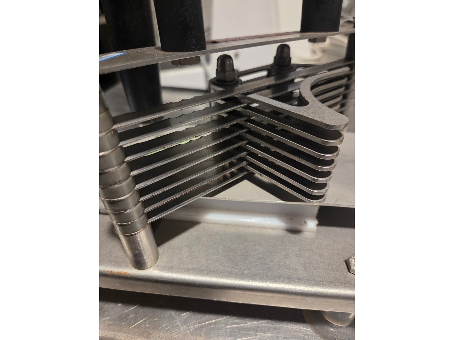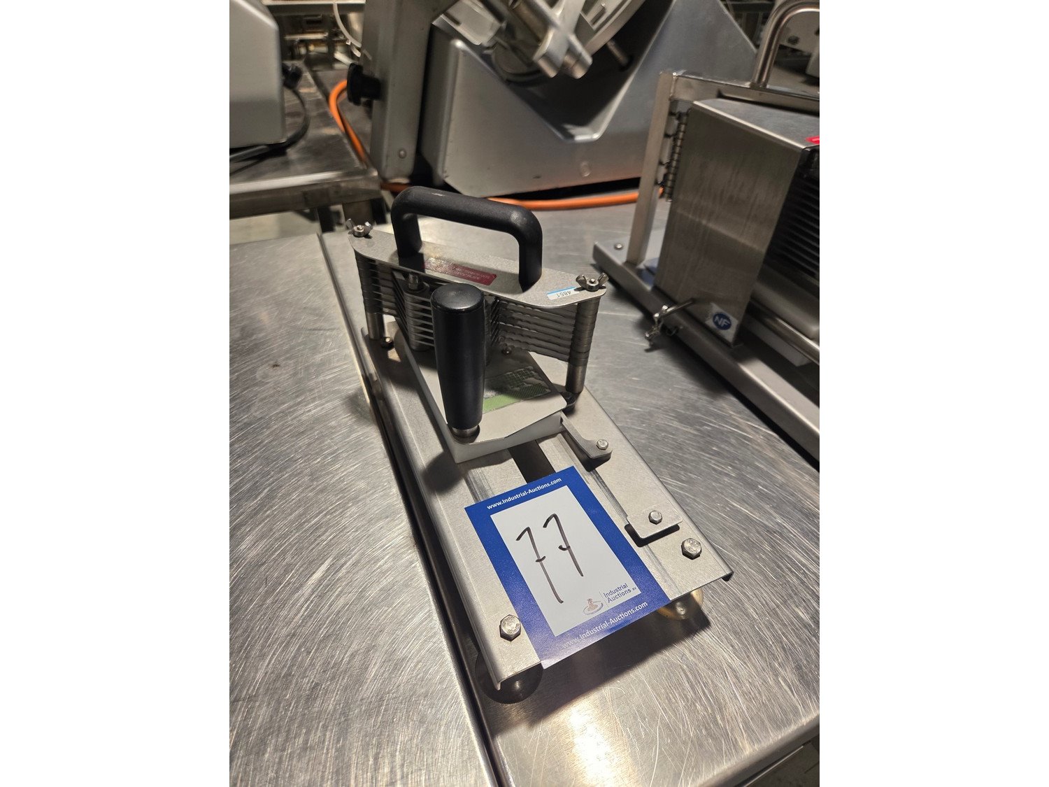 Louis Tellier tomato slicer, 8 knives, distance between knives: 5 mm, total dimensions: 330 mm x 140 mm x 180 mm.
