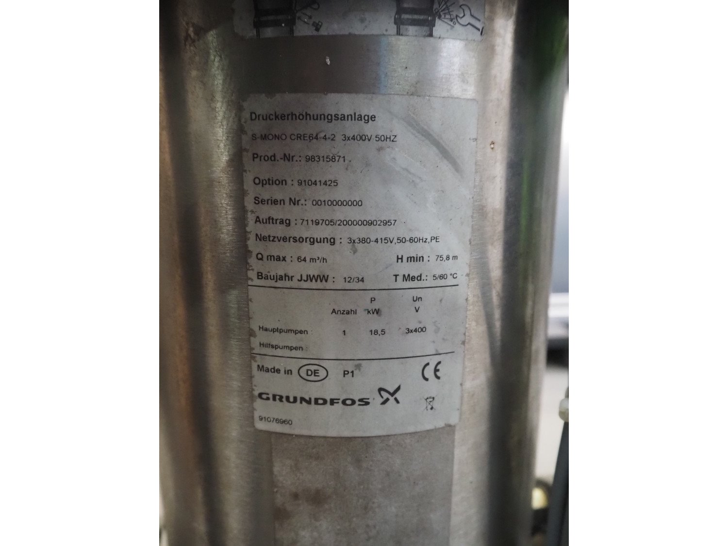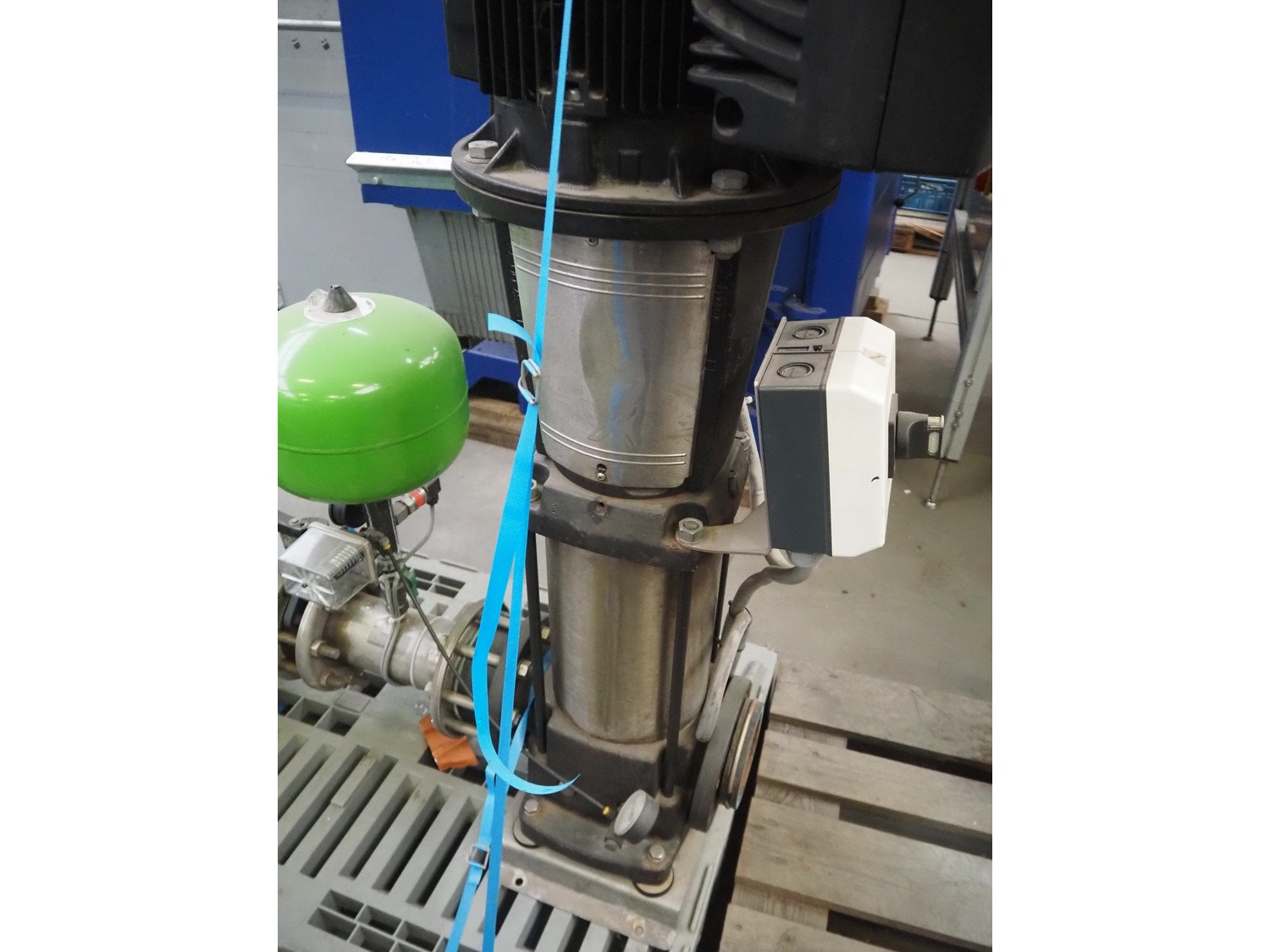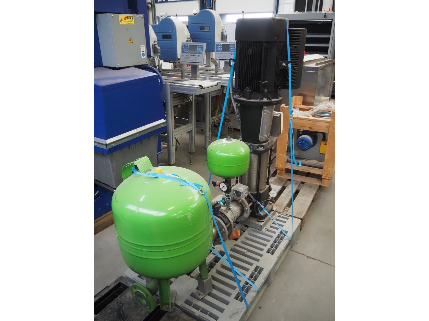 Grundfos pump, serial number: A96123983P11233, 50 Hz,18.5 kW, 64 m³ per hour, with 2 Reflex pressure vessels, dimensions: 1600 mm x 500 mm x 1520 mm.