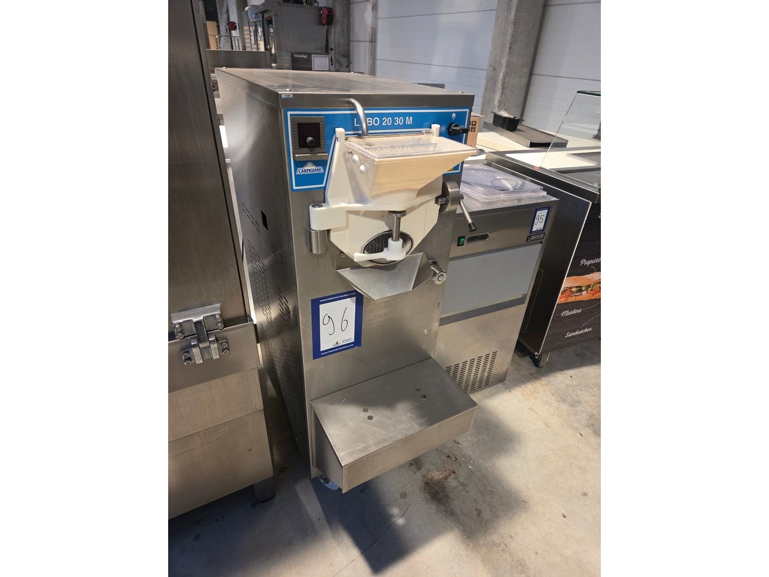 Carpigiani mobile ice cream machine, model: LABO 20/30 M, serial number: IC32714, 380-415 V, 3 Ph, 50 Hz, 16 A, 2.9 kW, refrigerant: R404a, 0.7 kg, dimensions: 870 mm x 460 mm x 1280 mm.
