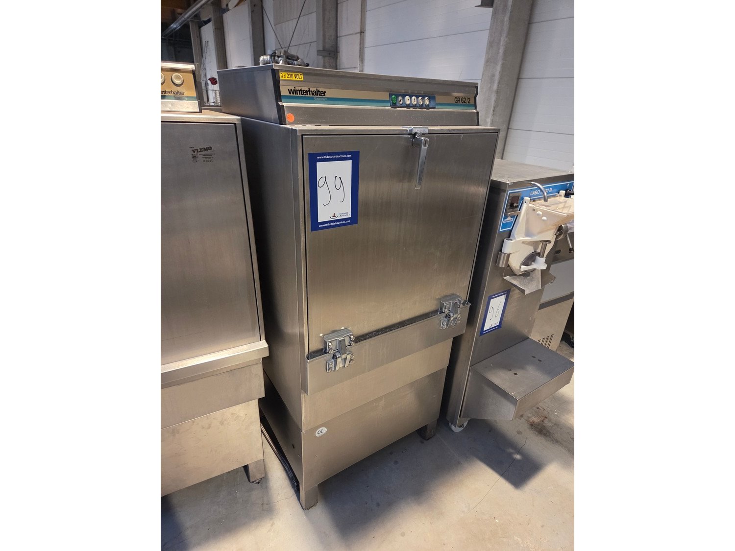 Winterhalter dishwasher, type: GR 62/2, serial number: 376 004, 230 V, 50 Hz, 27 A, 10 kW, dimensions: 600 mm x 660 mm x 840 mm.