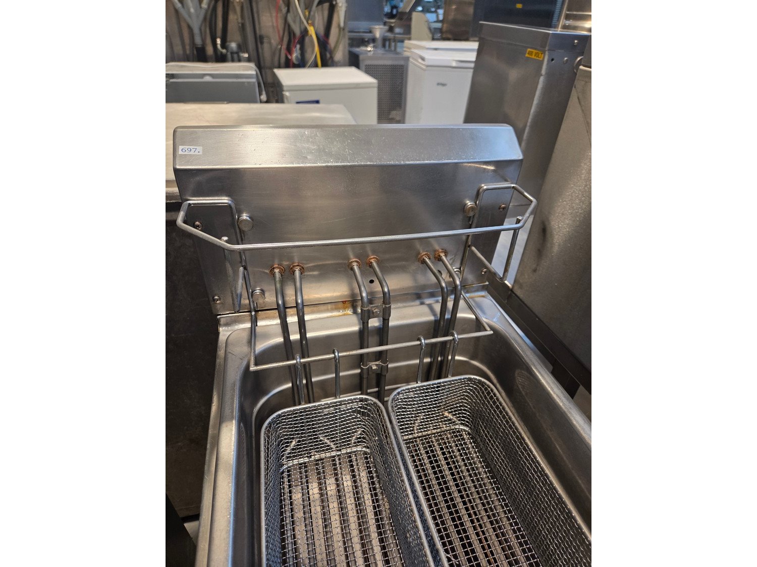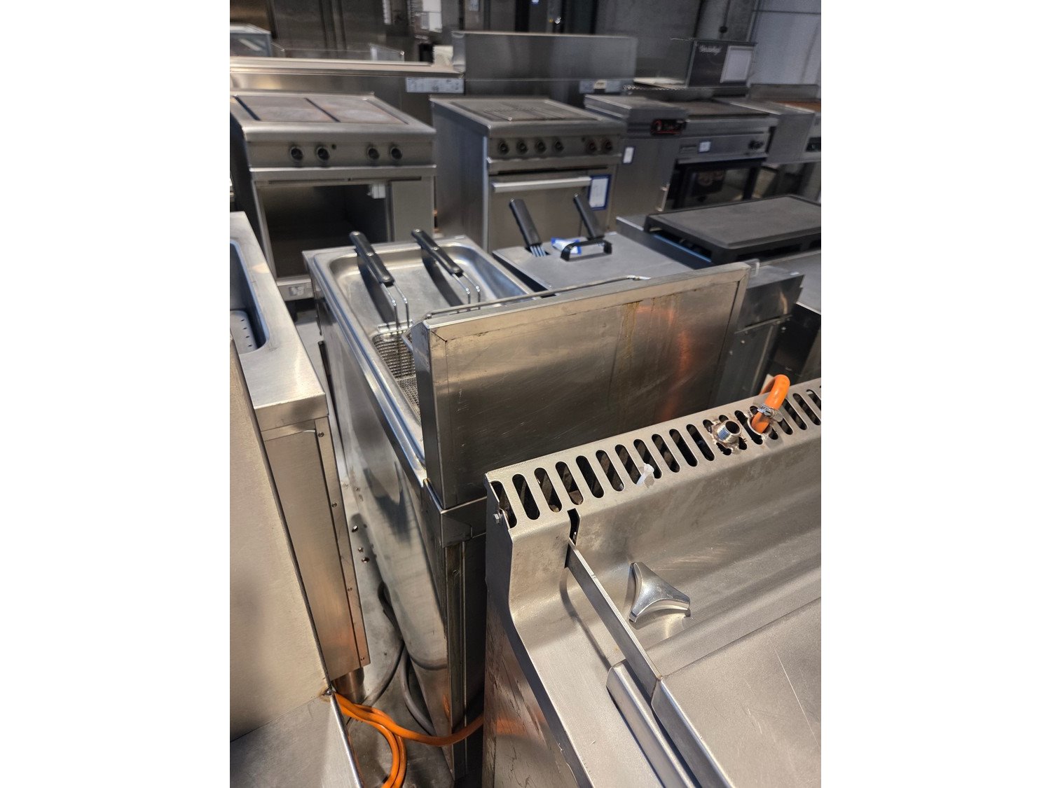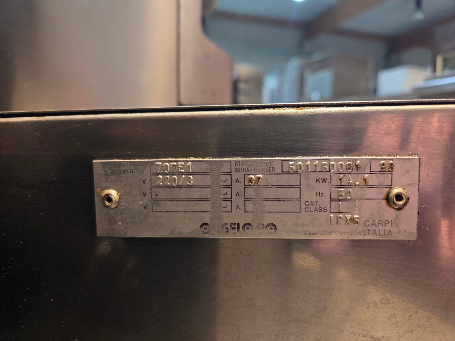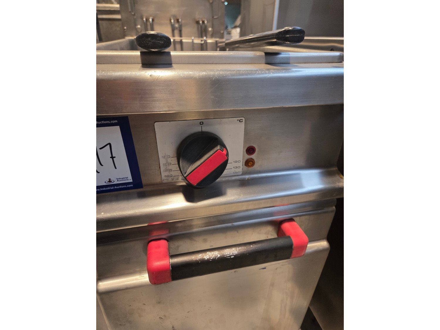 Angelo Po double fryer, model: 70FE1, serial number: 501150001, year of construction: 93, 220 V, 3 Ph, 50 Hz, 37 A, 14.1 kW, dimensions: 920 mm x 400 mm x 1100 mm.