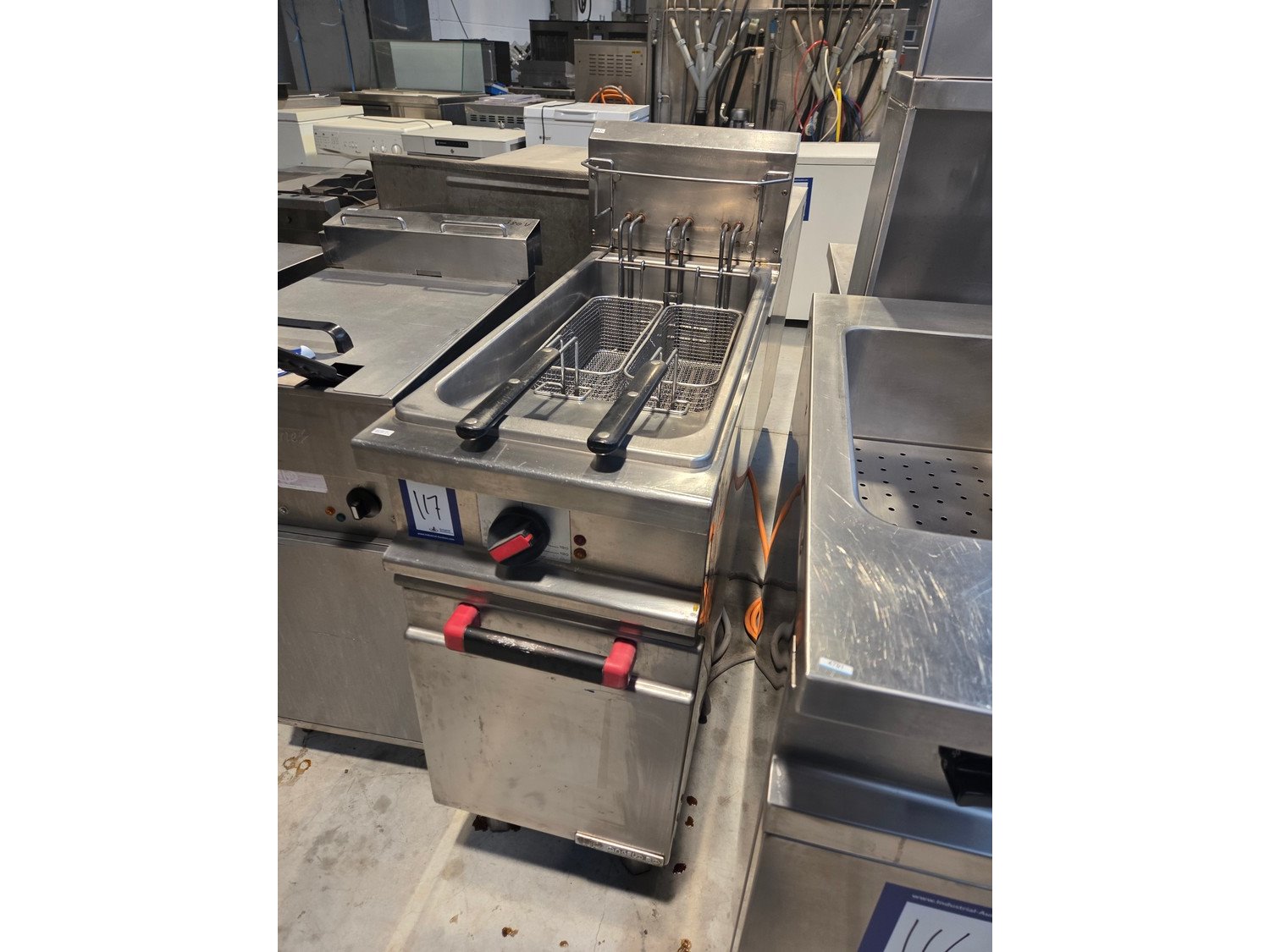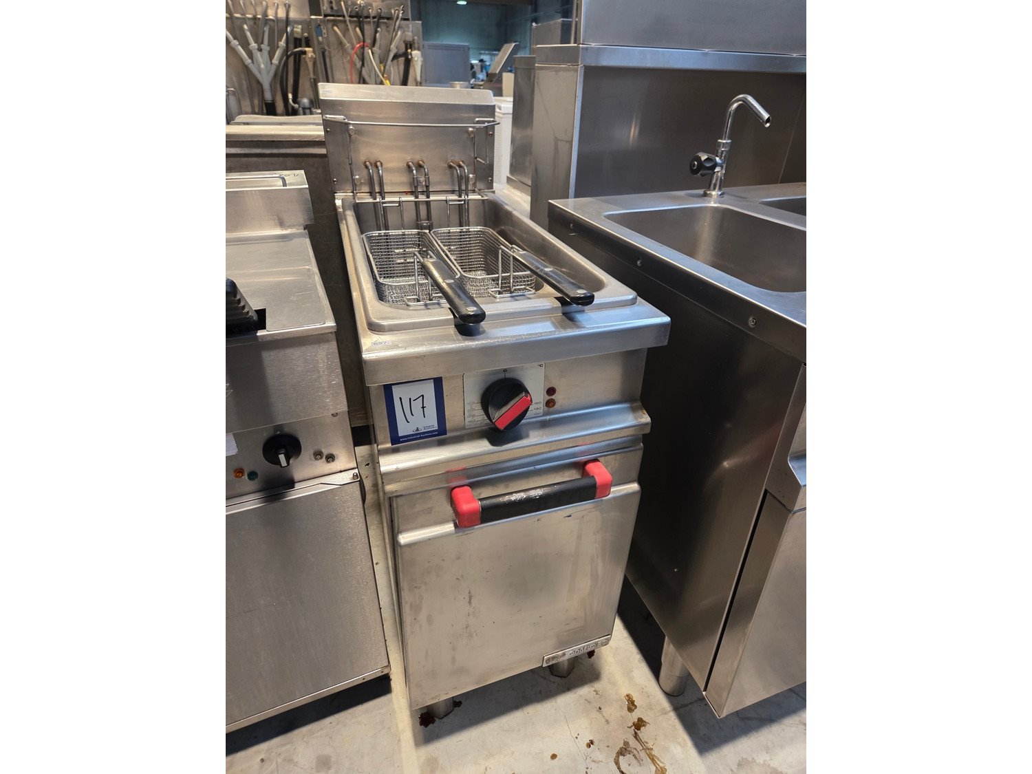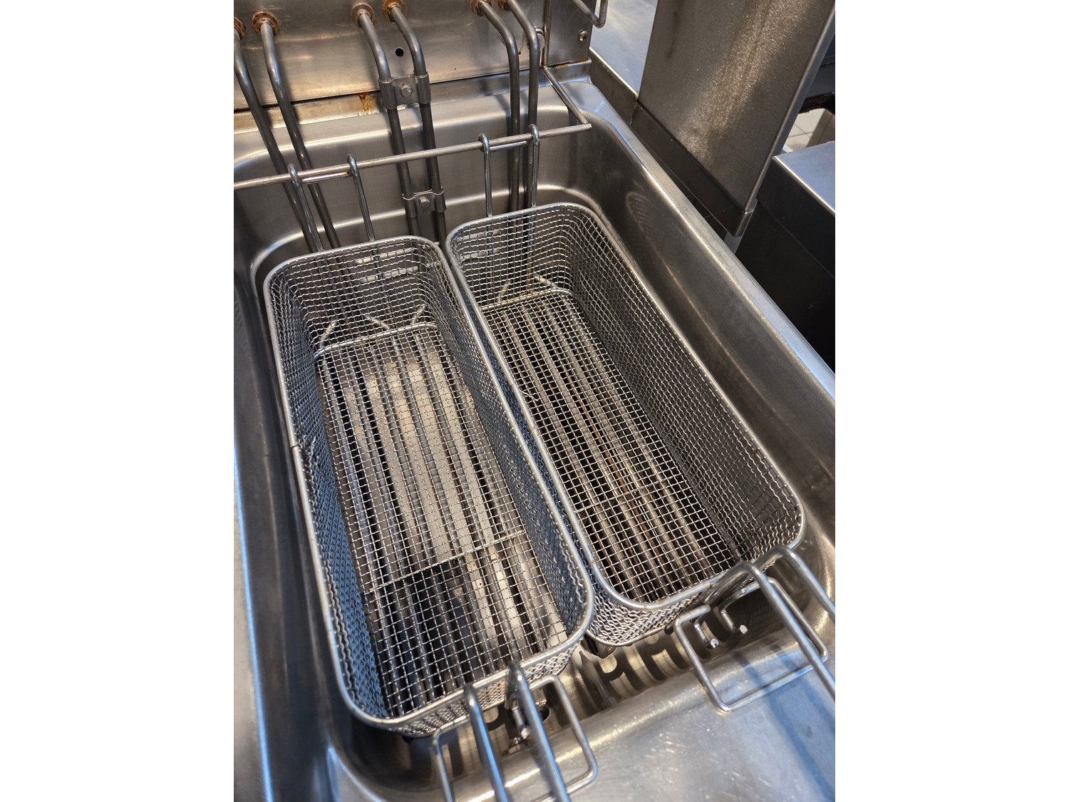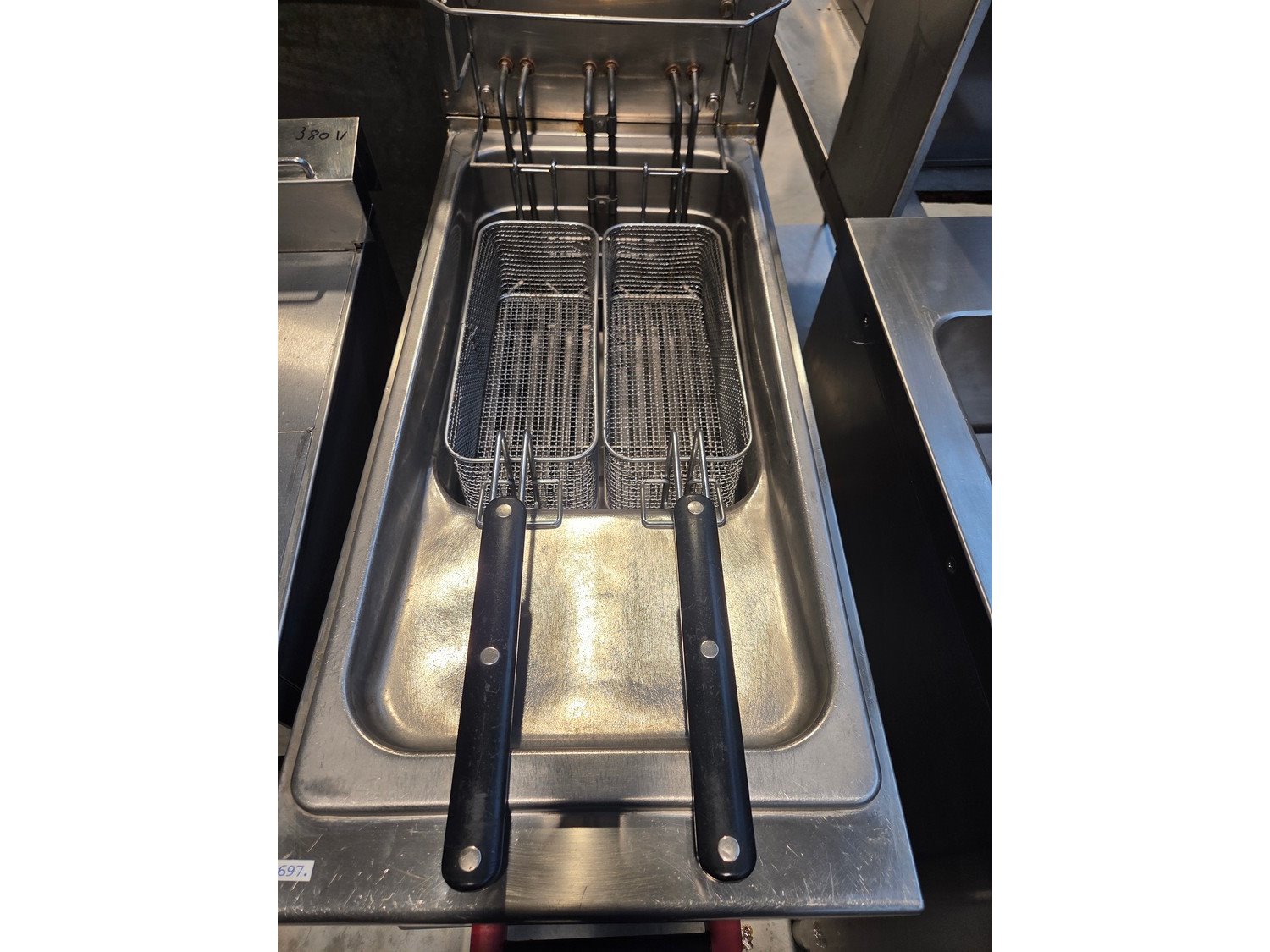 Angelo Po double fryer, model: 70FE1, serial number: 501150001, year of construction: 93, 220 V, 3 Ph, 50 Hz, 37 A, 14.1 kW, dimensions: 920 mm x 400 mm x 1100 mm.
