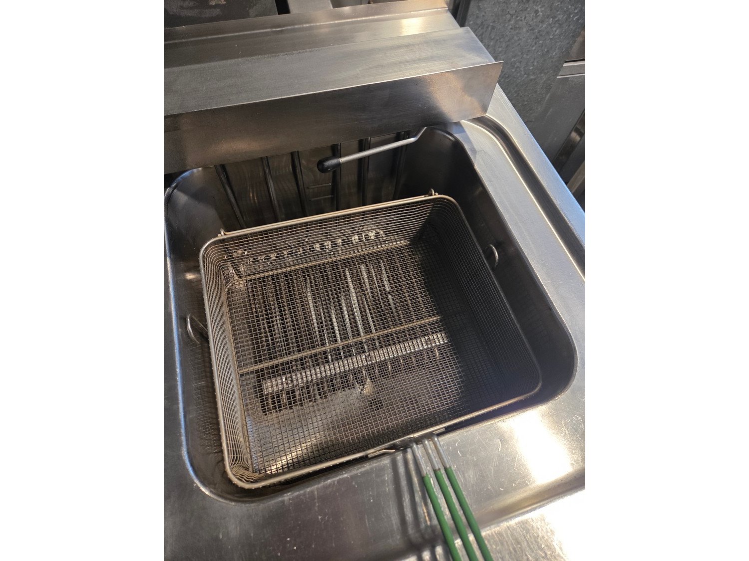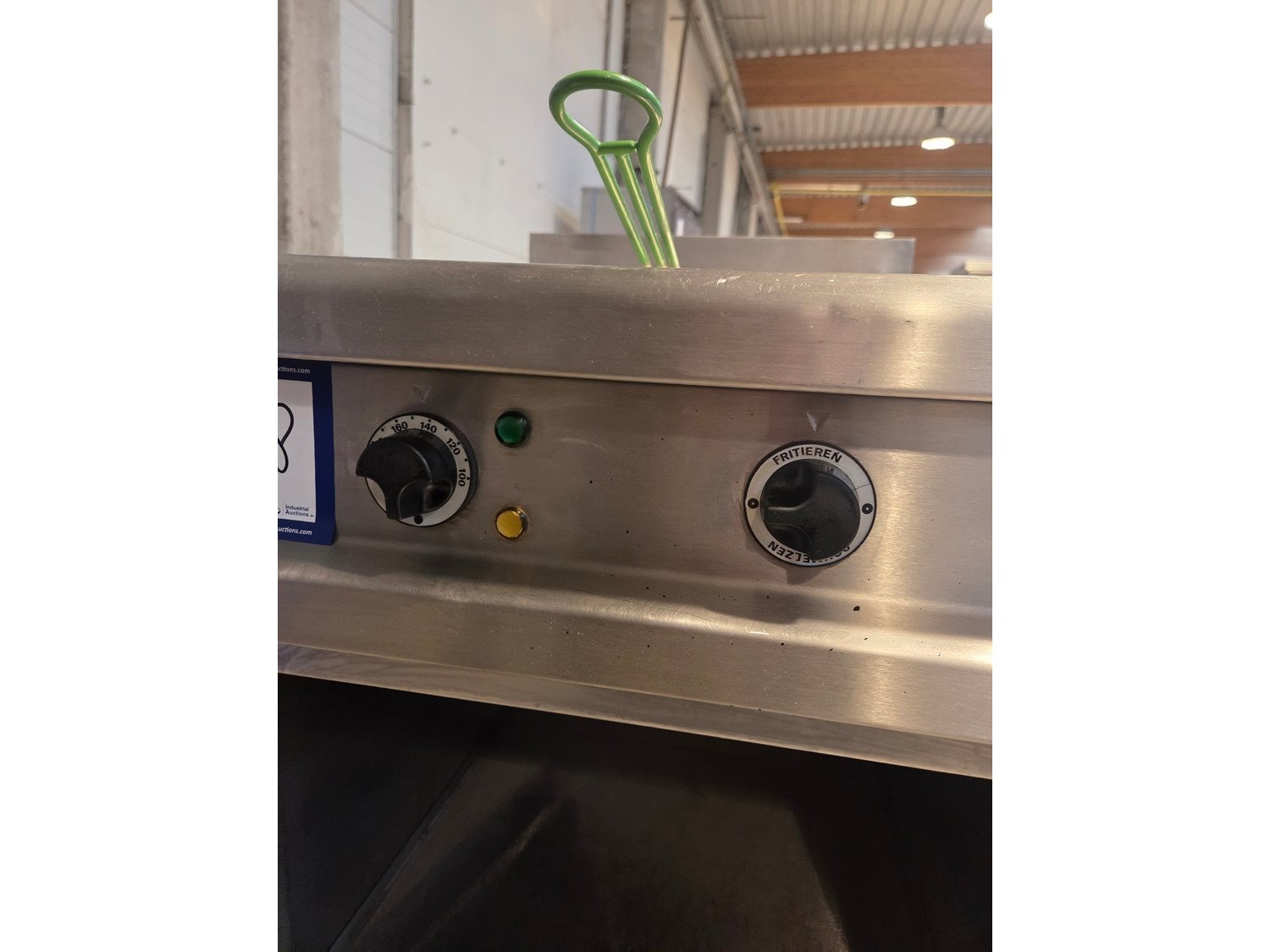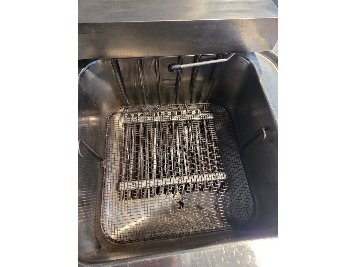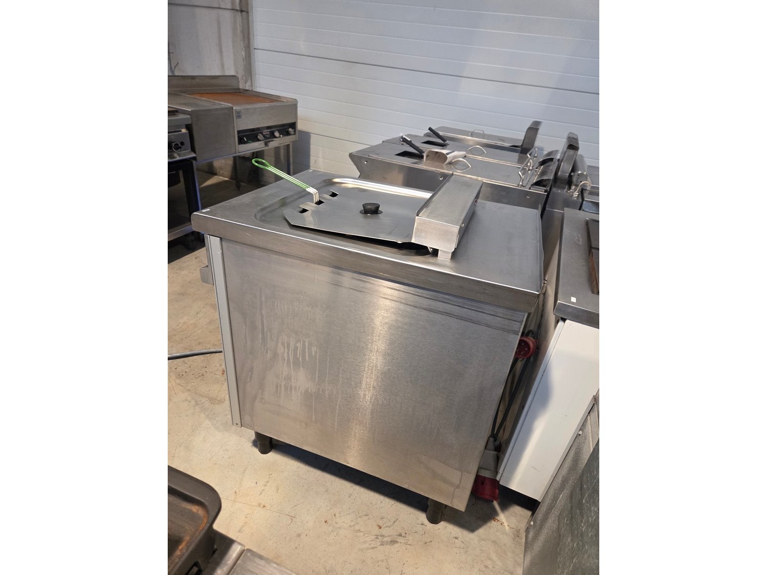 Küppersbusch fryer, model: NEF-144, serial number: 523 114 001, year of construction: V, 220 V, 3 Ph, 50 Hz, 9.0 kW, dimensions: 850 mm x 600 mm x 1000 mm.