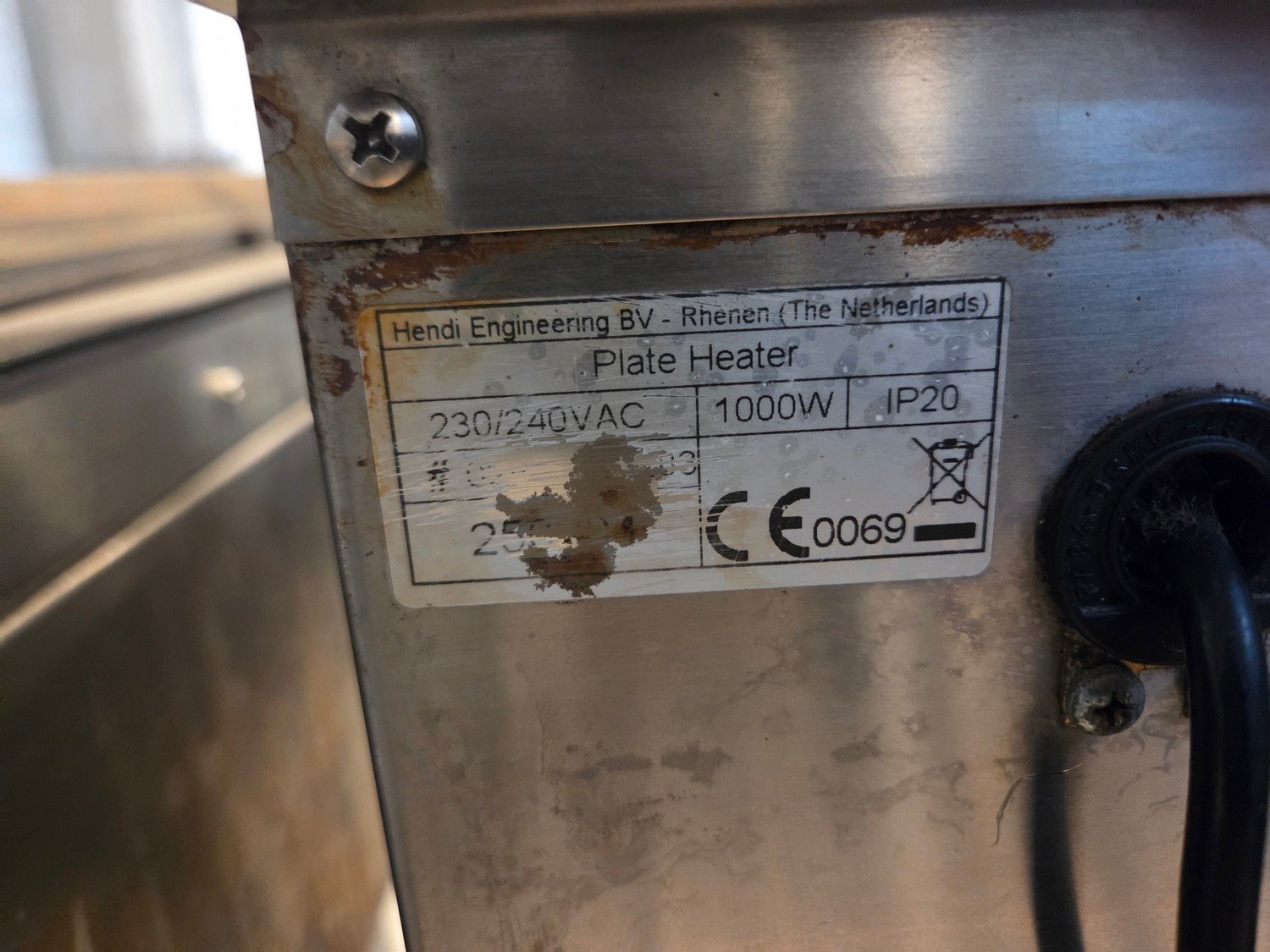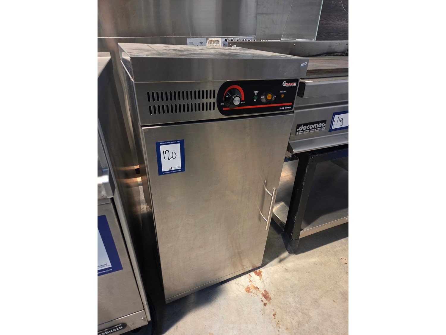 Hendi plate heater, 230/240 Vac, 1000 W, 3 floors, dimensions floors: (3x) 345 mm x 310 mm, total dimensions: 460 mm x 450 mm x 950 mm.
