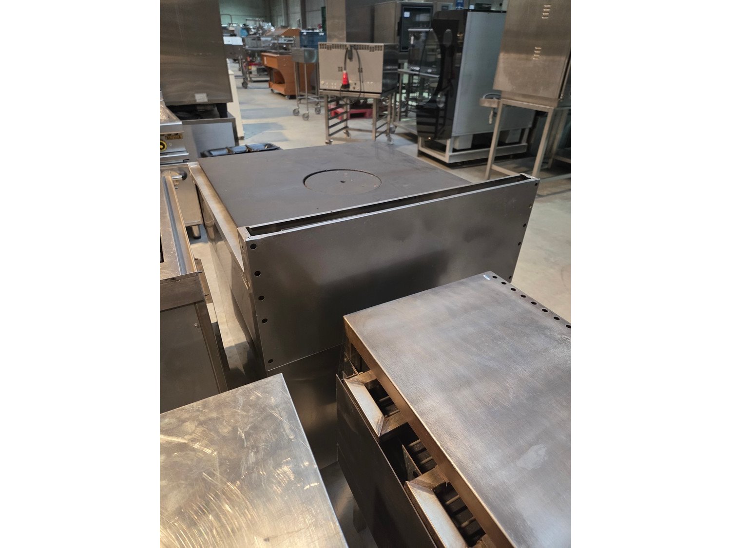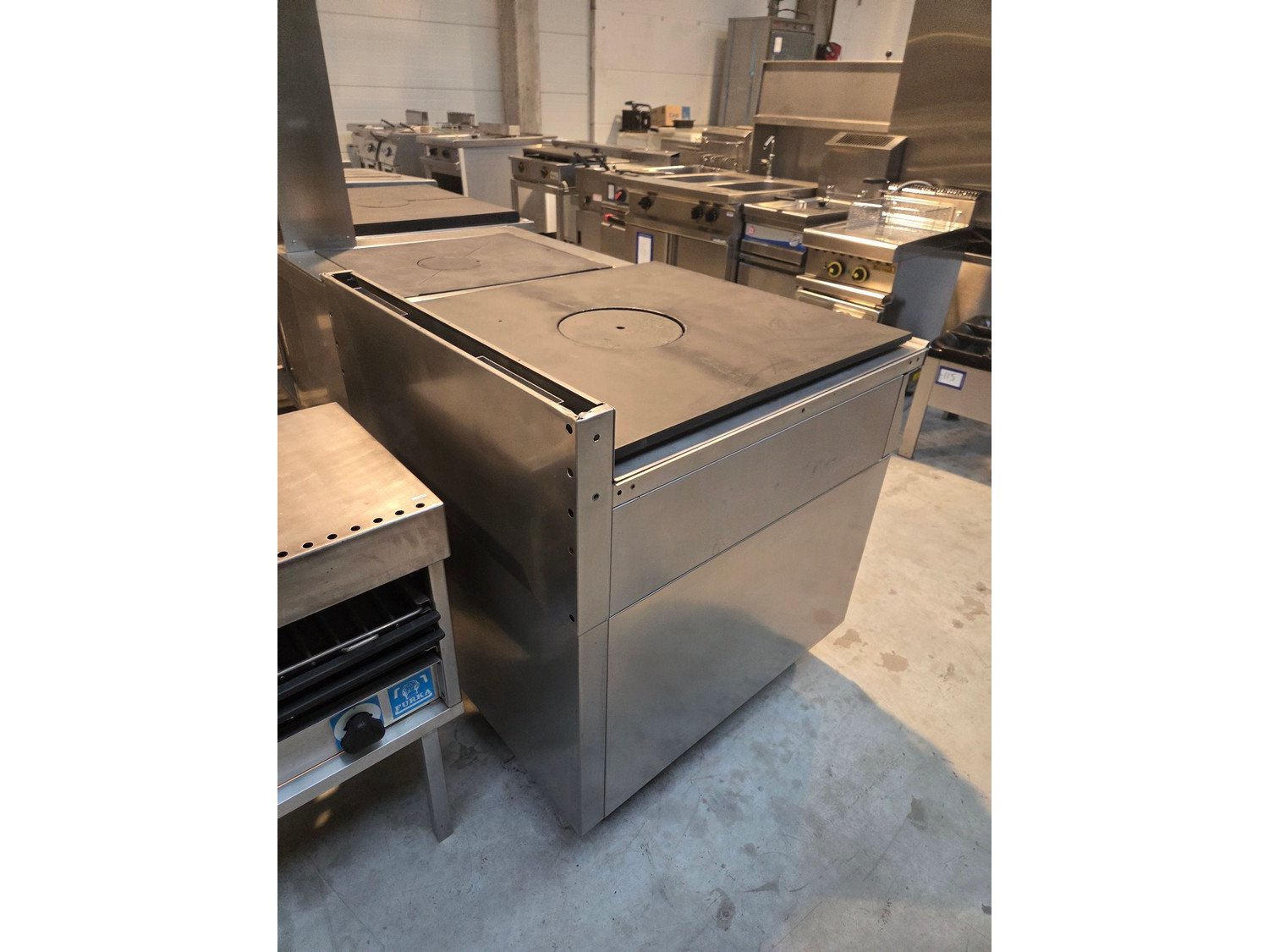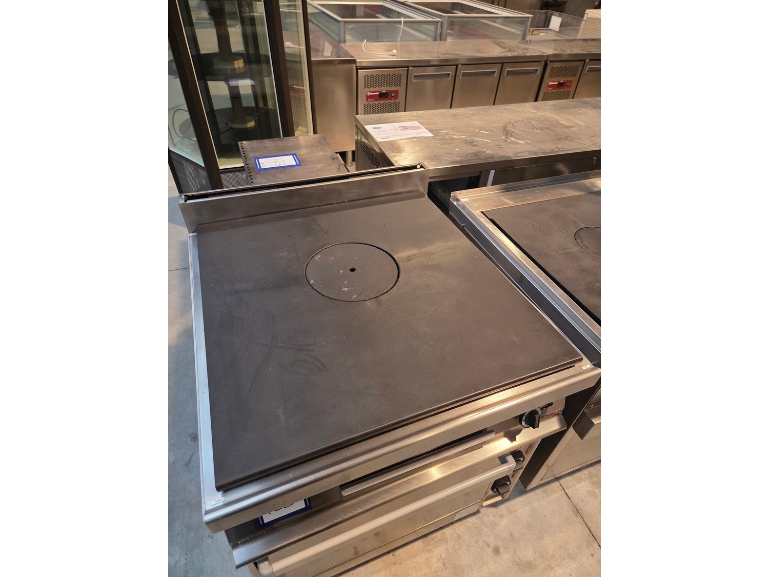 ERRE 2 srl gas stove with oven, model: 90/200 FE, number: OM12057002, 400 V, 3 Ph, 50 Hz, 6.55 kW, dimensions: 800 mm x 900 mm x 970 mm.