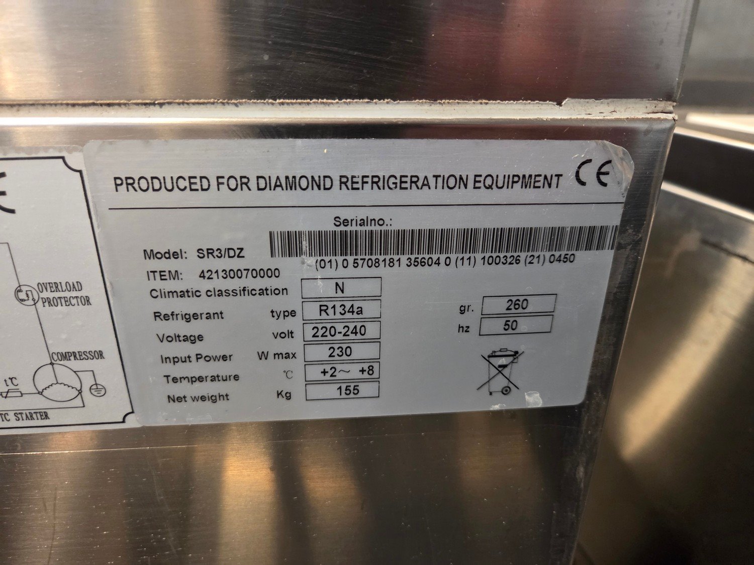 Diamond refrigerated counter with saladette, model: SR3/DZ, 220-240 V, 50 Hz, refrigerant: R134a, dimensions: 1370 mm x 700 mm x 1050 mm.