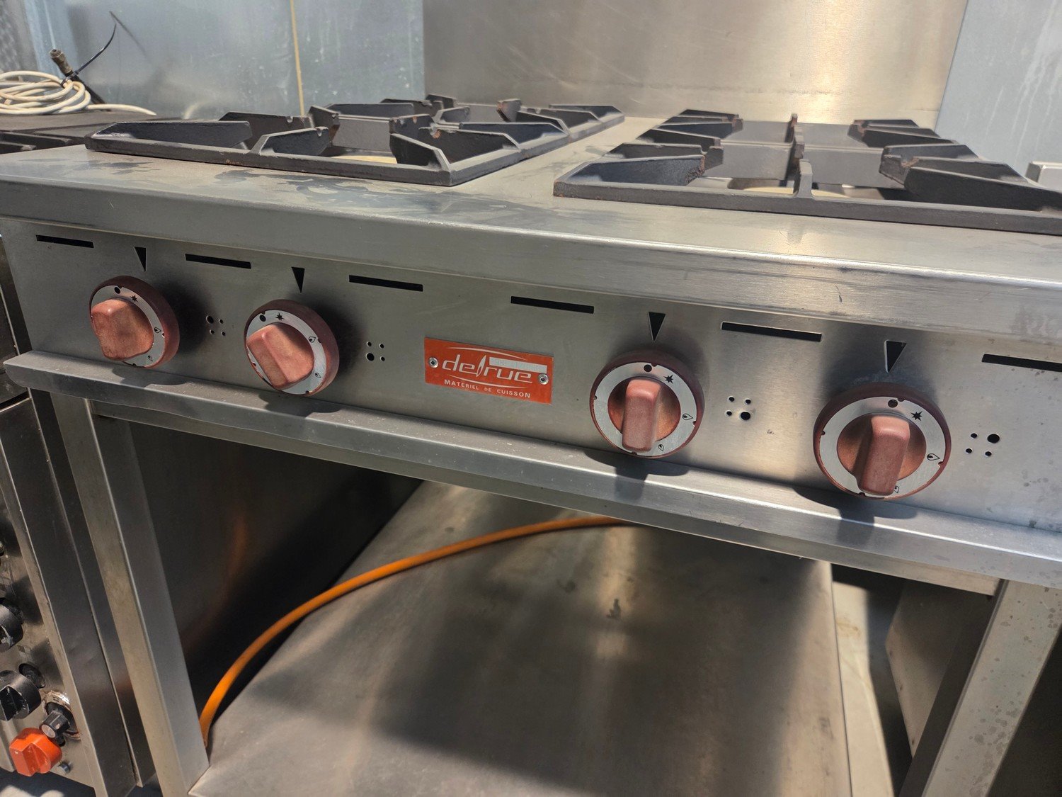 Delrue 4-burner stove, model: 2X94F, number: 98F4120581, year of construction: 2012, dimensions: 920 mm x 800 mm x 1400 mm.
