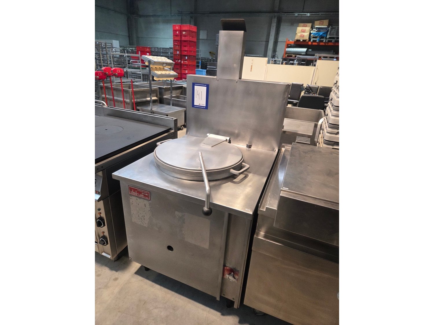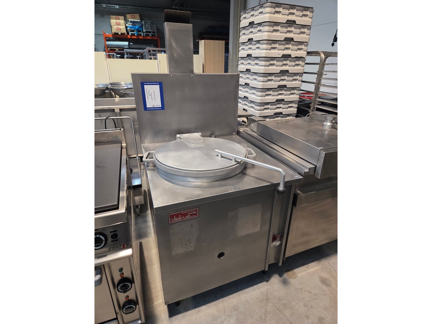 Delrue cooking vessel, serial number: 22941130, inside dimensions: Ø 500 mm x 470 mm, total dimensions: 900 mm x 1100 mm x 1700 mm.
