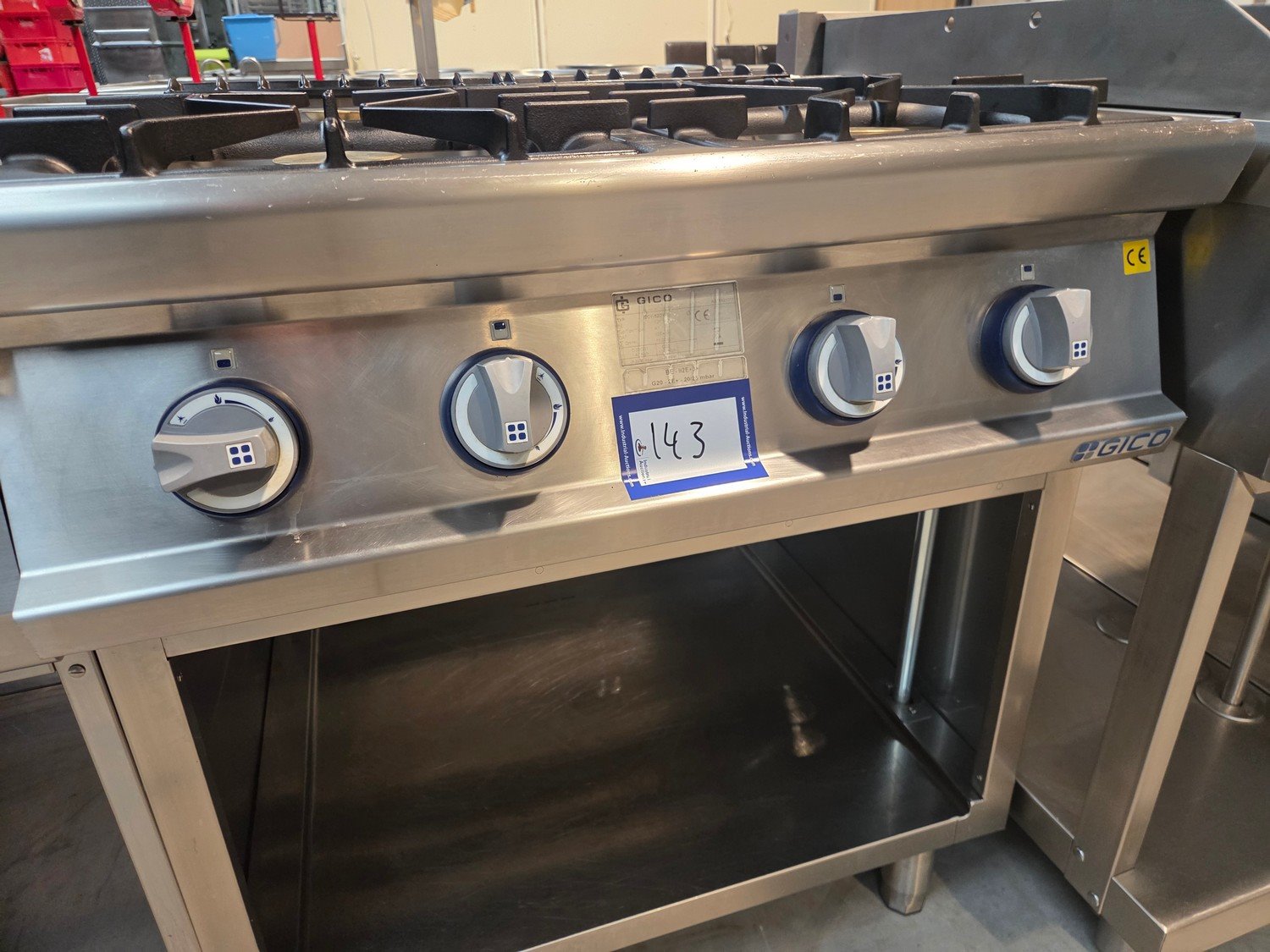 Gico 4-pit stove, type: 2CY-S2DY-S, serial number: AS78921001, year of construction: 12/01/18, 18.00 kW, dimensions: 700 mm x 800 mm x 900 mm.