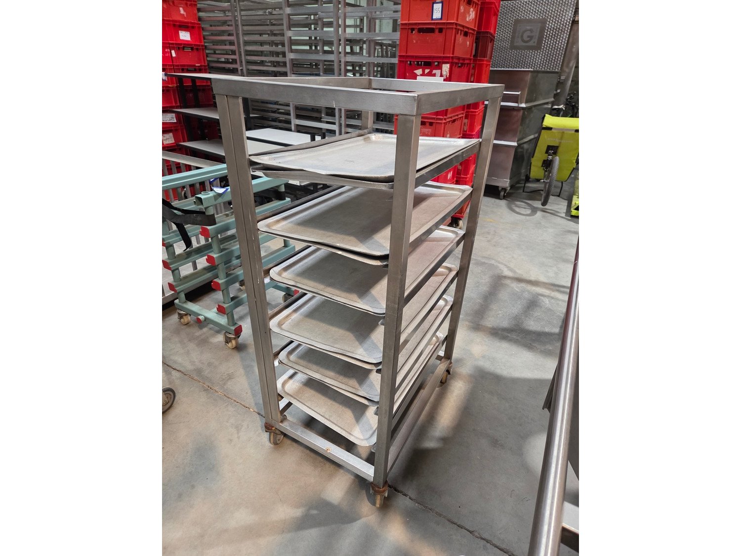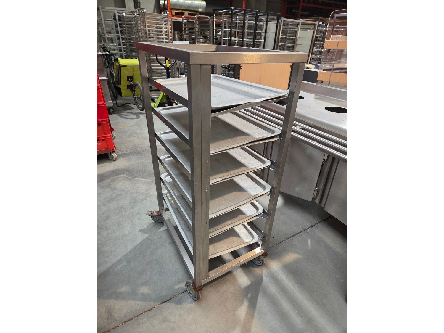 S/s trolley, 6 floors with plates, plate dimensions: 730 mm x 440 mm, total dimensions: 740 mm x 530 mm x 1340 mm.
