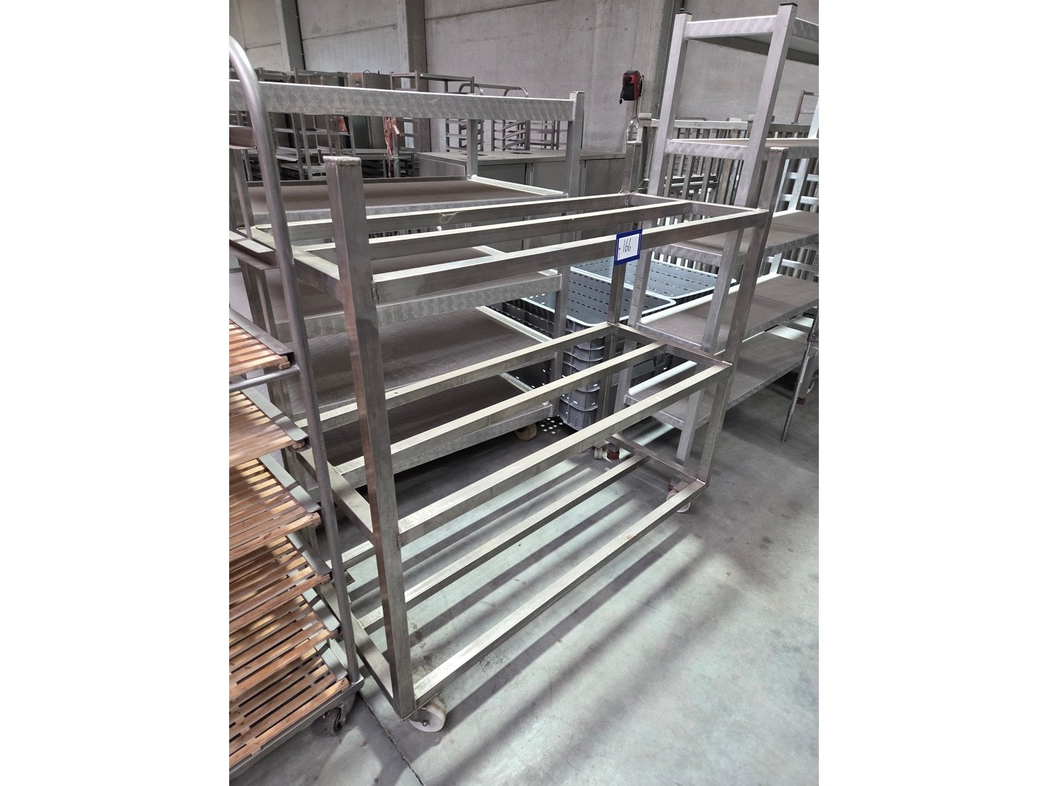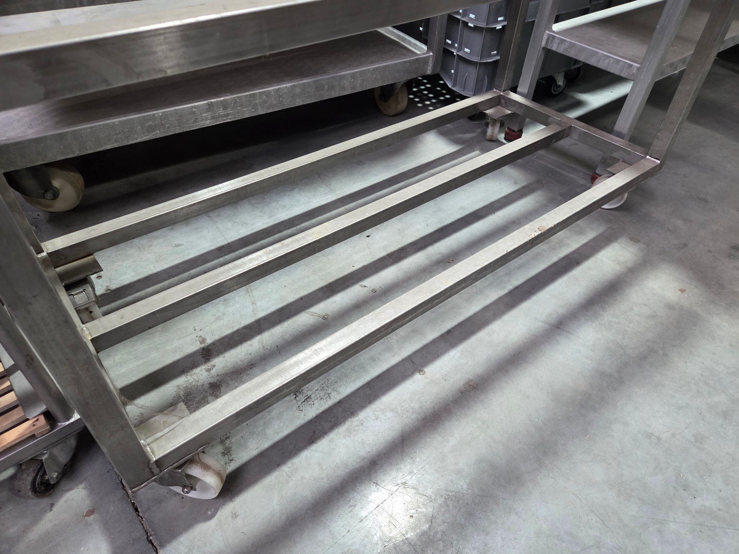 S/s trolley, 3 floors, floor dimensions: 1400 mm x 600 mm, total dimensions: 1480 mm x 600 mm x 1440 mm.