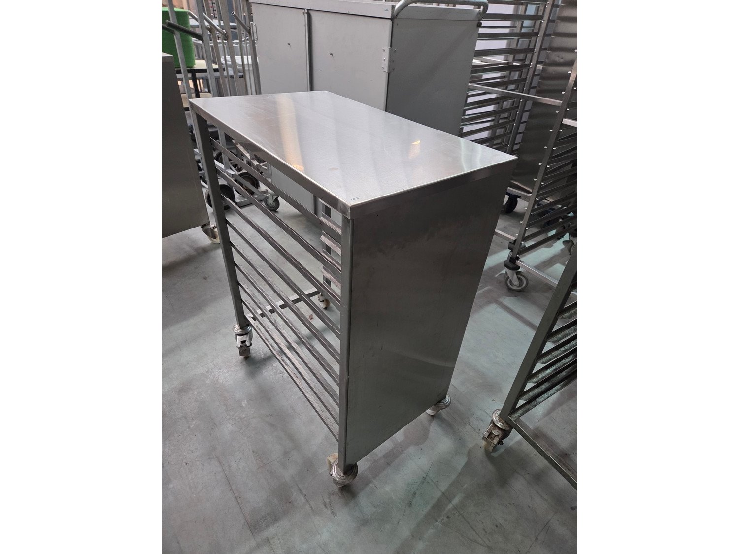 S/s trolley, 9 floors, floor dimensions: 790 mm x 400 mm, total dimensions: 810 mm x 480 mm x 1040 mm.