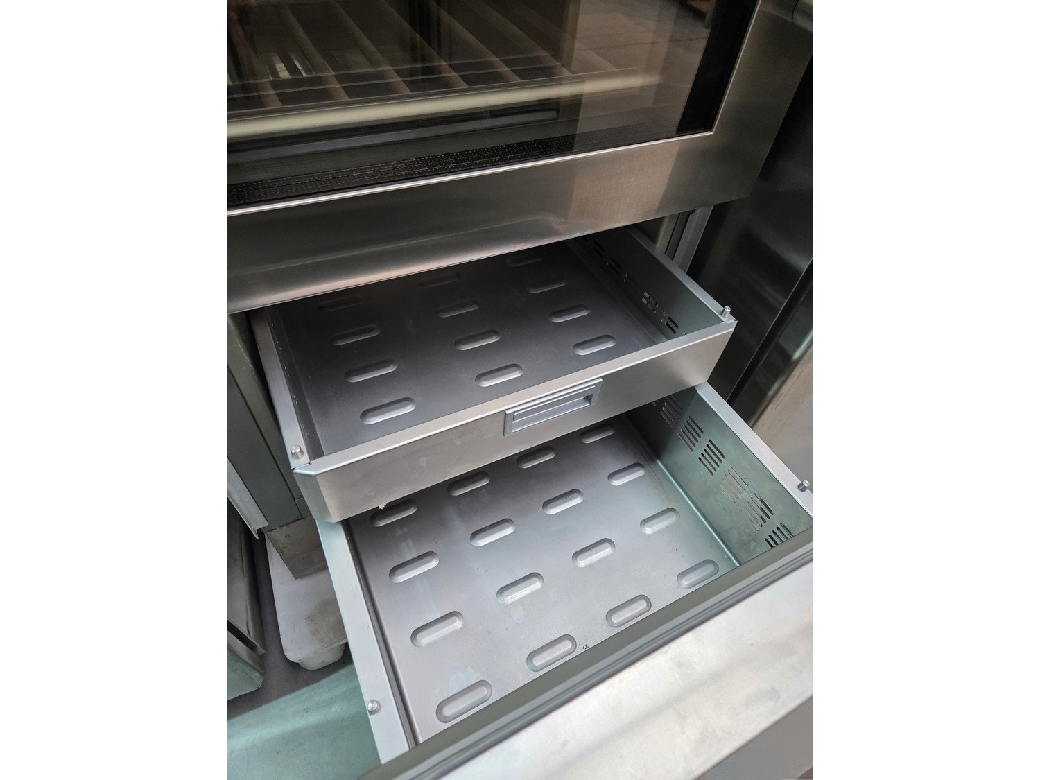 FhiaBa / Boretti wine climate cabinet, model: X7491TWT3, serial number: F20091128000003, 220/240 V, 50 Hz, 0.7 A, 105 W, refrigerant: R600a, 9 floors, floor dimensions: (9x) 540 mm x 545 mm x 80 mm, total dimensions: 760 mm x 750 mm x 2100 mm.