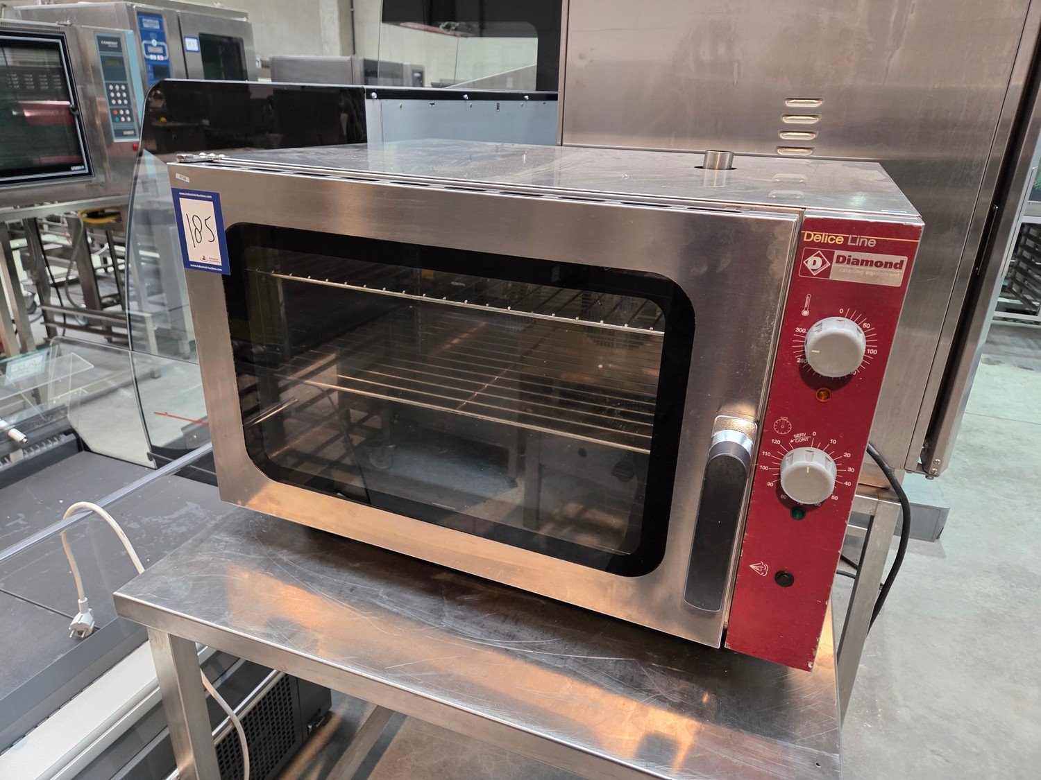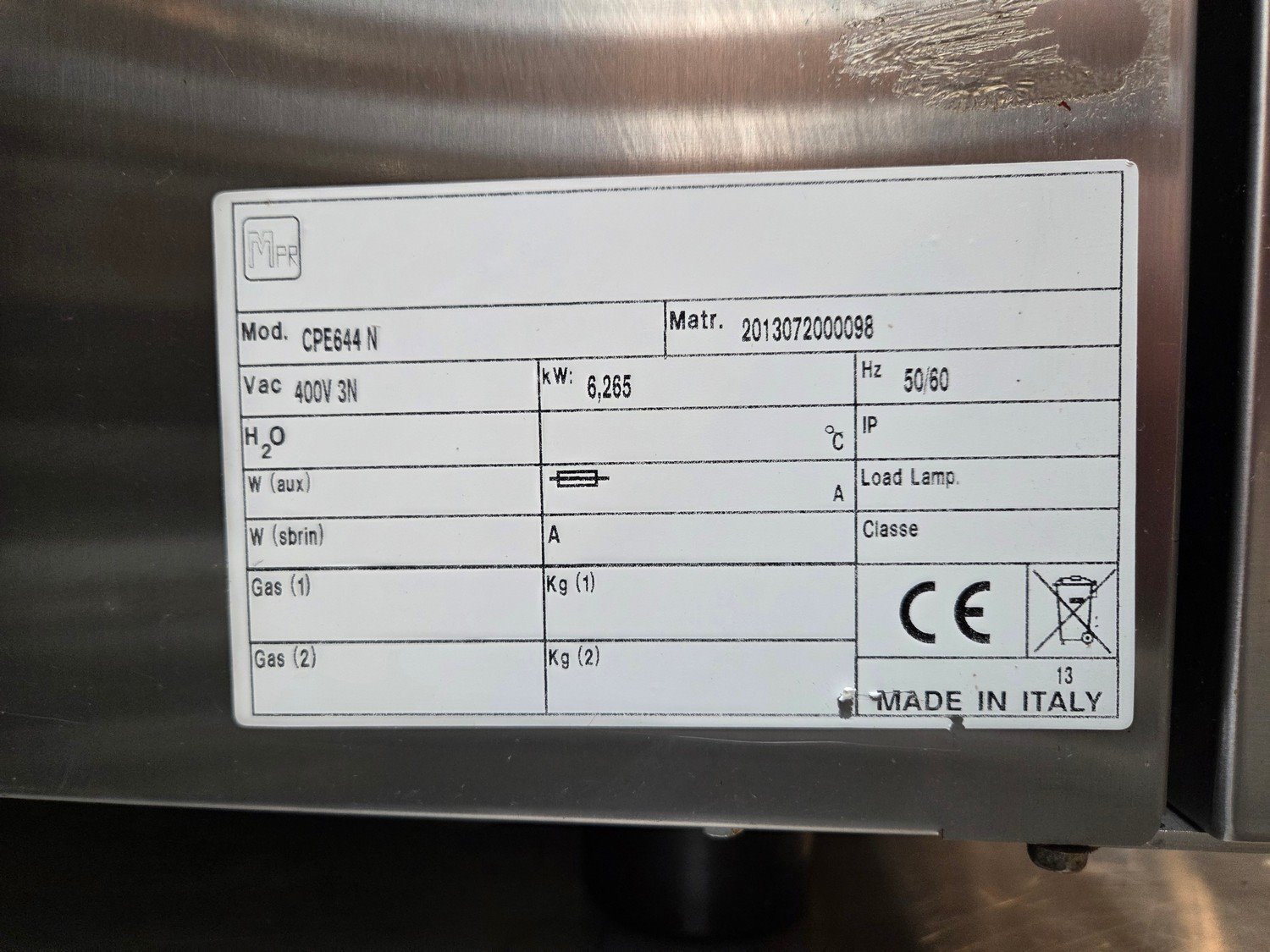 Diamond oven, model: CPE644 N, serial number: 2013072000098, 400 V, 3 Ph, 50/60 Hz, 6.265 kW, 4 floors, floor dimensions: 400 mm x 600 mm, total dimensions: 820 mm x 670 mm x 560 mm.