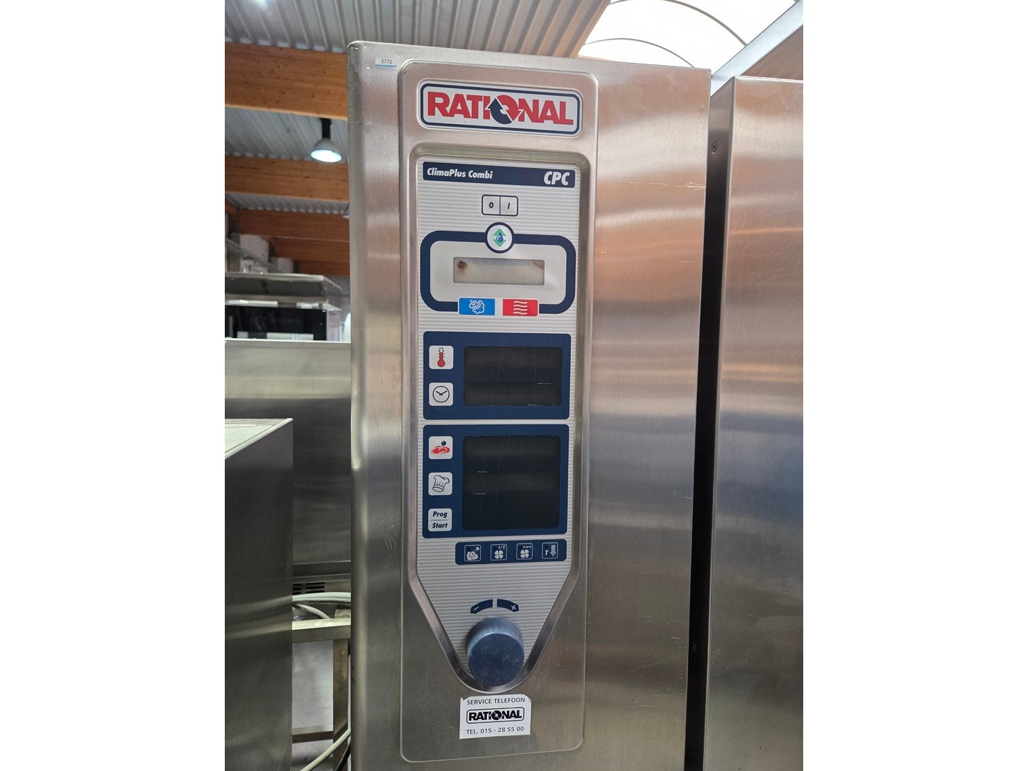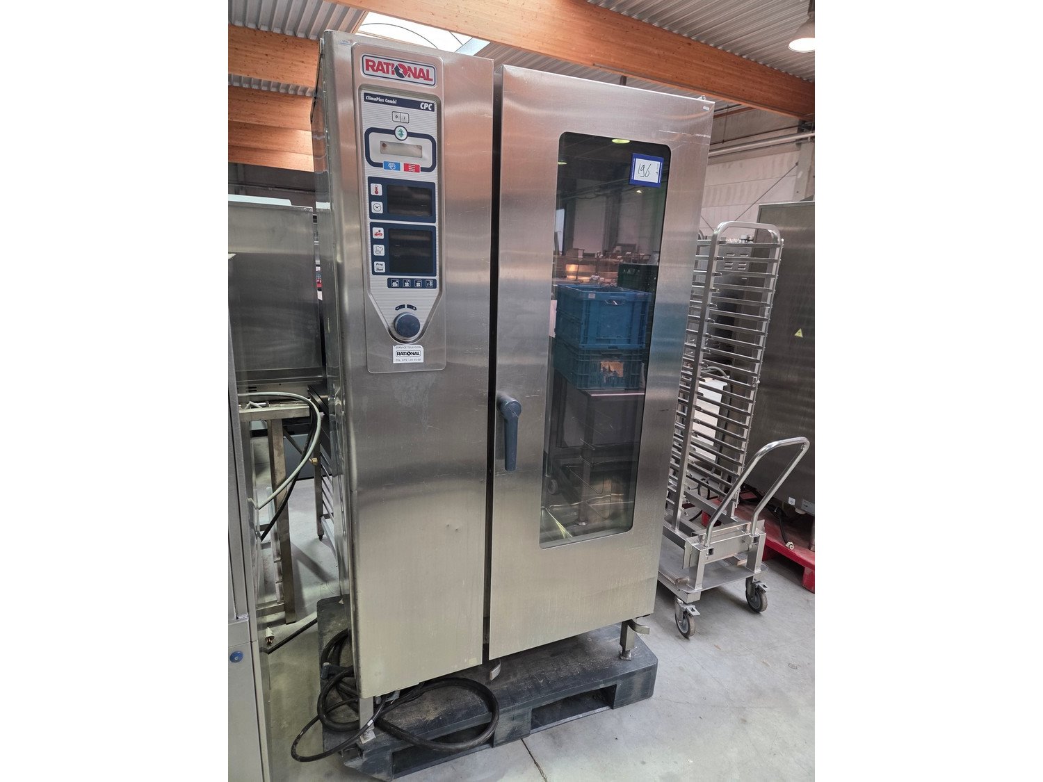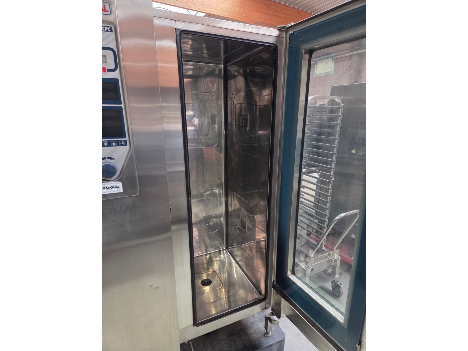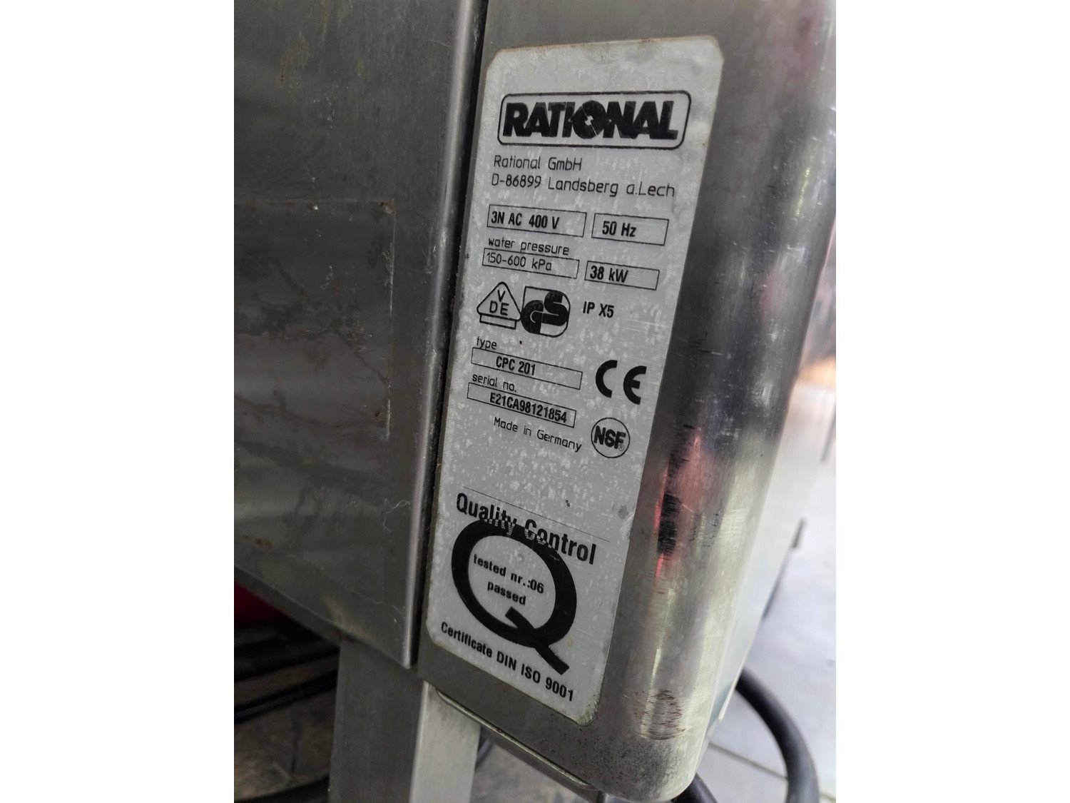 Rational combi steamer, type: CPC 201, serial number: E21CA98121854, 400 V, 3 Ph, 50 Hz, 38 kW, electric heated, with s/s trolley, 20 floors, dimensions each floor: 530 mm x 325 mm, total dimensions: 900 mm x 500 mm x 1800 mm.