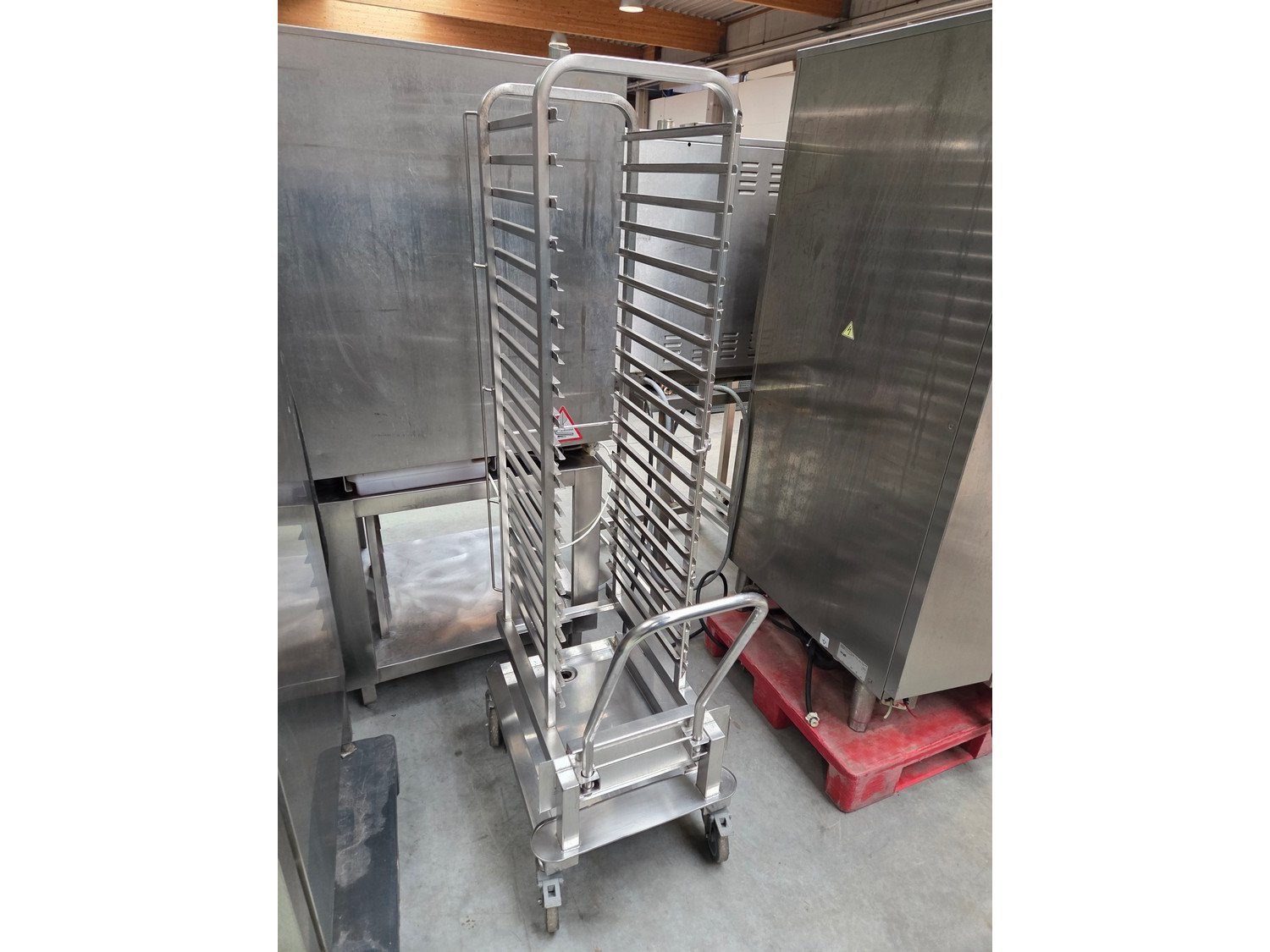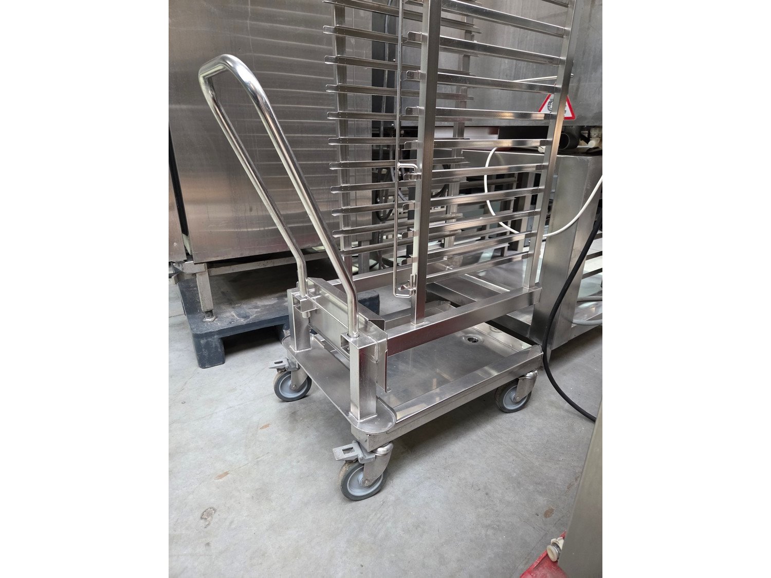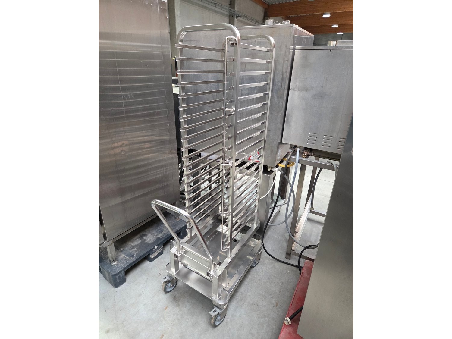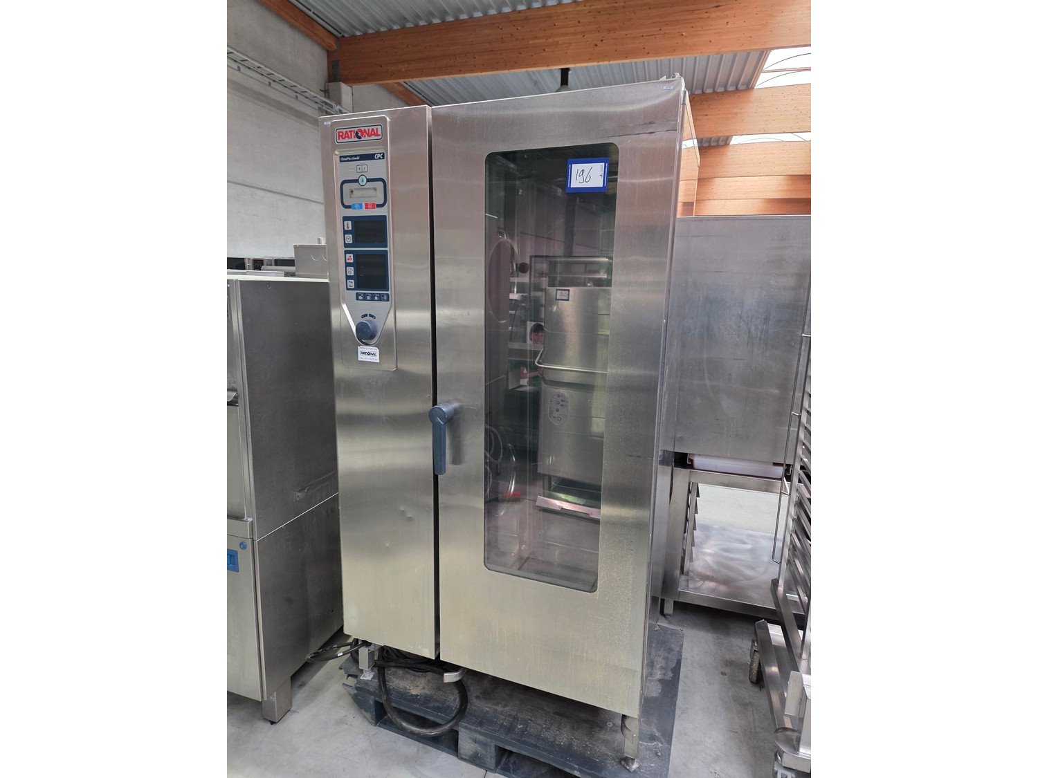 Rational combi steamer, type: CPC 201, serial number: E21CA98121854, 400 V, 3 Ph, 50 Hz, 38 kW, electric heated, with s/s trolley, 20 floors, dimensions each floor: 530 mm x 325 mm, total dimensions: 900 mm x 500 mm x 1800 mm.