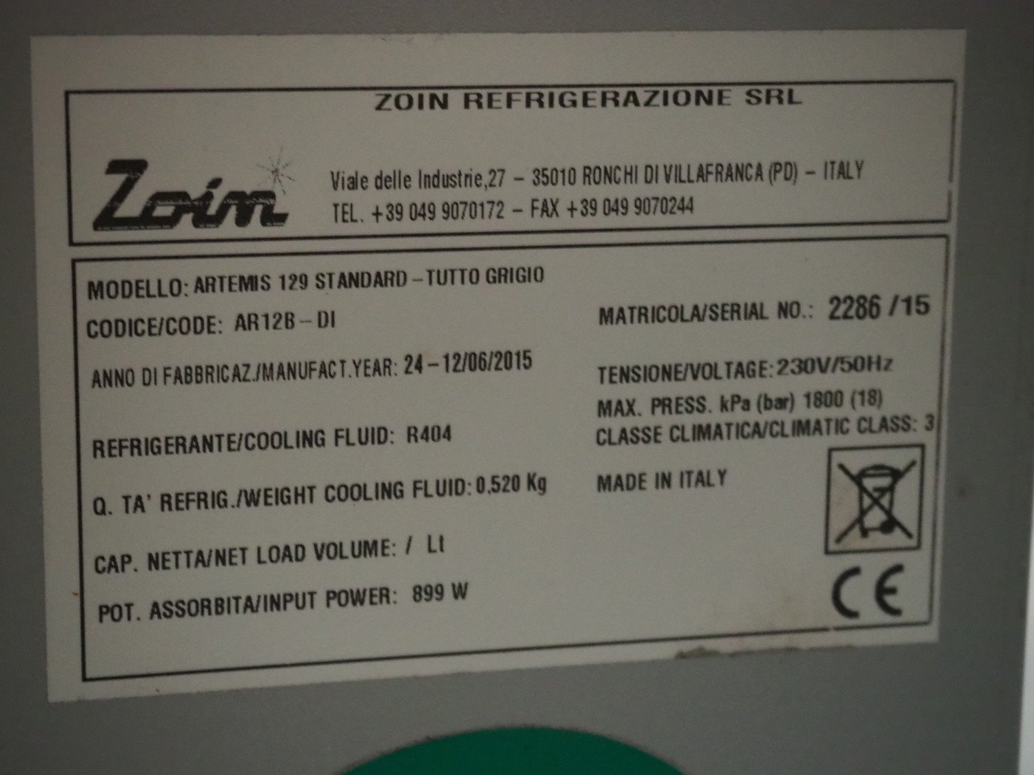 Zoin Refrigerazione srl refrigerated showcase, model: Artemis 129 standard - Tutto Grigio, serial number: 2286/15, year of construction: 12/06/2015, 230 V, 50 Hz, refrigerant: R404, 0.520 kg, dimensions: 1320 mm x 950 mm x 950 mm.