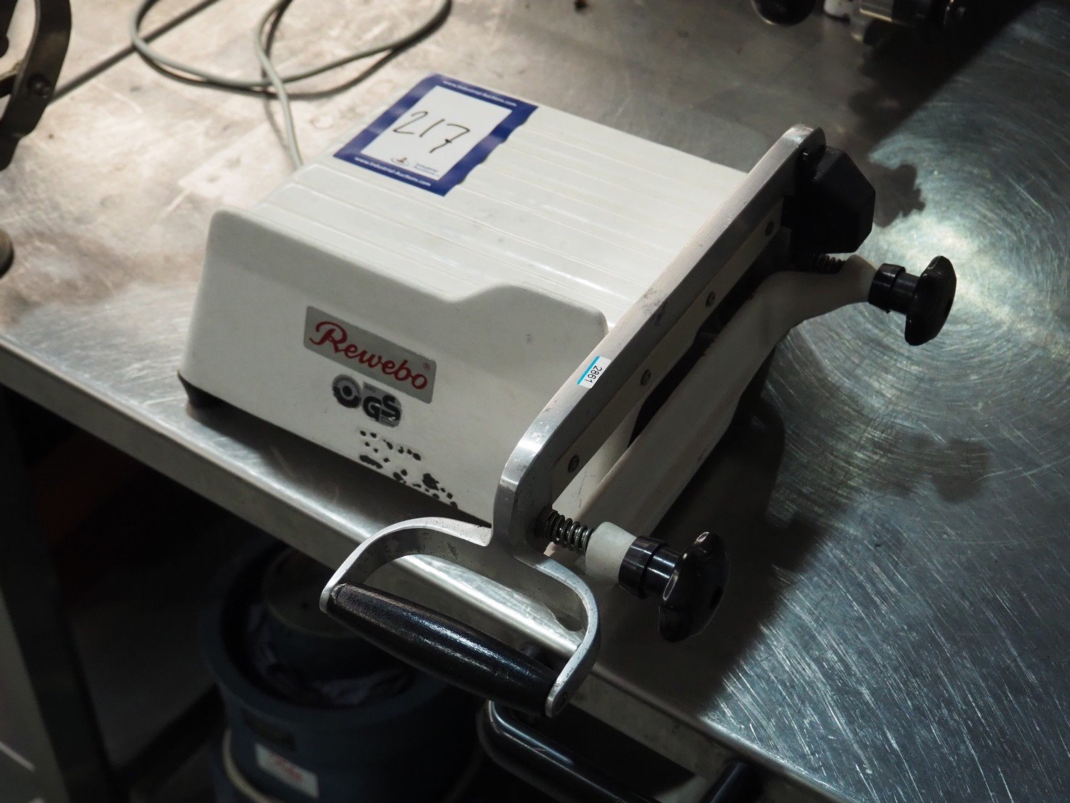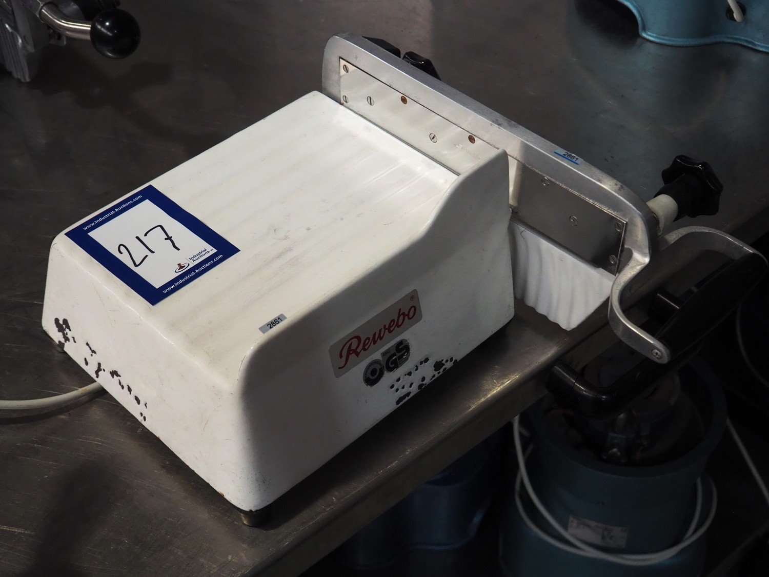 Rewebo cheese slicer, model: 8H, number: AB 915500036-1, 220-380 V, working width: 200 mm, total dimensions: 360 mm x 390 mm x 160 mm.