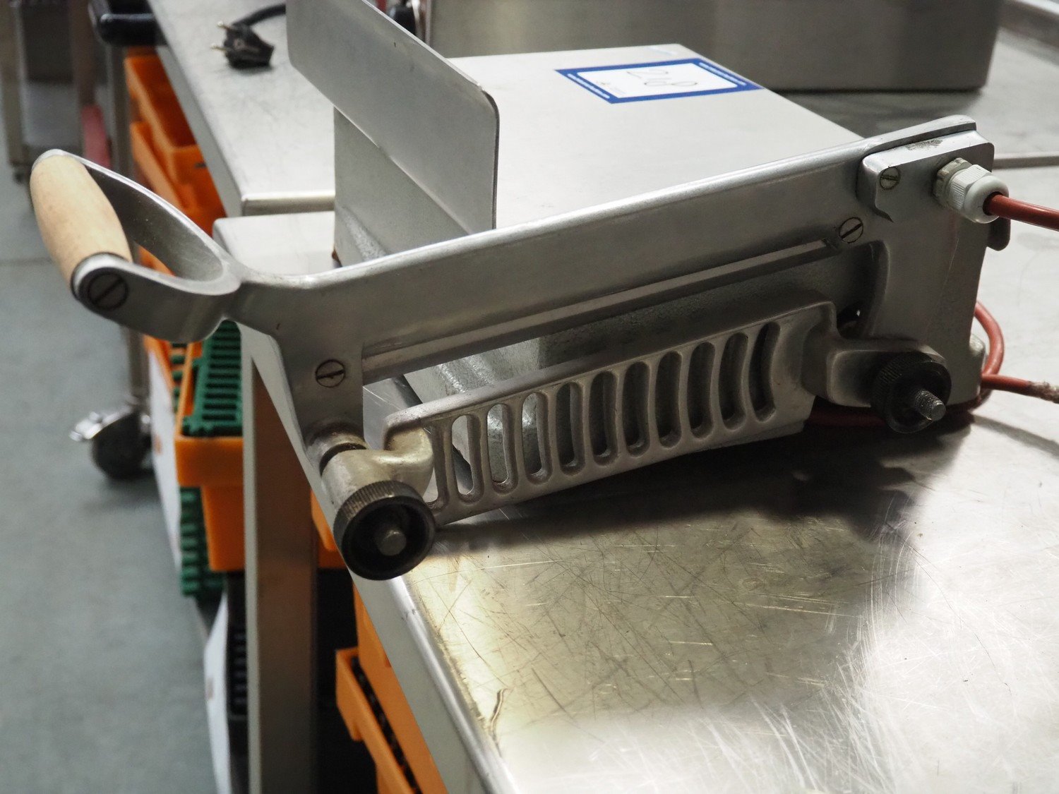 Cheese slicer, working width: 240 mm, total dimensions: 400 mm x 430 mm x 200 mm.