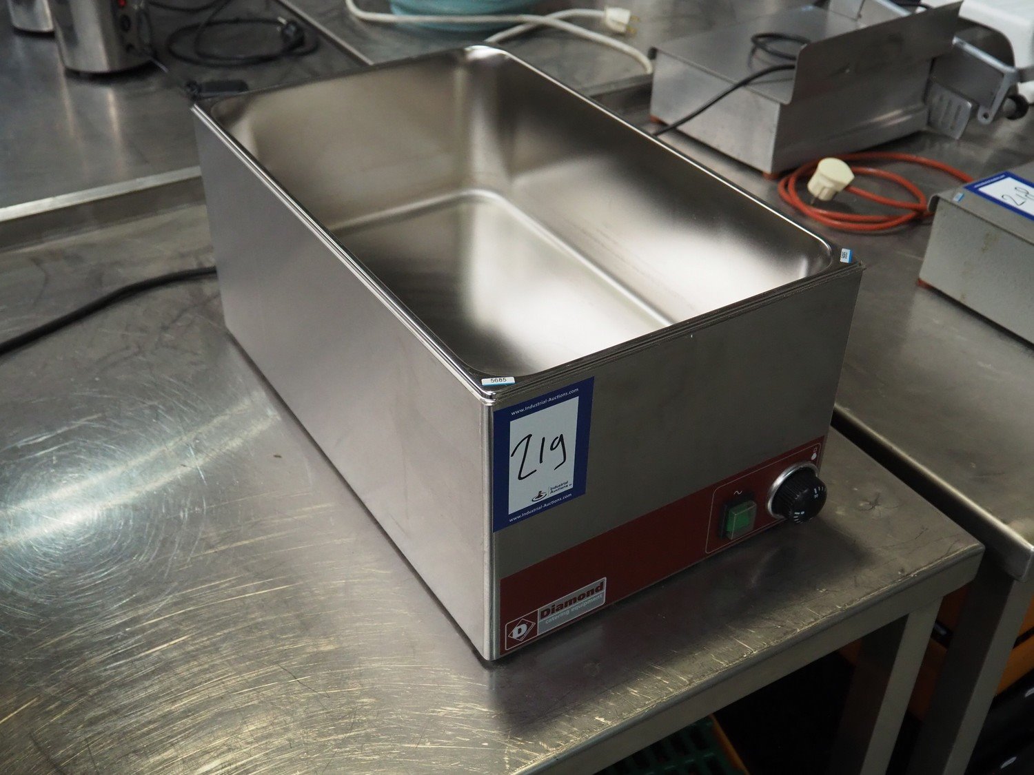 Diamond au bain-marie, model: BM1/X, 220-240 V, 50 Hz, 1500 W, inside dimensions: 300 mm x 500 mm x 160 mm, total dimensions: 560 mm x 330 mm x 250 mm.