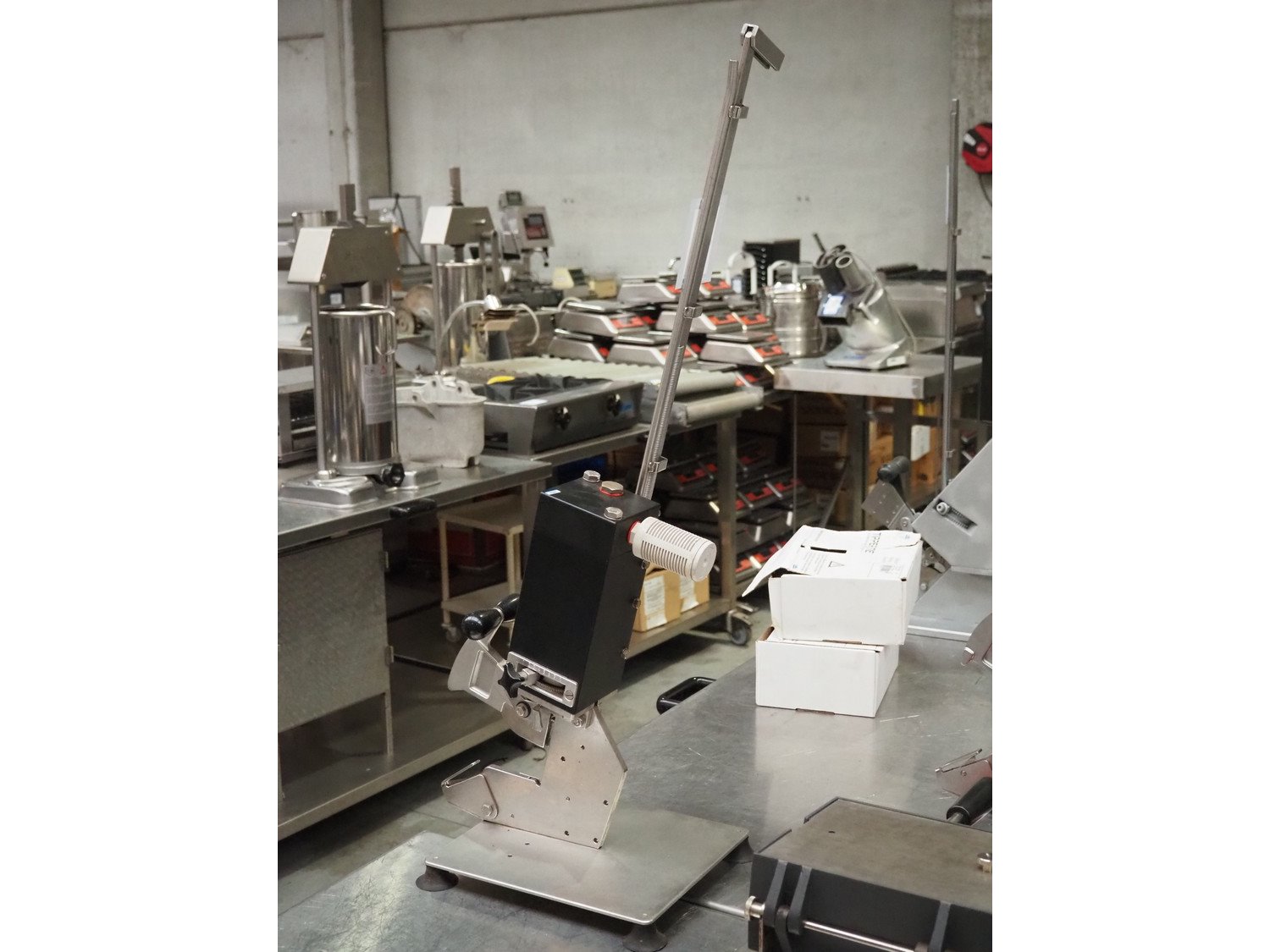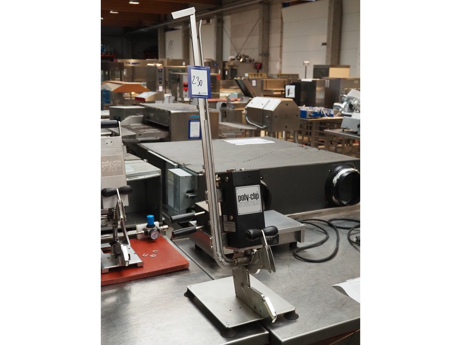 Poly-clip System GmbH & Co. KG table model clipper, type: SCD - 600, number: 6203/10, pressure: 5-7 bar, dimensions: 370 mm x 260 mm x 950 mm.