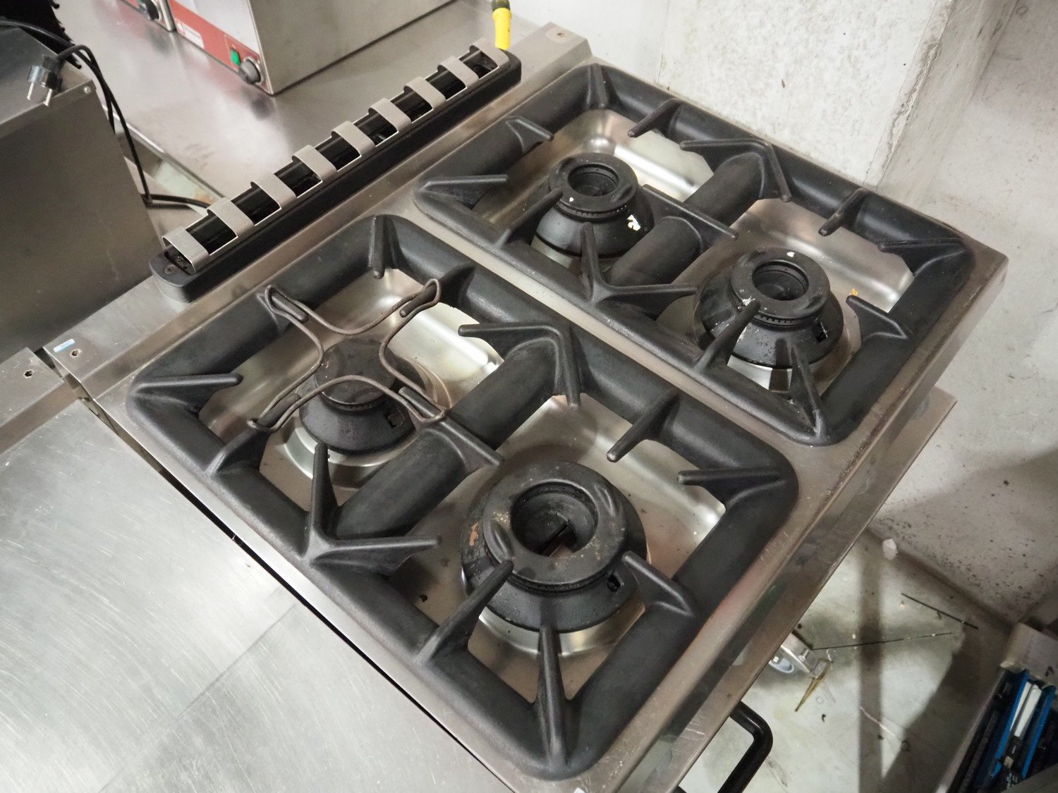 4-burner stove, dimensions: 800 mm x 700 mm x 320 mm.